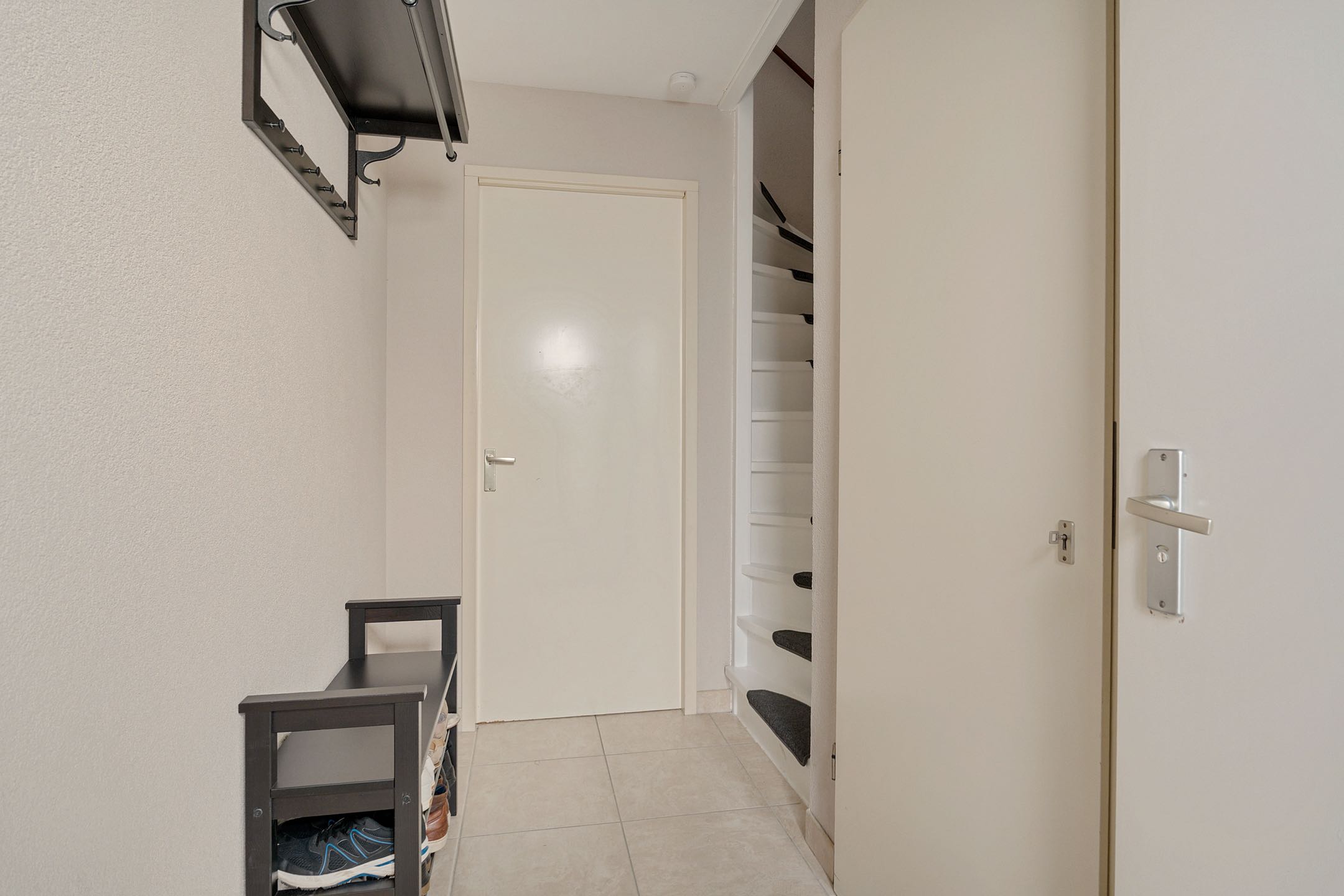 Via de bestrate voortuin bereik je de entree van de woning. Je komt binnen in een ruime hal met plavuizen vloer, trapopgang naar de verdieping en een vernieuwde meterkast. In de hal bevindt zich tevens het toilet met een vaste kast, waarin de cv-combiketel (2021) en de mechanische ventilatie zijn opgesteld.