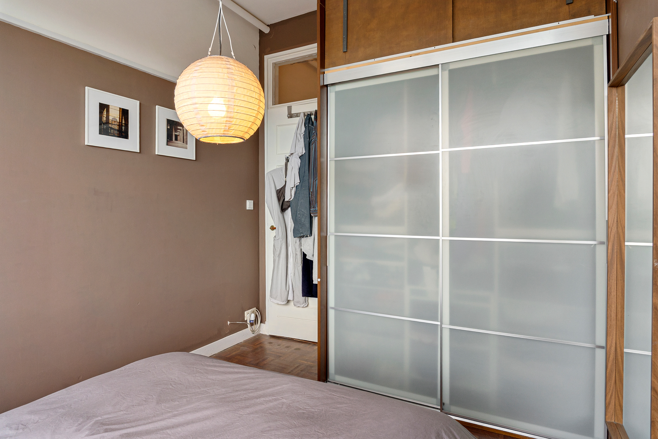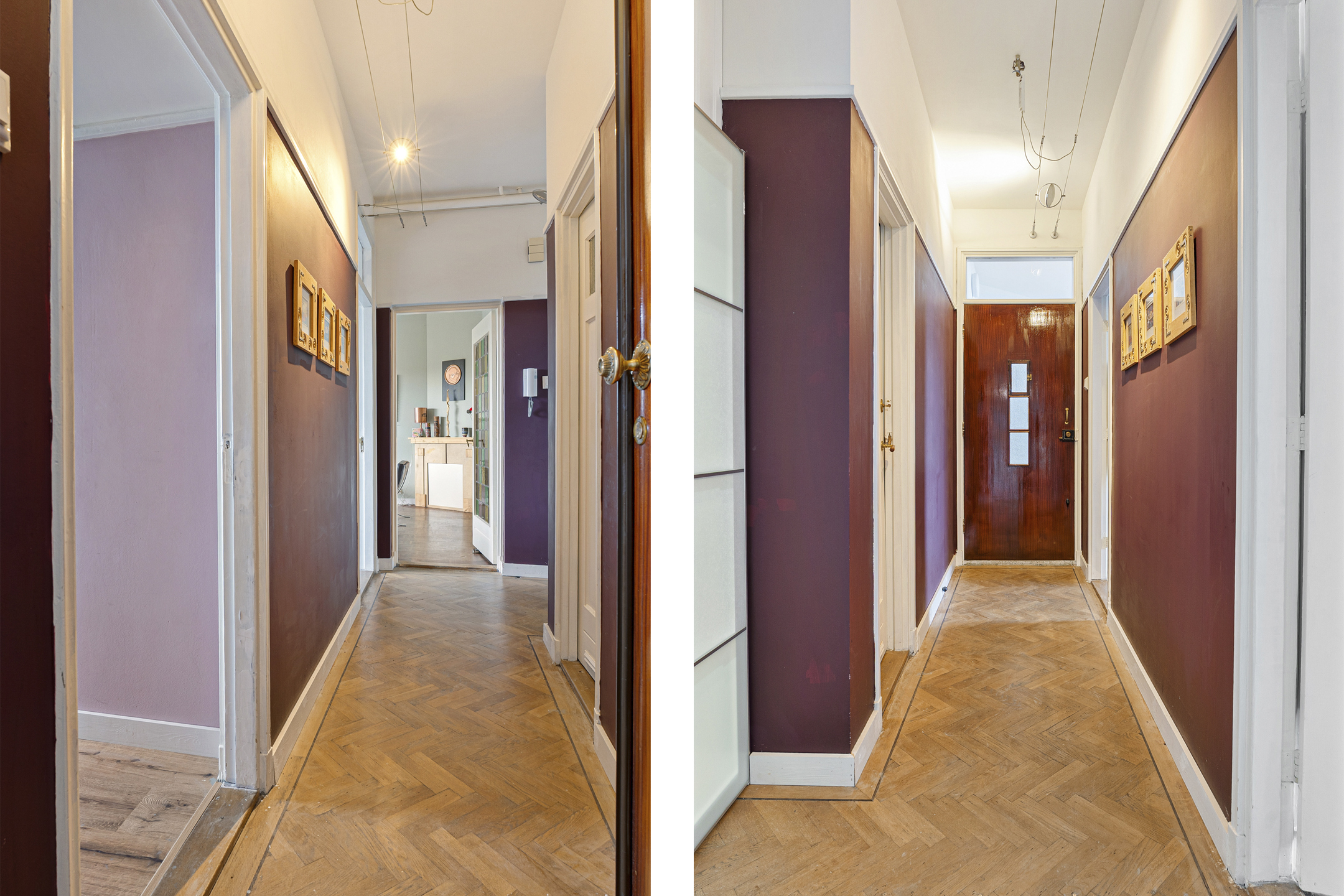 Bij binnenkomst in de hal valt direct de praktische indeling op. Aan de linkerkant bevinden zich twee slaapkamers van goed formaat. Dankzij de ligging op het noorden blijven deze kamers tevens heerlijk koel. Ook aan de voorzijde van het appartement ligt de ruime en sfeervolle woonkamer, voorzien van een karakteristieke erker en een nette afwerking.