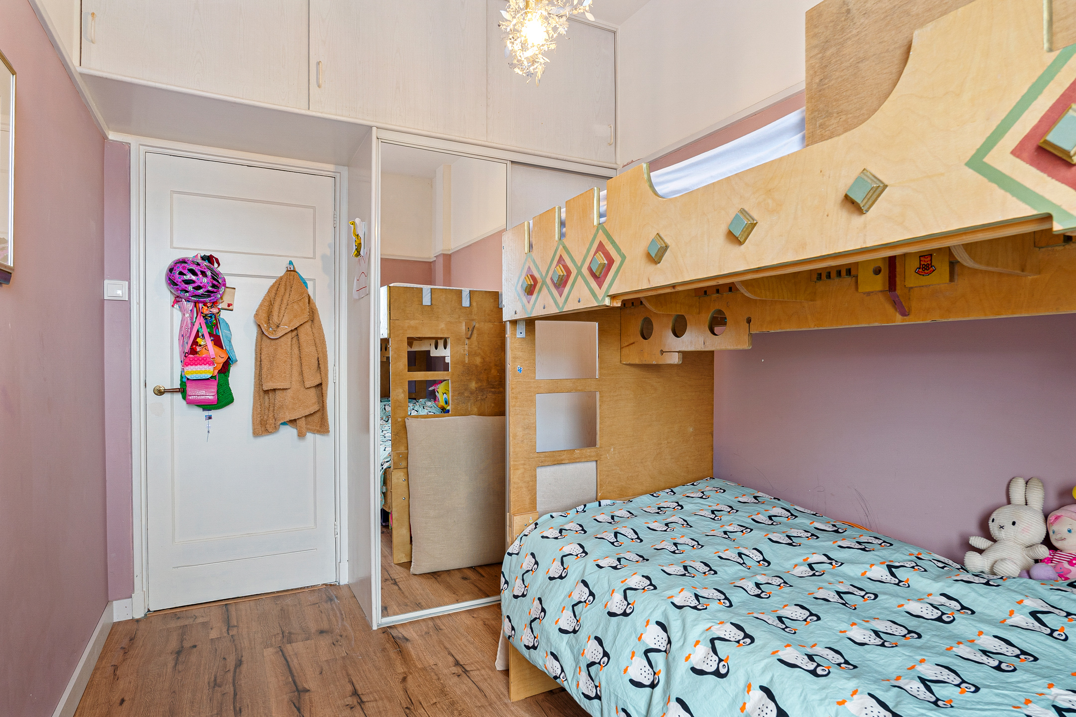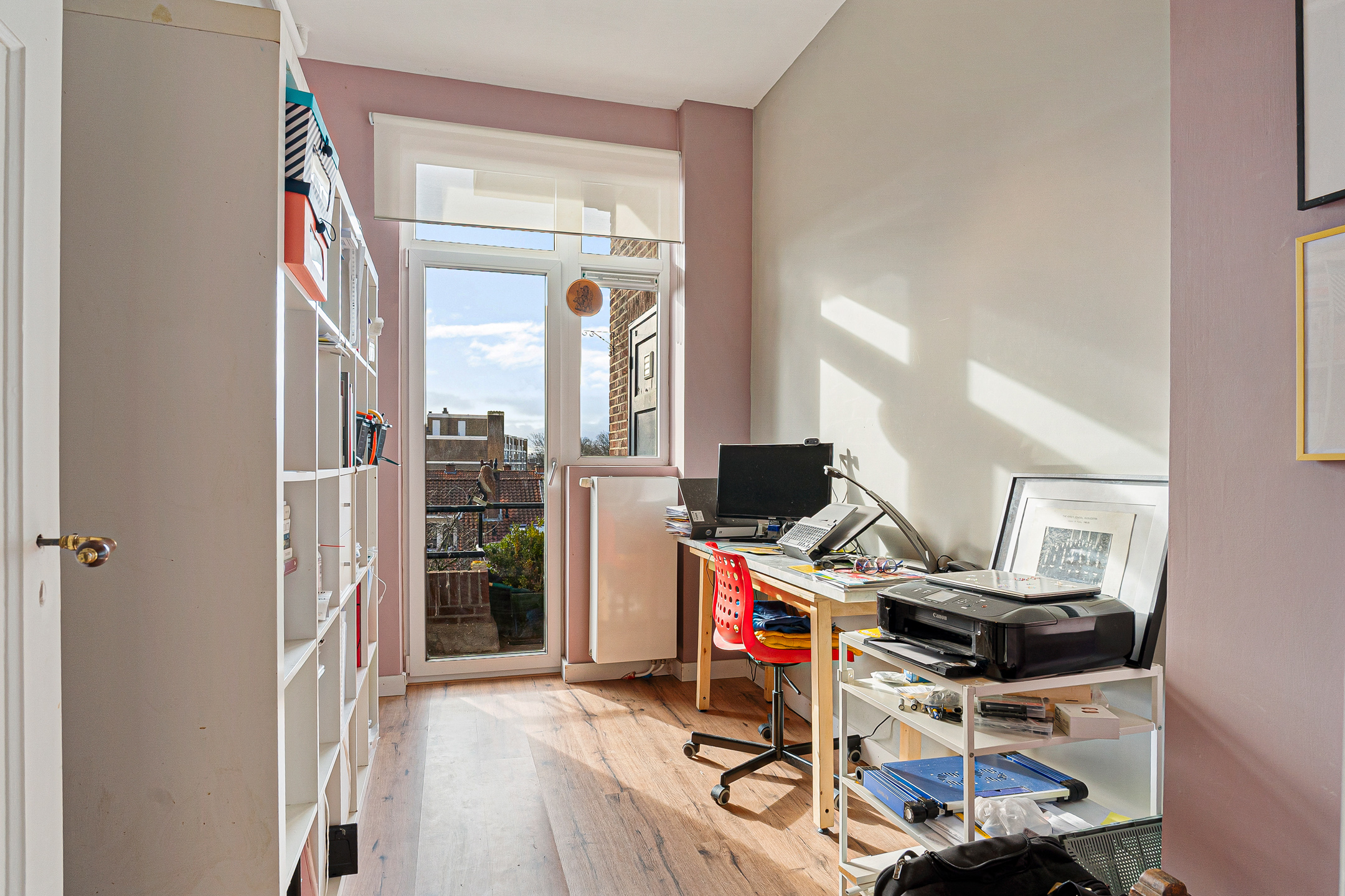 Aan de achterzijde ligt nog een extra kamer, perfect als derde slaapkamer, werkruimte of hobbykamer. Verder beschikt de woning over een handige opbergconstructie en een moderne badkamer met vloerverwarming, gerenoveerd in 2020.