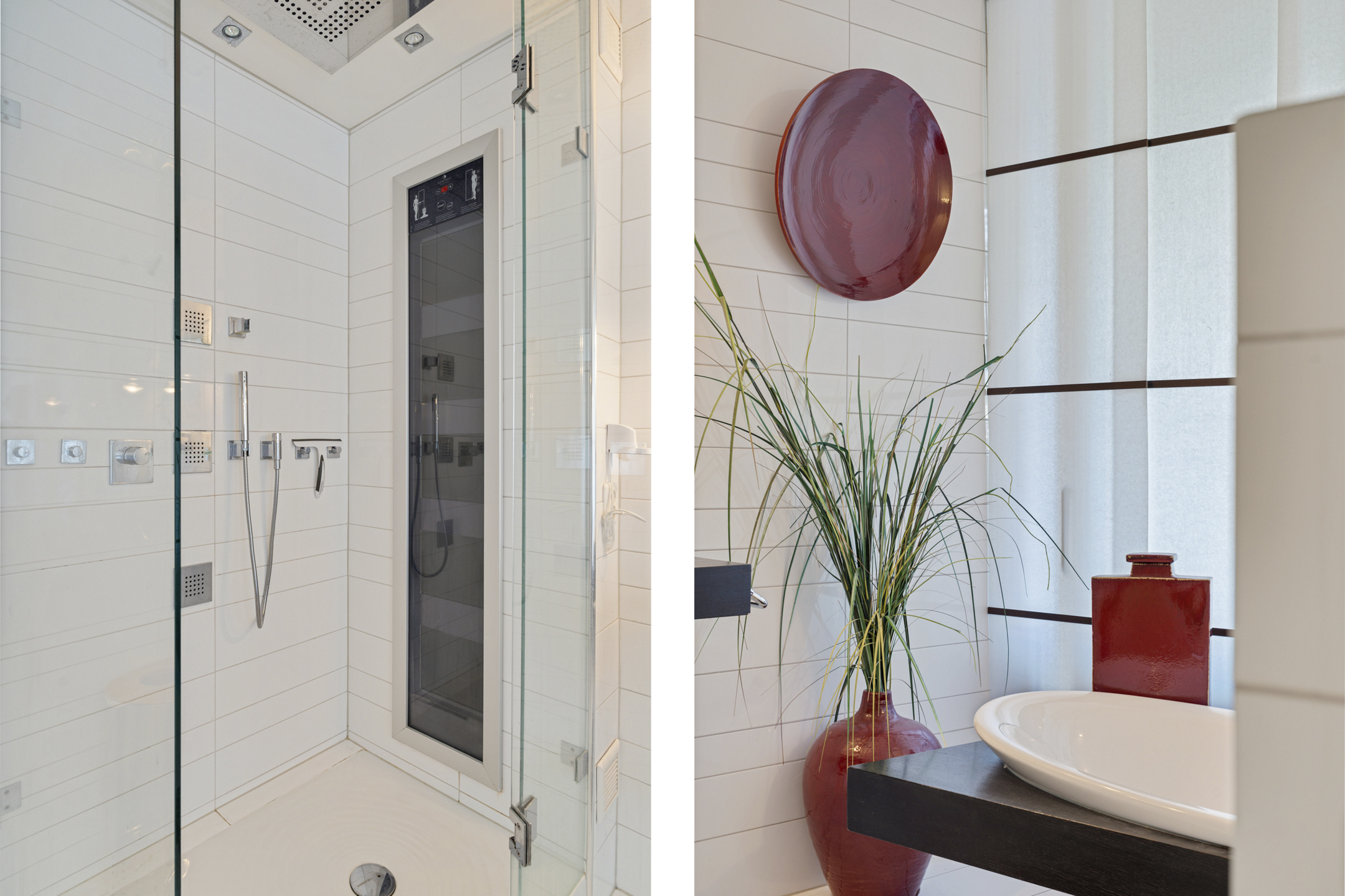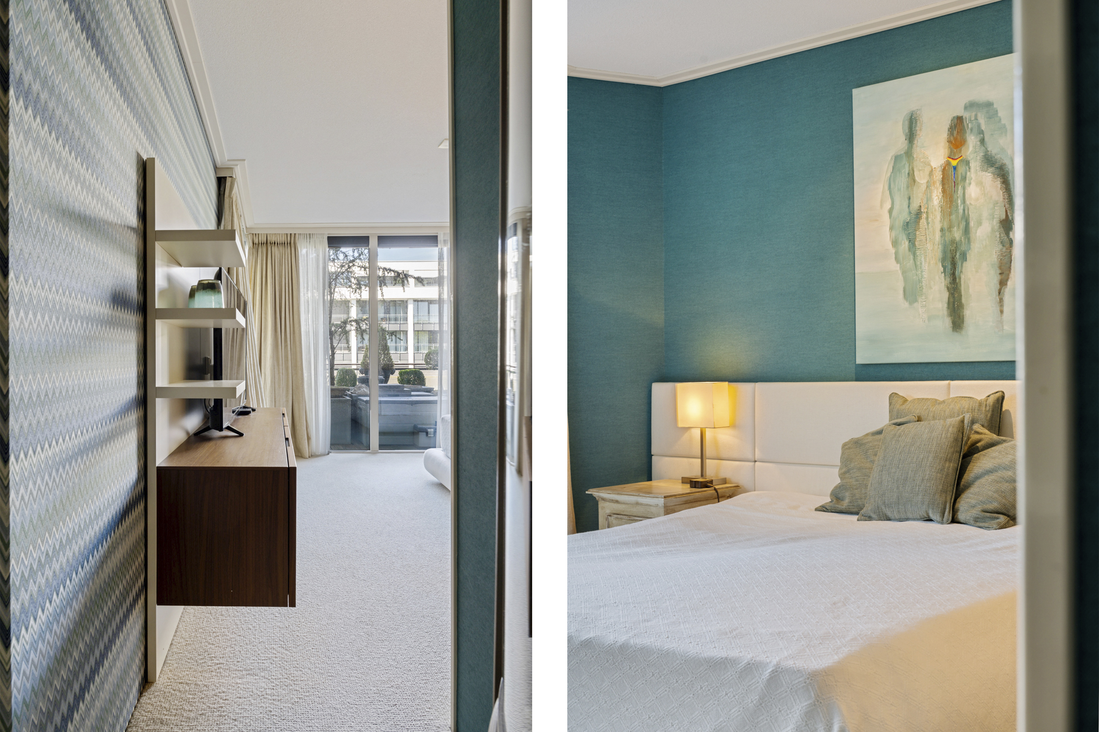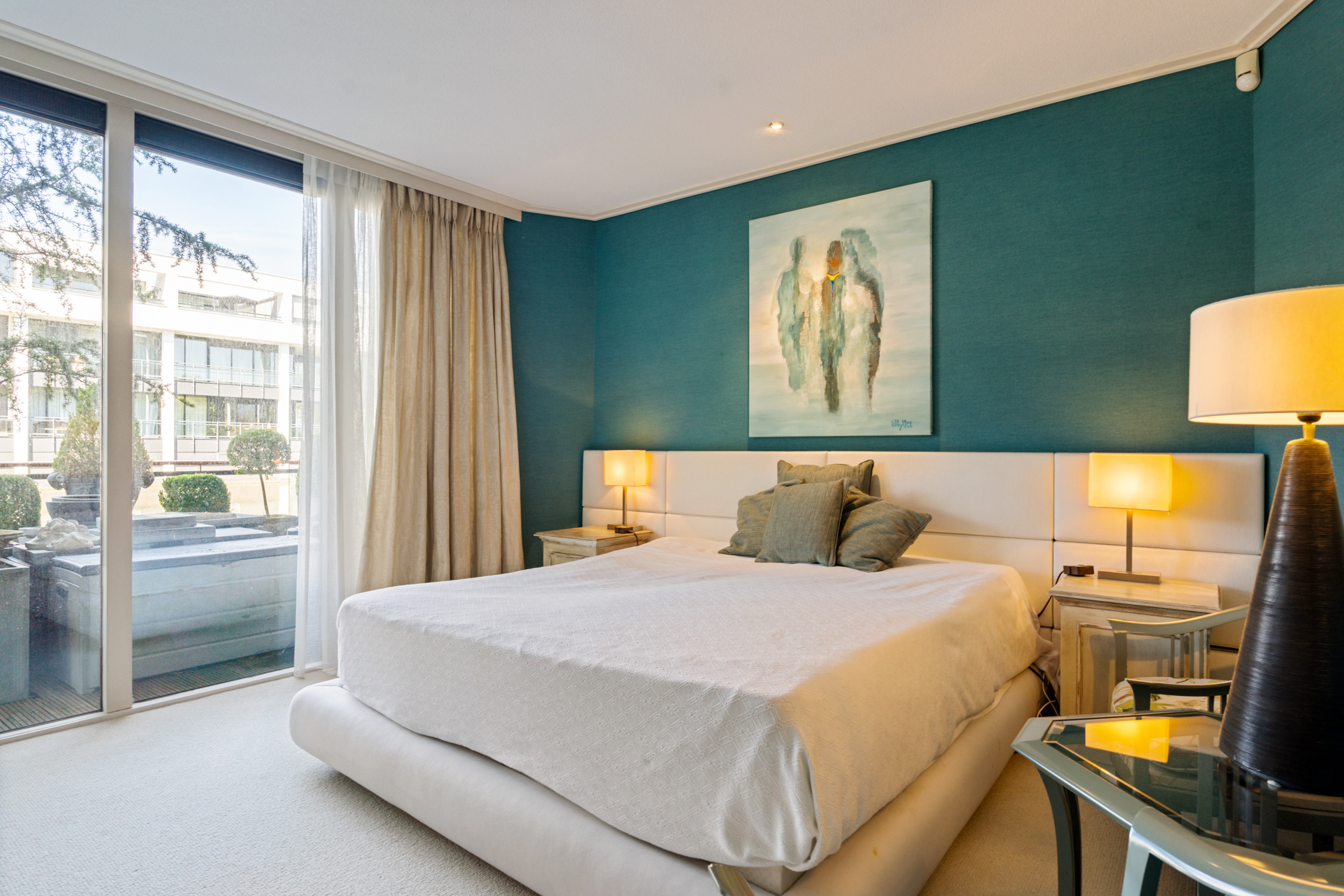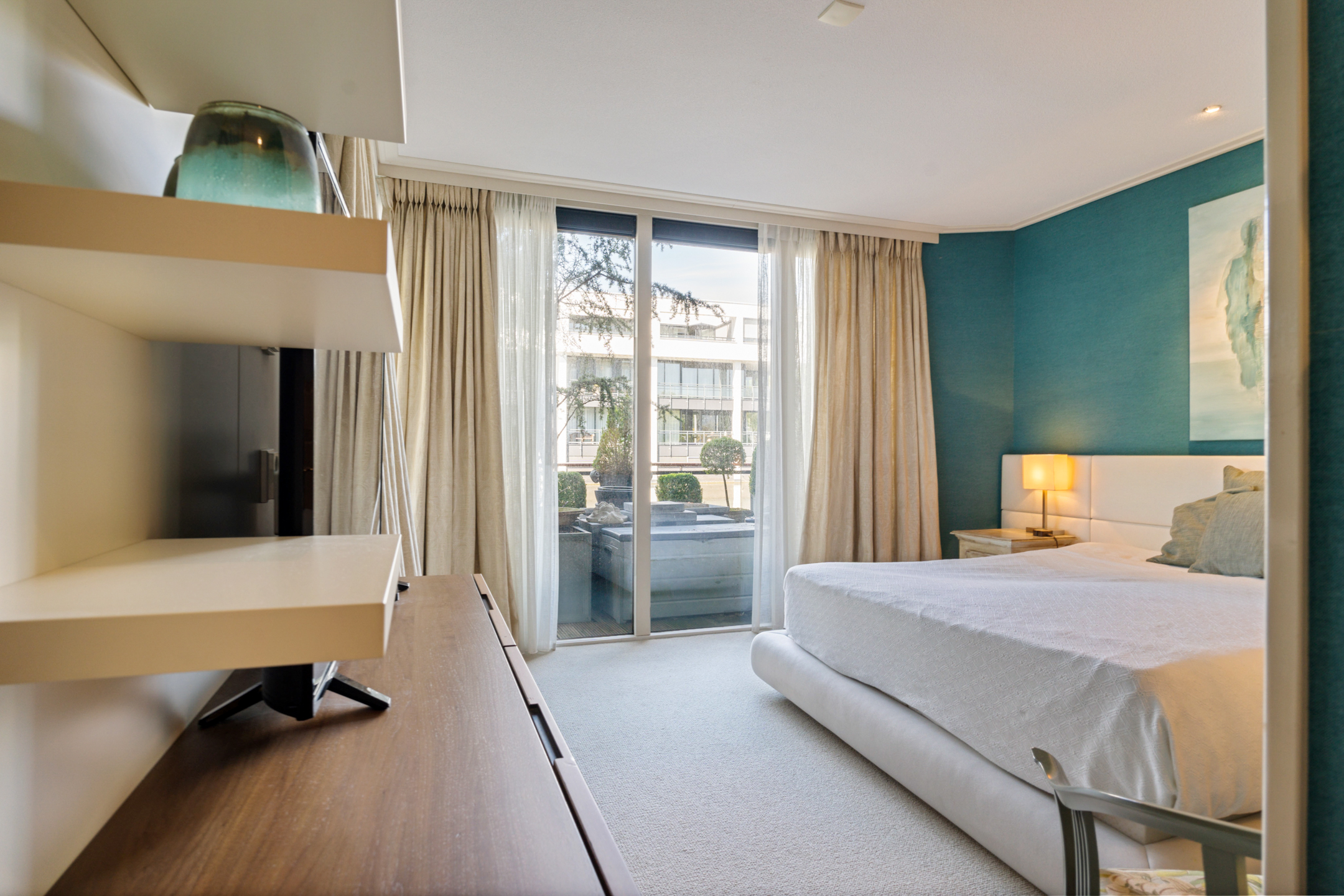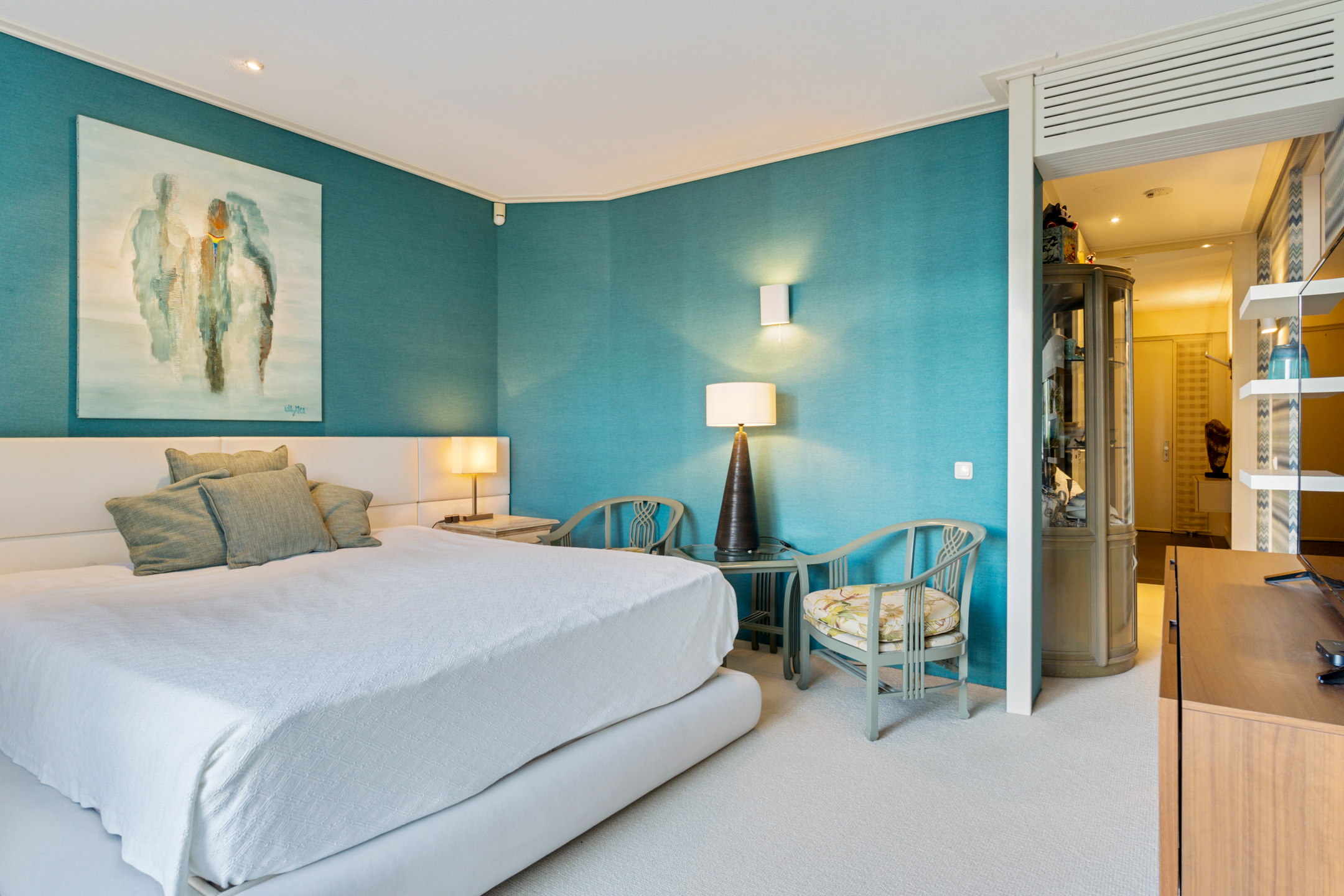 Het appartement beschikt over een royale master bedroom met toegang tot het terras, een study en een complete garderobekamer. Er is de mogelijkheid om eenvoudig twee extra slaapkamers te creëren. De luxe badkamer is uitgevoerd met een ligbad, inloopdouche met regendouche en sunshower, toilet, bidet en een stijlvol wastafelmeubel, allemaal van het luxe merk Flaminia.