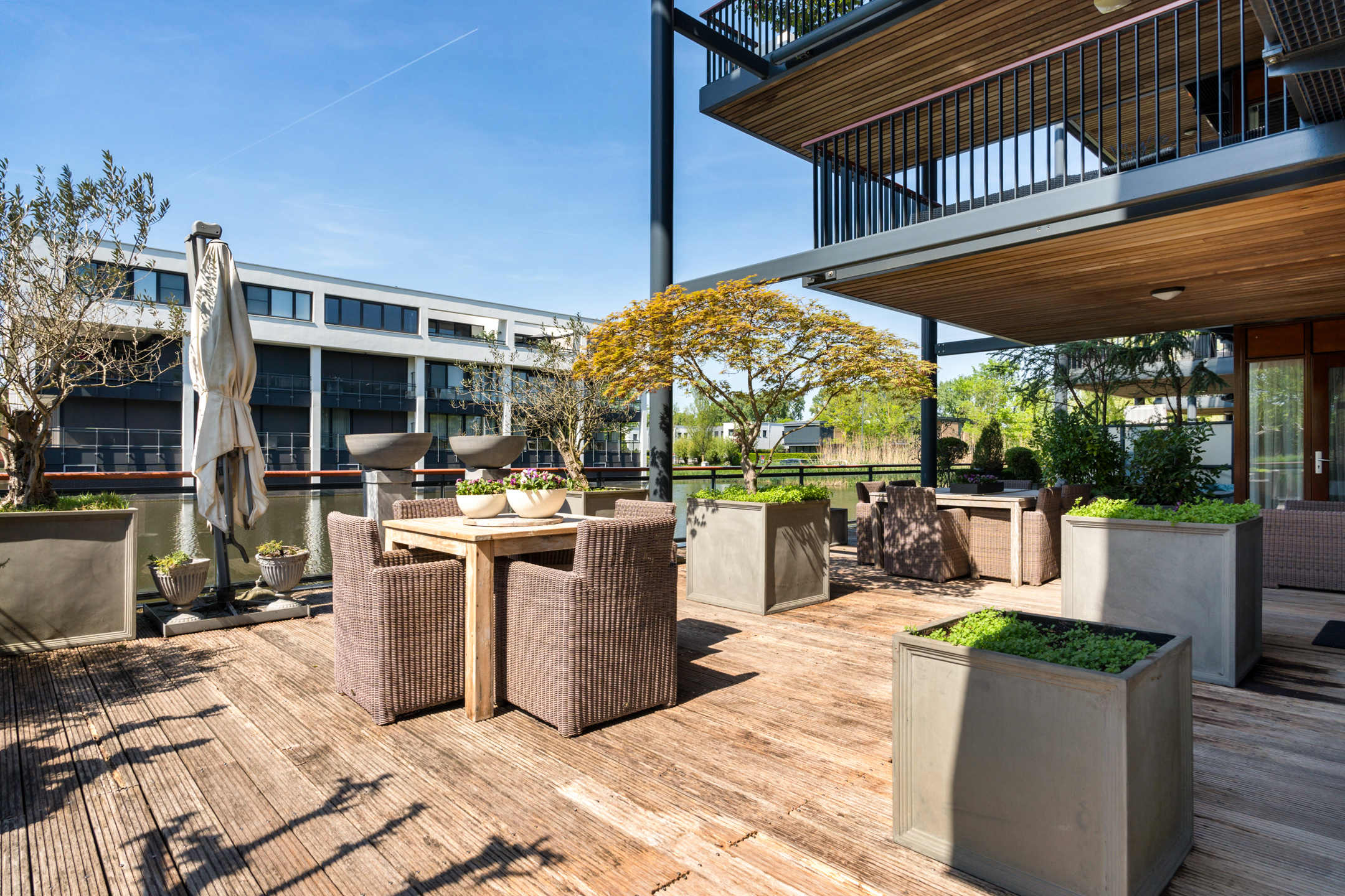 Luxe parterre appartement met royaal terras aan het water
