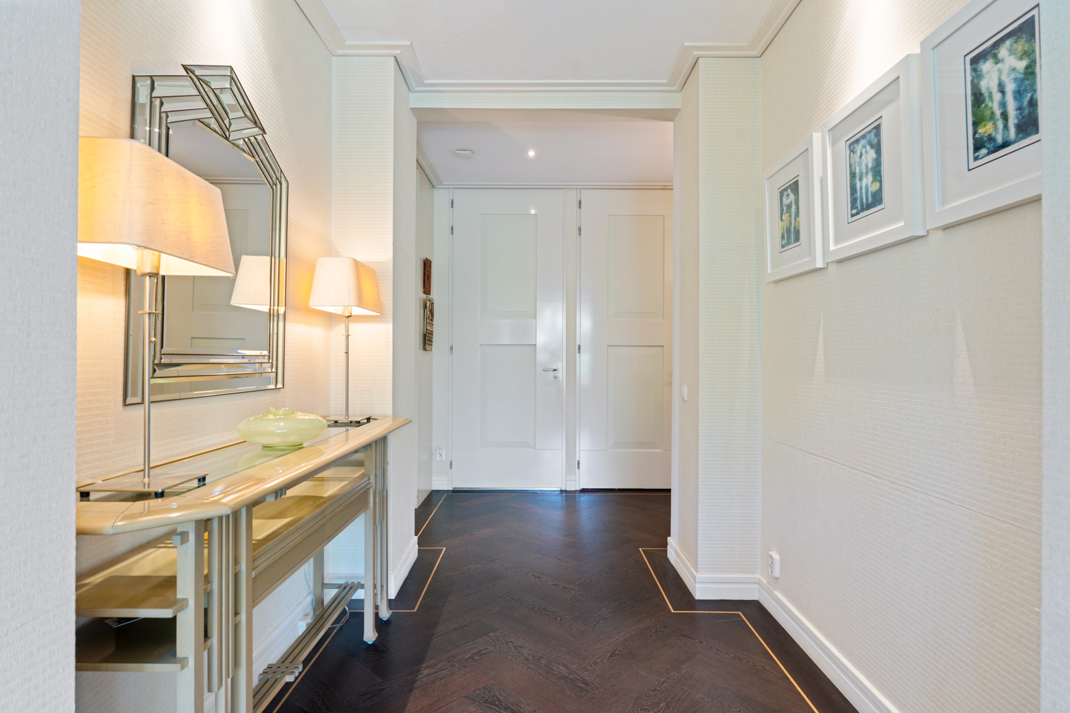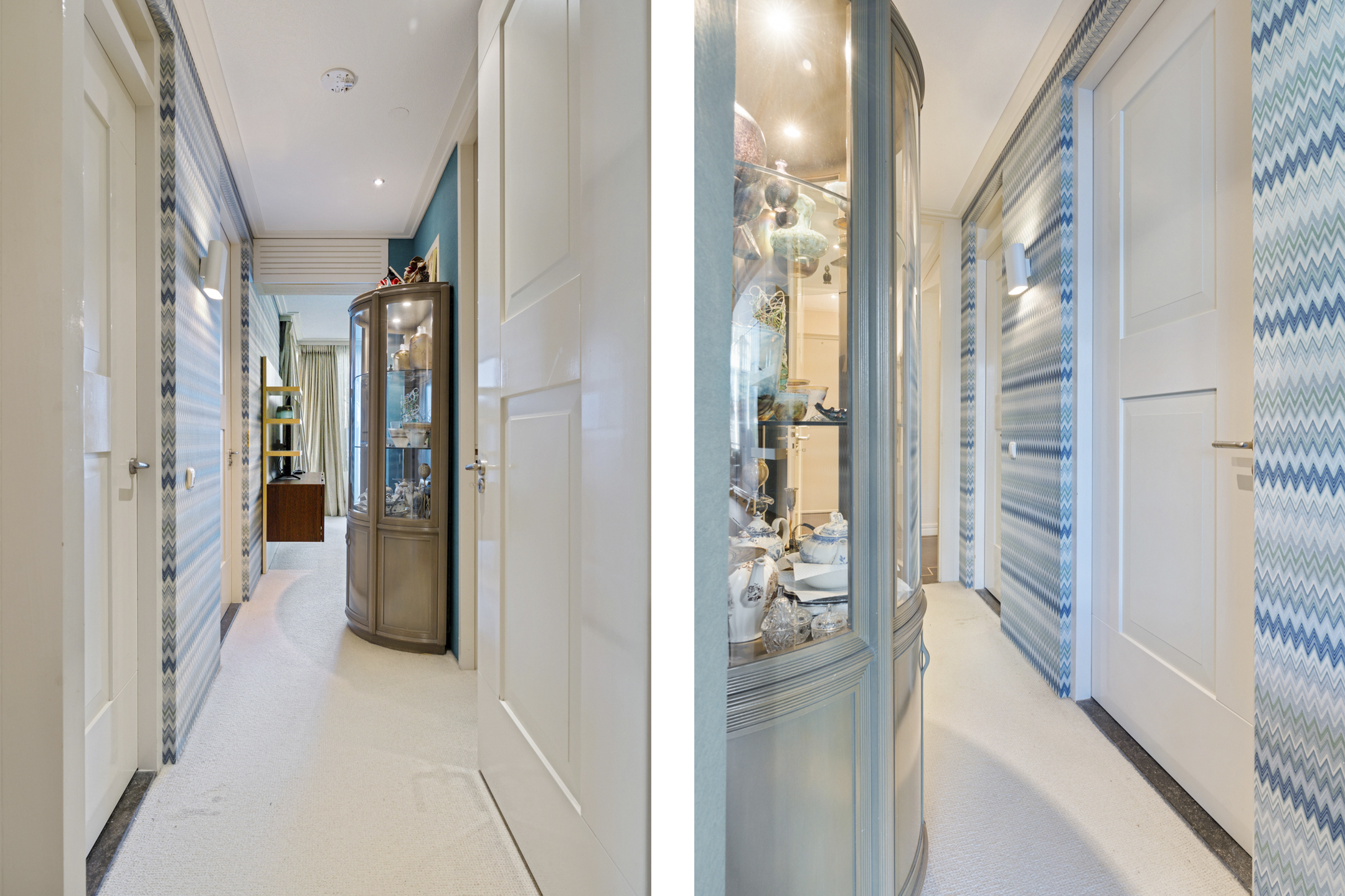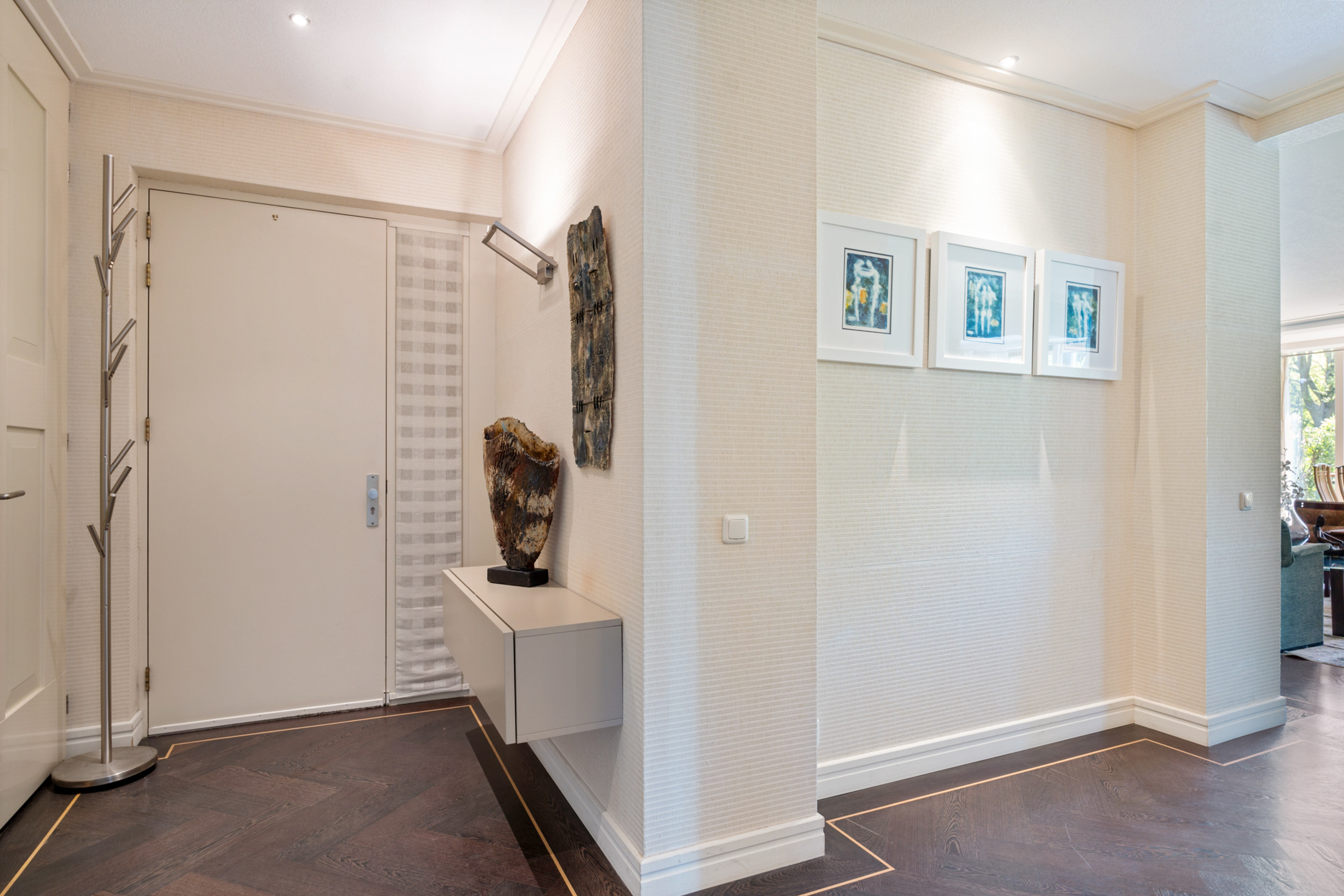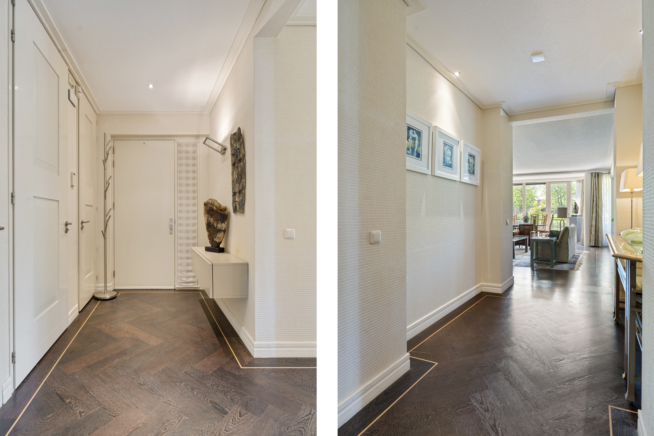Je betreedt het luxe complex via een stijlvolle loopbrug, omgeven door water voor optimale privacy. De ruime entree met statige trapopgang en automatische deuropening geven direct een gevoel van luxe en comfort. Vanuit de ondergrondse parkeergarage heb je direct toegang tot het appartement.