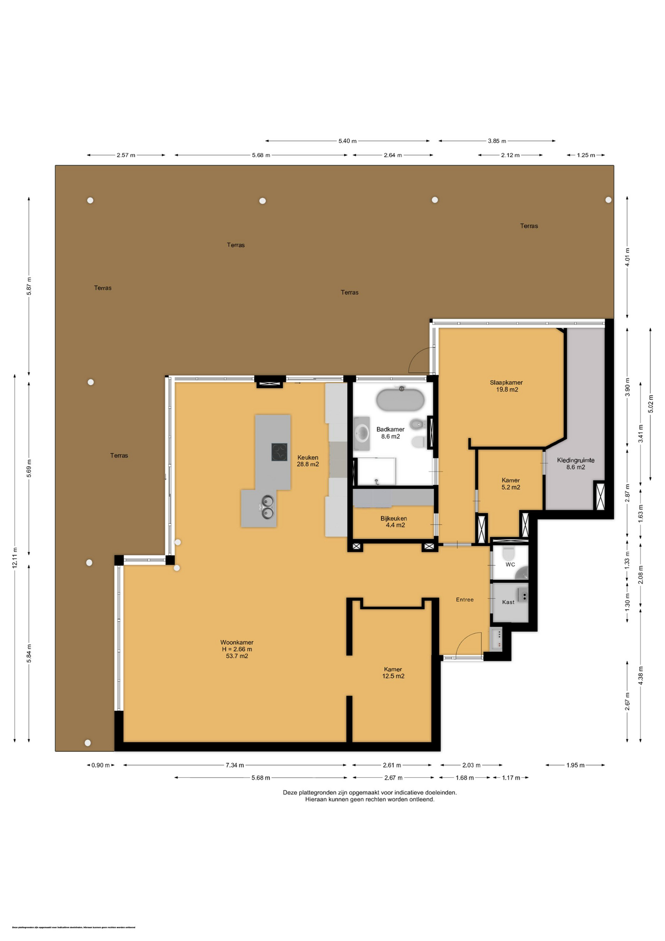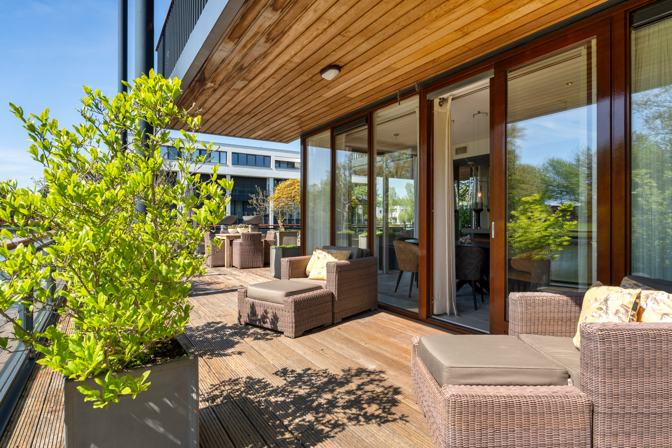+ Zonnig terras van ca. 150 m² op het zuidwesten, rondom het gehele appartement