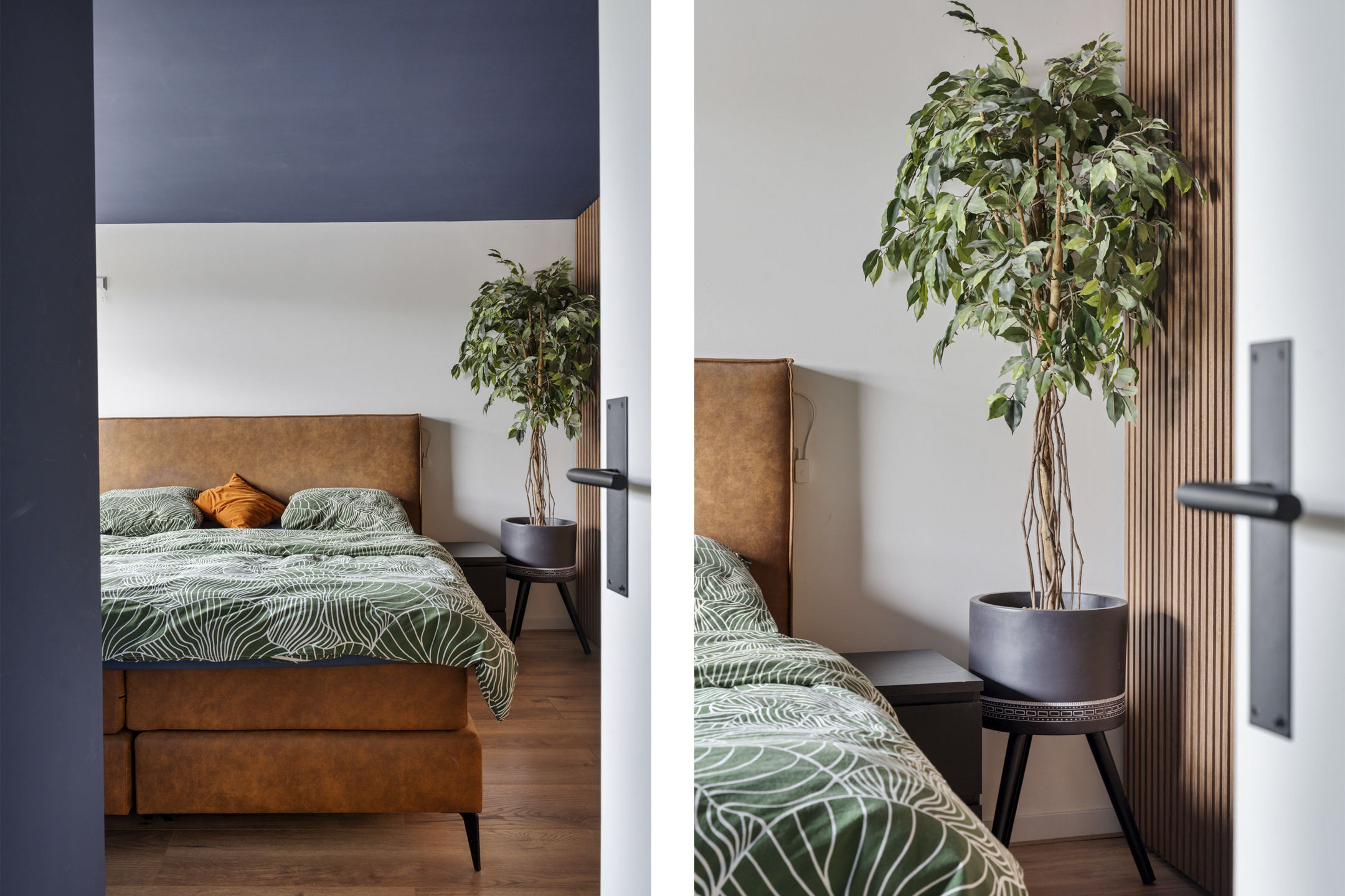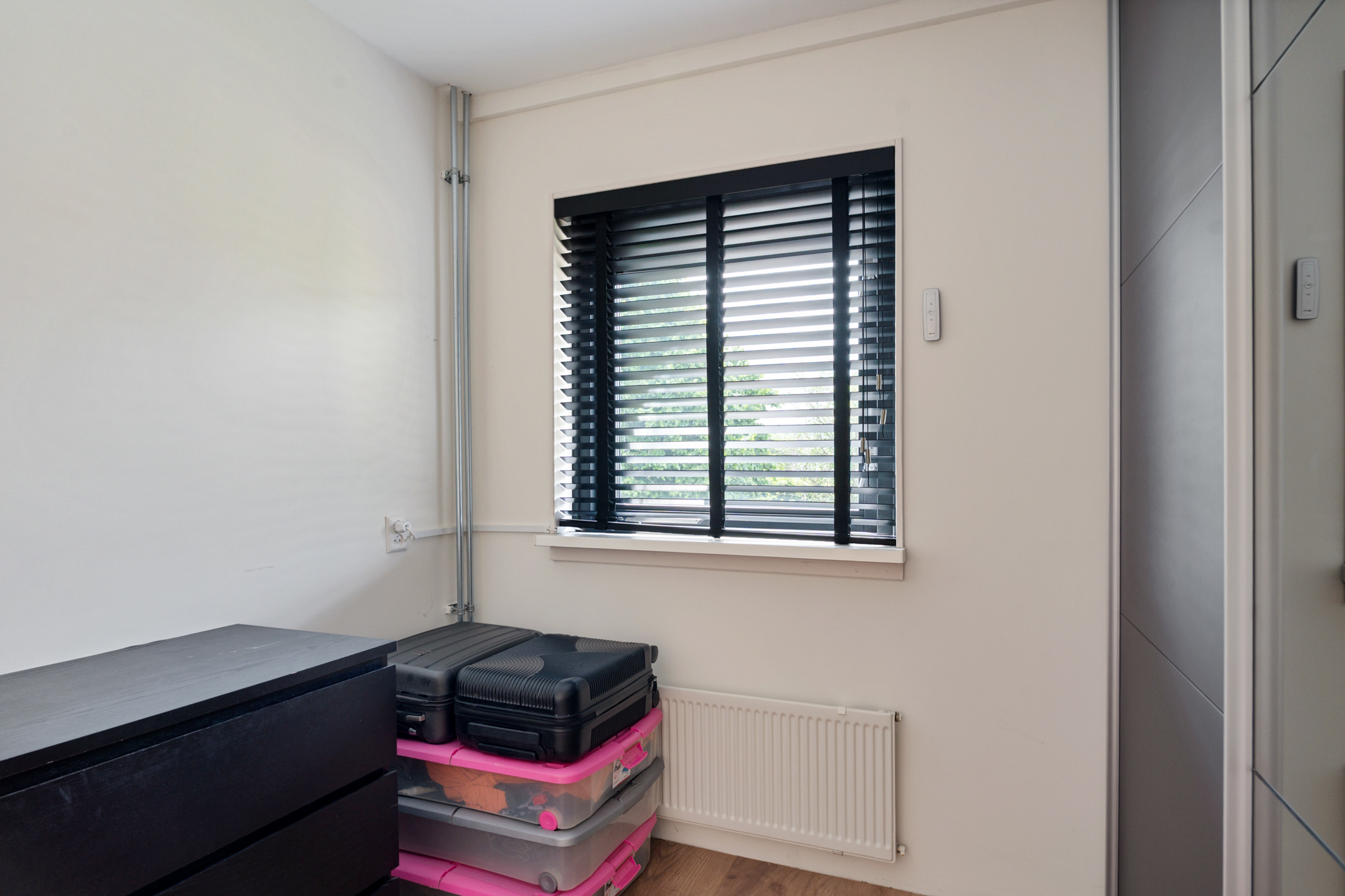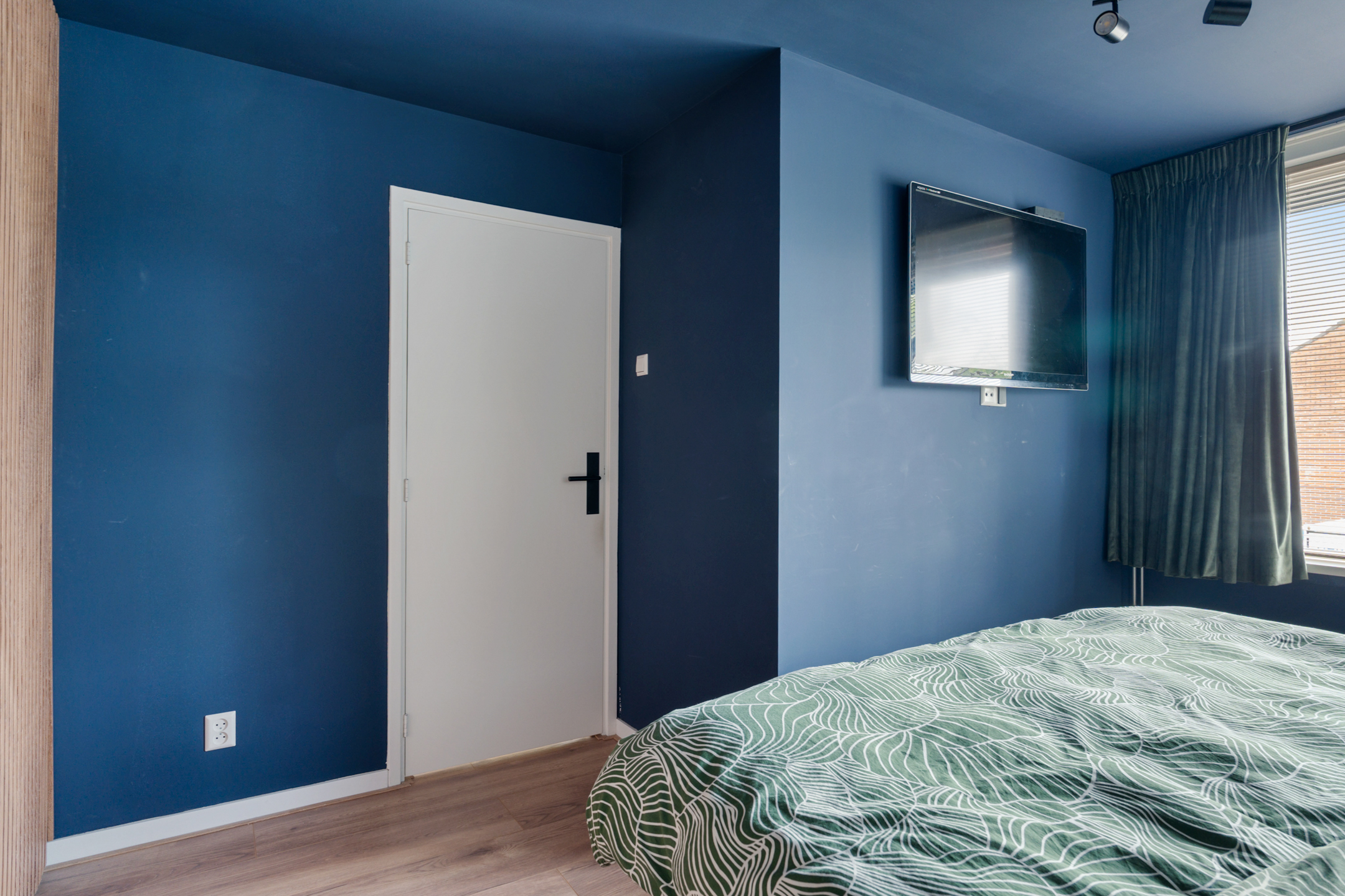 Hier vind je drie fijne slaapkamers, waarvan twee aan de achterzijde met elektrische rolluiken. De slaapkamer aan de voorzijde is de grootste en beschikt over een internetaansluiting — handig voor thuiswerken.