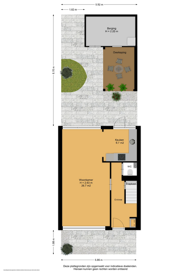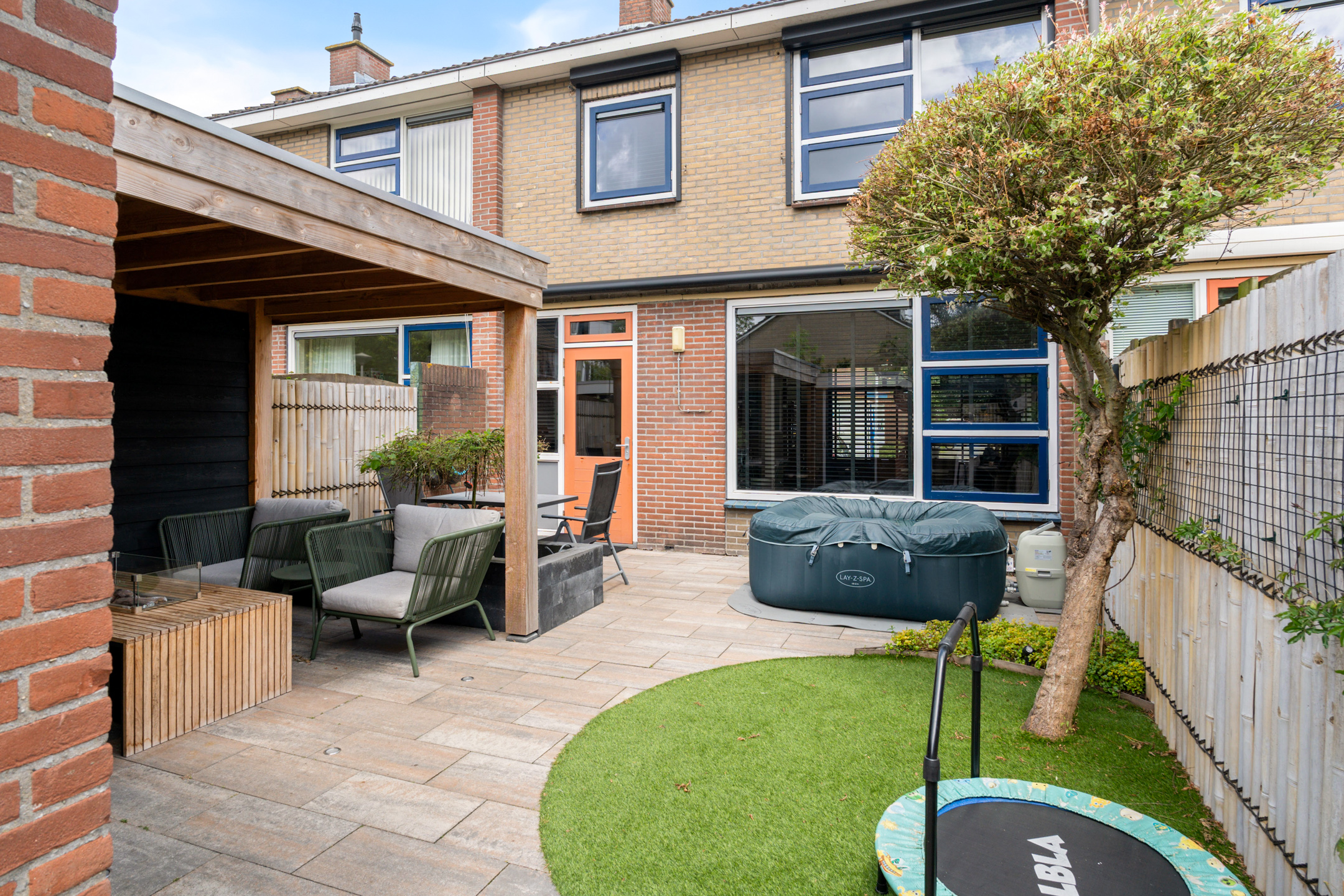 Achter in de tuin staat een ruime schuur met toegang tot de achterzijde van het perceel. Direct achter de woning bevindt zich een sfeervol bloemenperk dat zorgt voor een kleurrijk uitzicht. Een blok verder, aan de rechterkant, ligt een speeltuintje dat veilig bereikbaar is zonder een weg over te hoeven steken – ideaal voor jonge kinderen.
