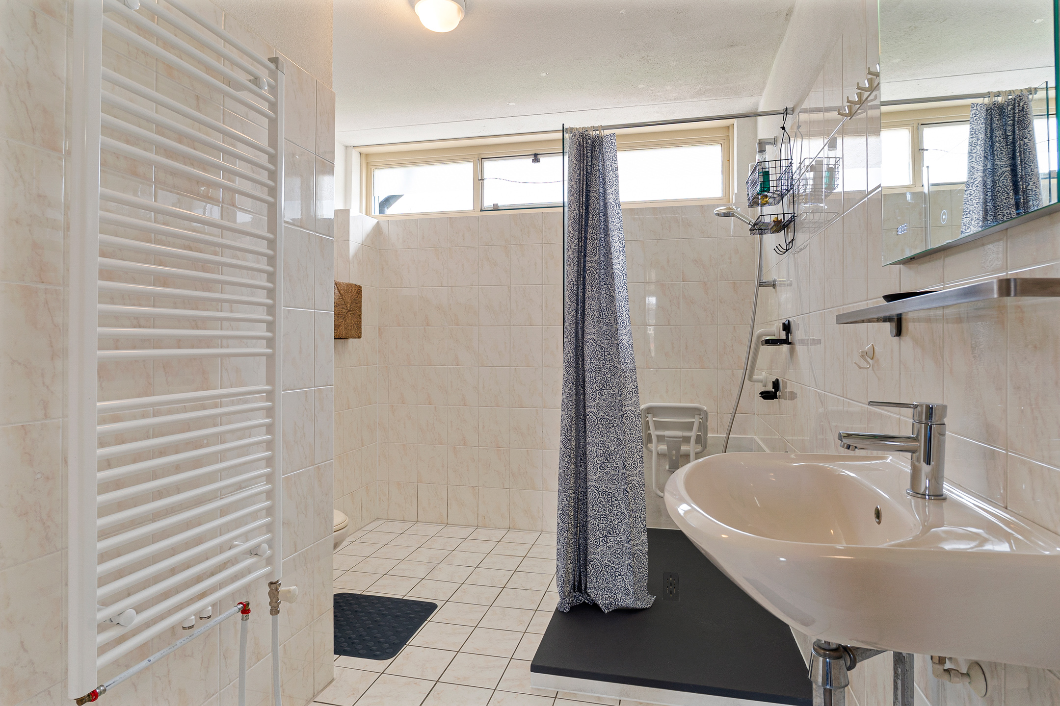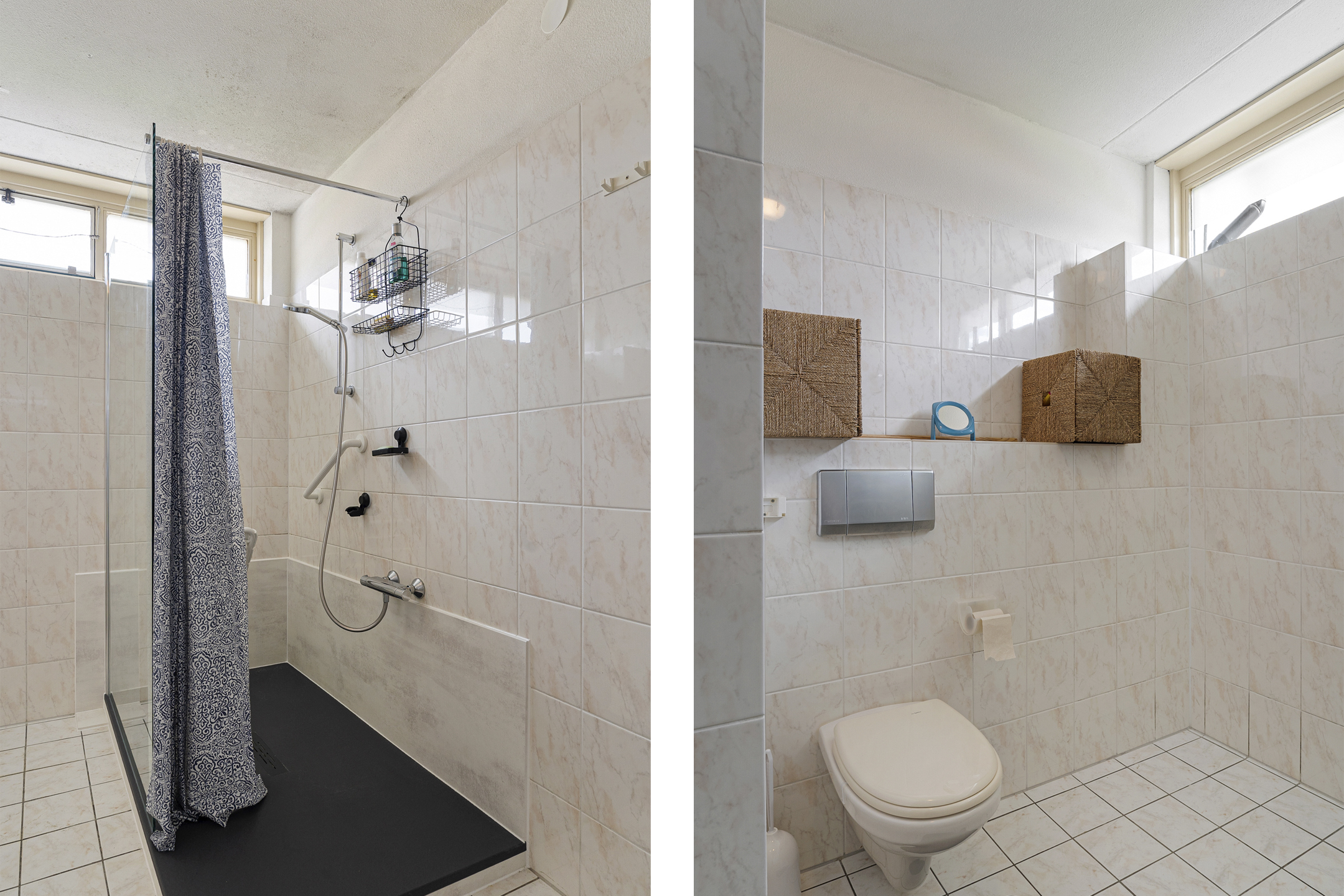 De overloop geeft toegang tot drie slaapkamers en de badkamer. Aan de achterzijde bevinden zich twee ruime slaapkamers met uitzicht op de tuin. De royale hoofdslaapkamer aan de voorzijde beschikt over een vaste kast. De badkamer is netjes afgewerkt en voorzien van een inloopdouche, wastafel, tweede toilet en een radiator.