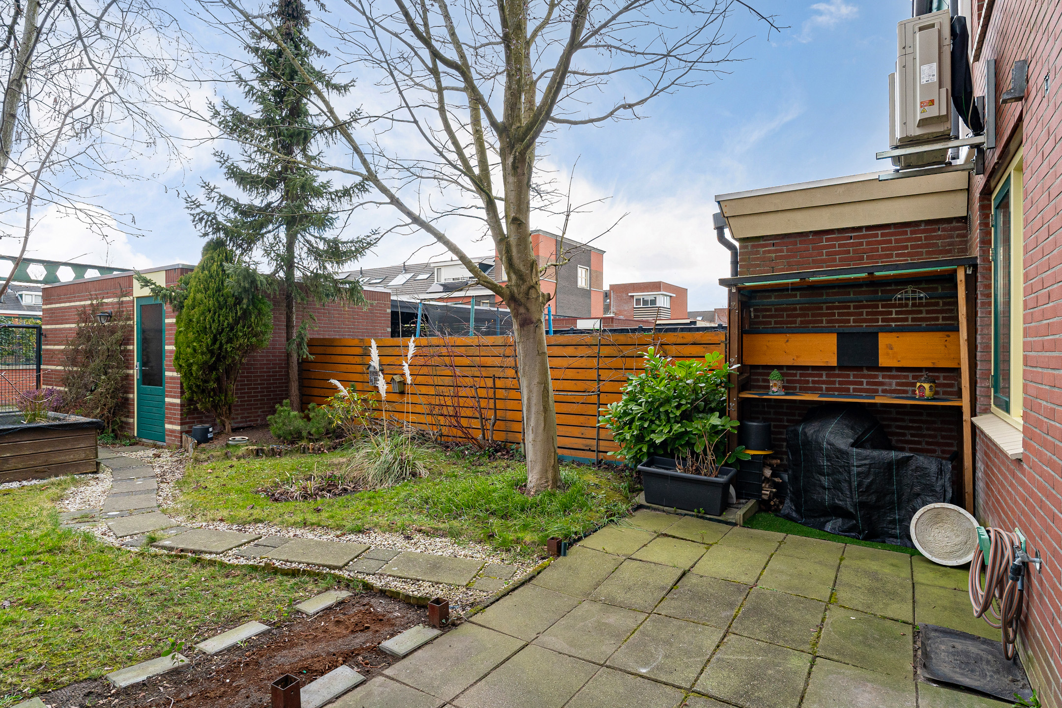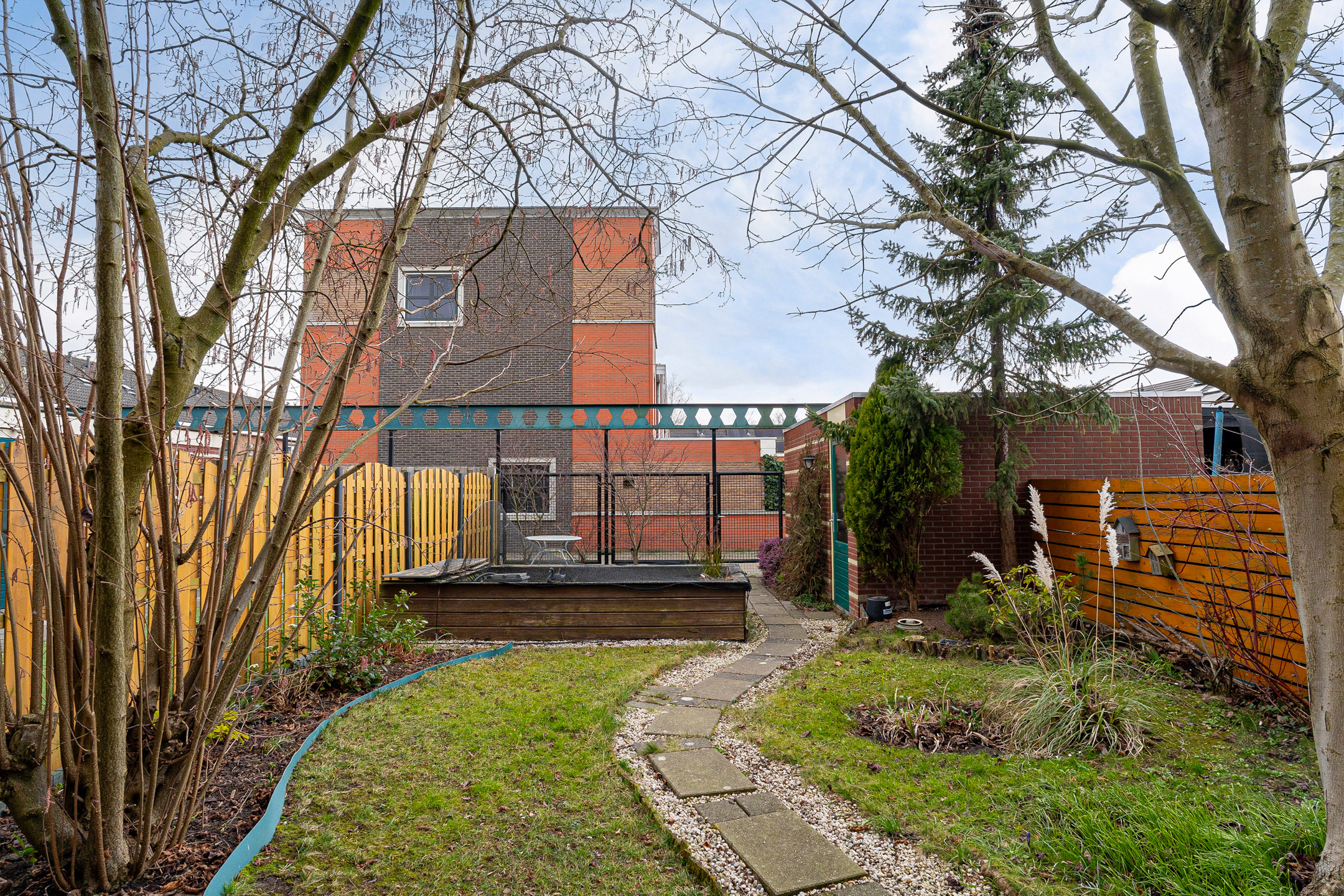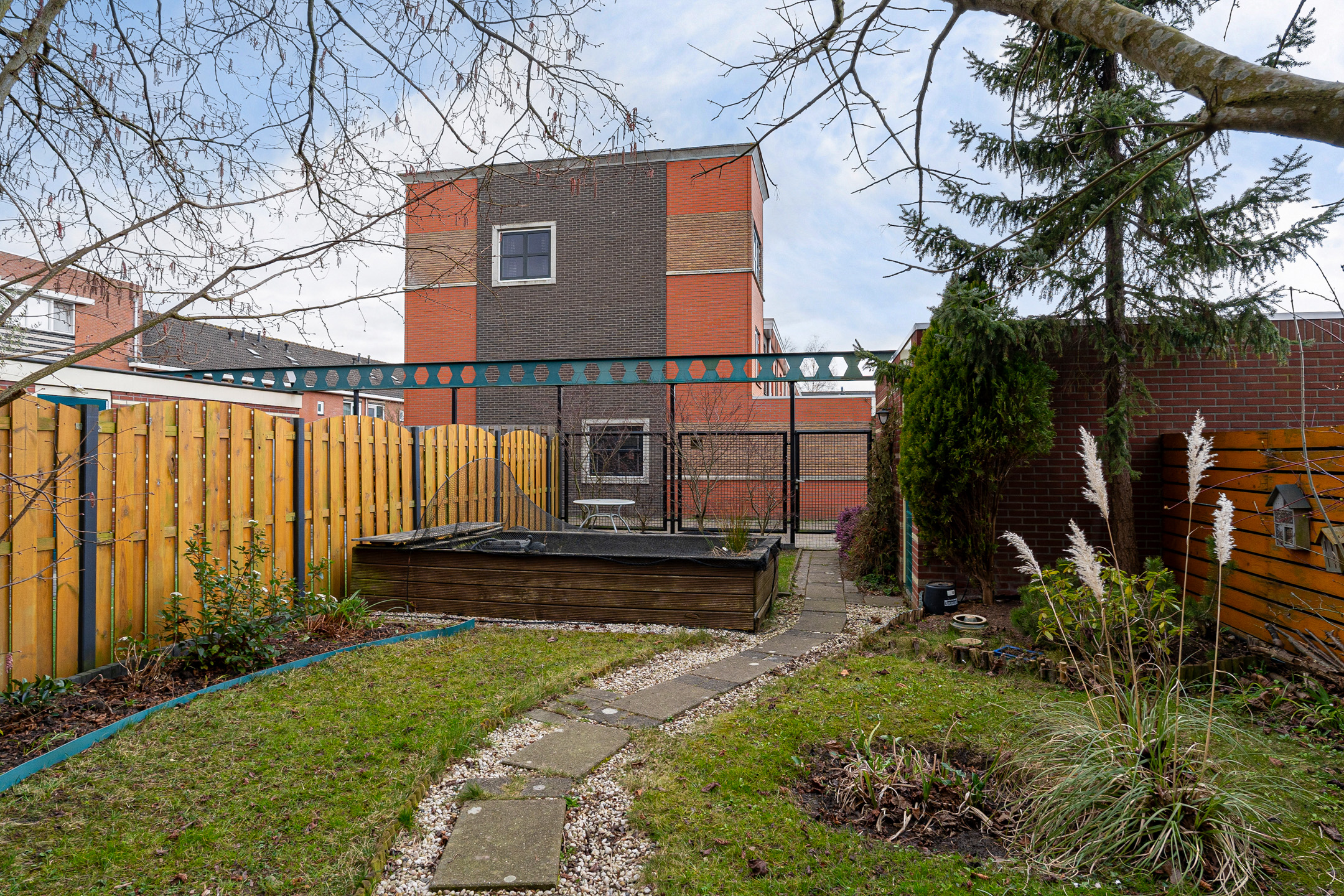 De tuin is deels betegeld, deels groen aangeplant en heeft een vijver, een externe berging én een achterom naar de privé parkeerplaats. Hier kun je tot in de avonduren genieten van de zon en de rust.