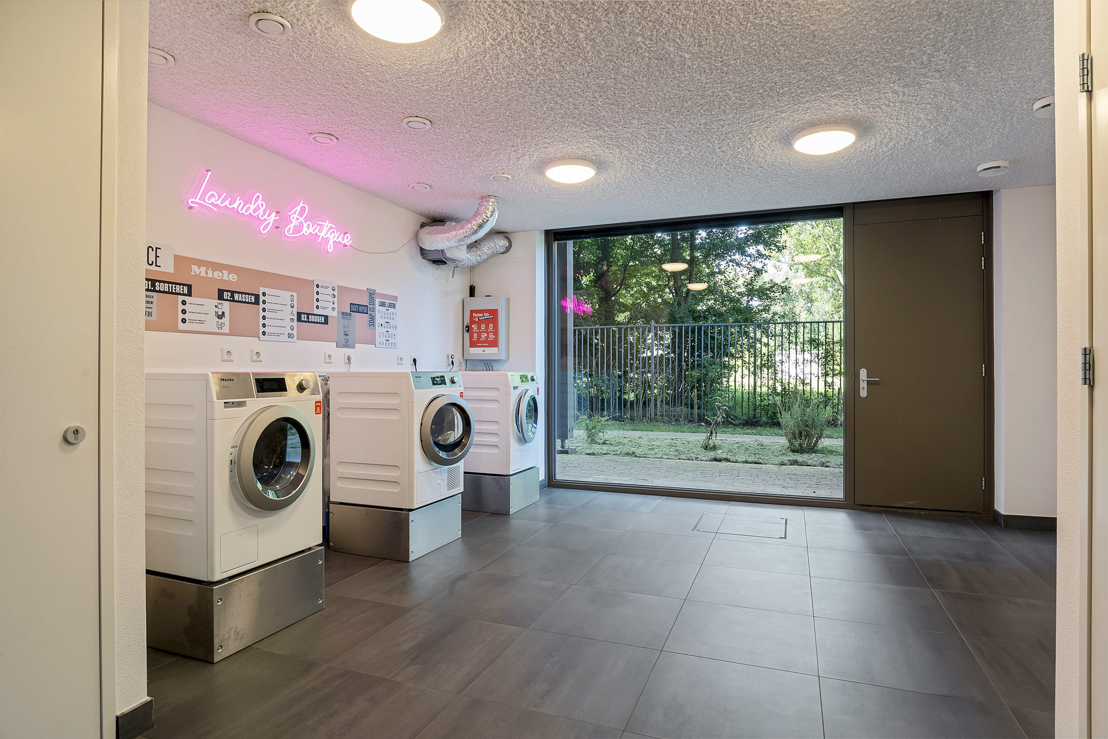 Daarnaast zijn er diverse gedeelde voorzieningen zoals een gemeenschappelijke huiskamer die je kunt huren voor bijeenkomsten, een logeerkamer voor gasten (€ 15,- per nacht), een wasserette, daktuin, speeltuin en moestuin. In de parkeergarage bevinden zich 72 flexparkeerplekken en meerdere laadpalen.