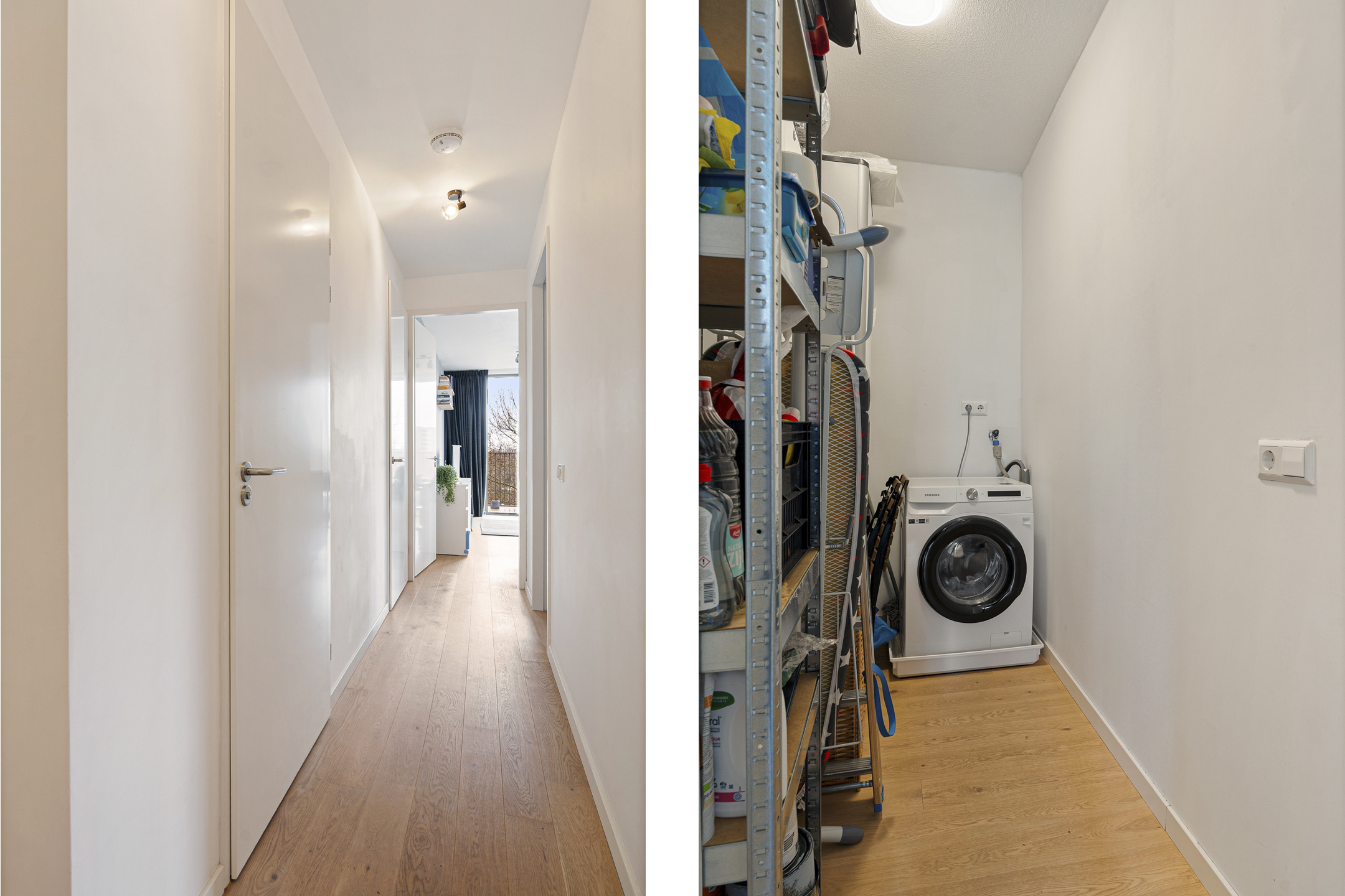 Verder beschikt het appartement over twee comfortabele slaapkamers van circa 11,3 m² en 9,5 m², een moderne badkamer met douche, toilet, designradiator en een aparte wasruimte. De slimme indeling en neutrale afwerking maken het appartement licht, functioneel en prettig om in te wonen.