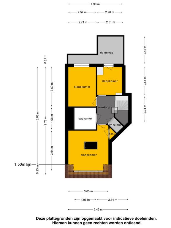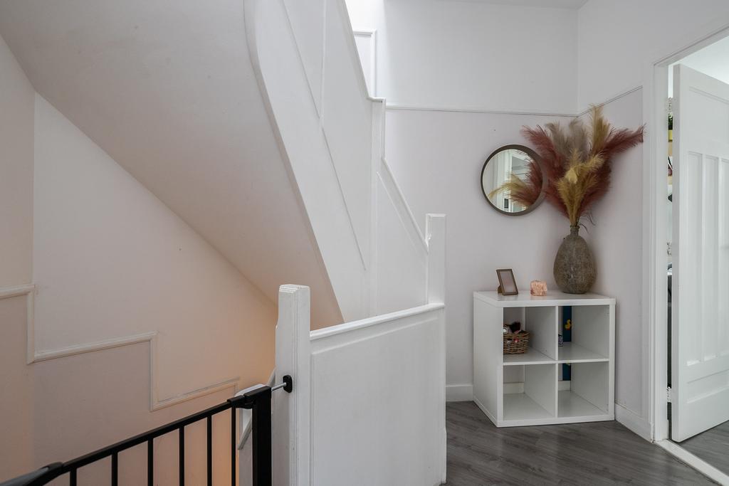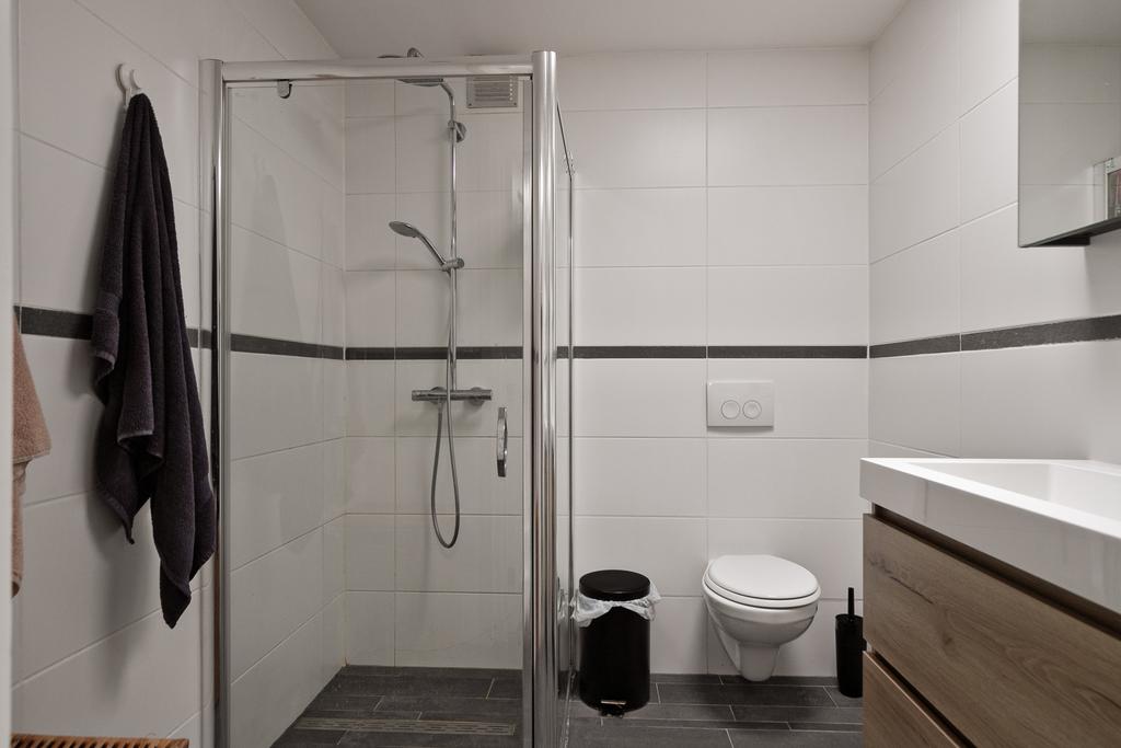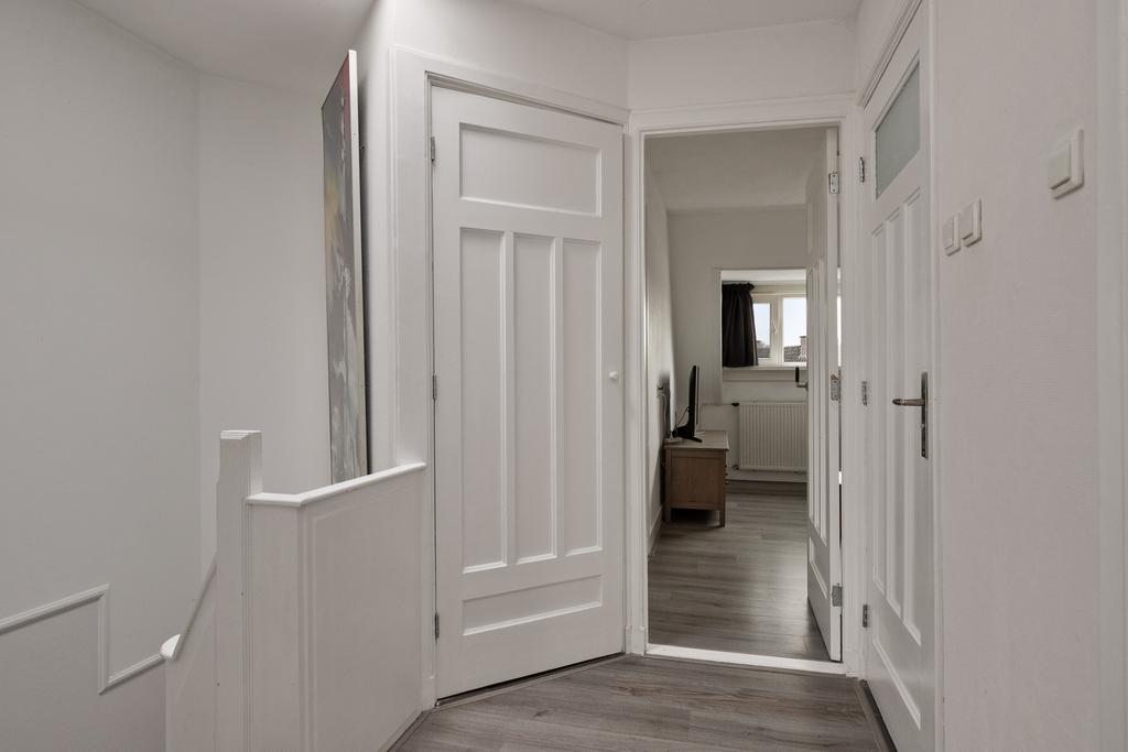 De trapopgang naar de tweede woonlaag komt uit op de overloop. Vanaf de overloop is er toegang tot alle vertrekken. In de hal is er een vaste kast met opstelplaats voor de wasmachine. Slaapkamer 1 ligt aan de voorzijde van de woning en is voorzien van een dakkapel en biedt toegang tot de vliering. De badkamer ligt in het midden en is modern afgewerkt. De badkamer heeft een douchecabine, een badkamermeubel met spiegelkast, een wandcloset en een handdoekradiator. Slaapkamer 2 en slaapkamer 3 liggen aan de achterzijde van de woning. Slaapkamer 3 biedt toegang tot het dakterras.