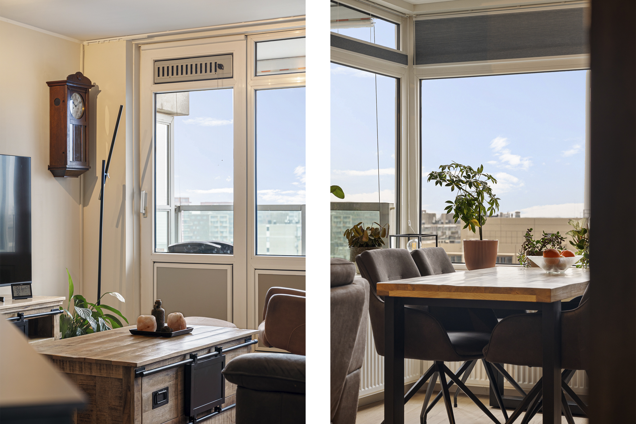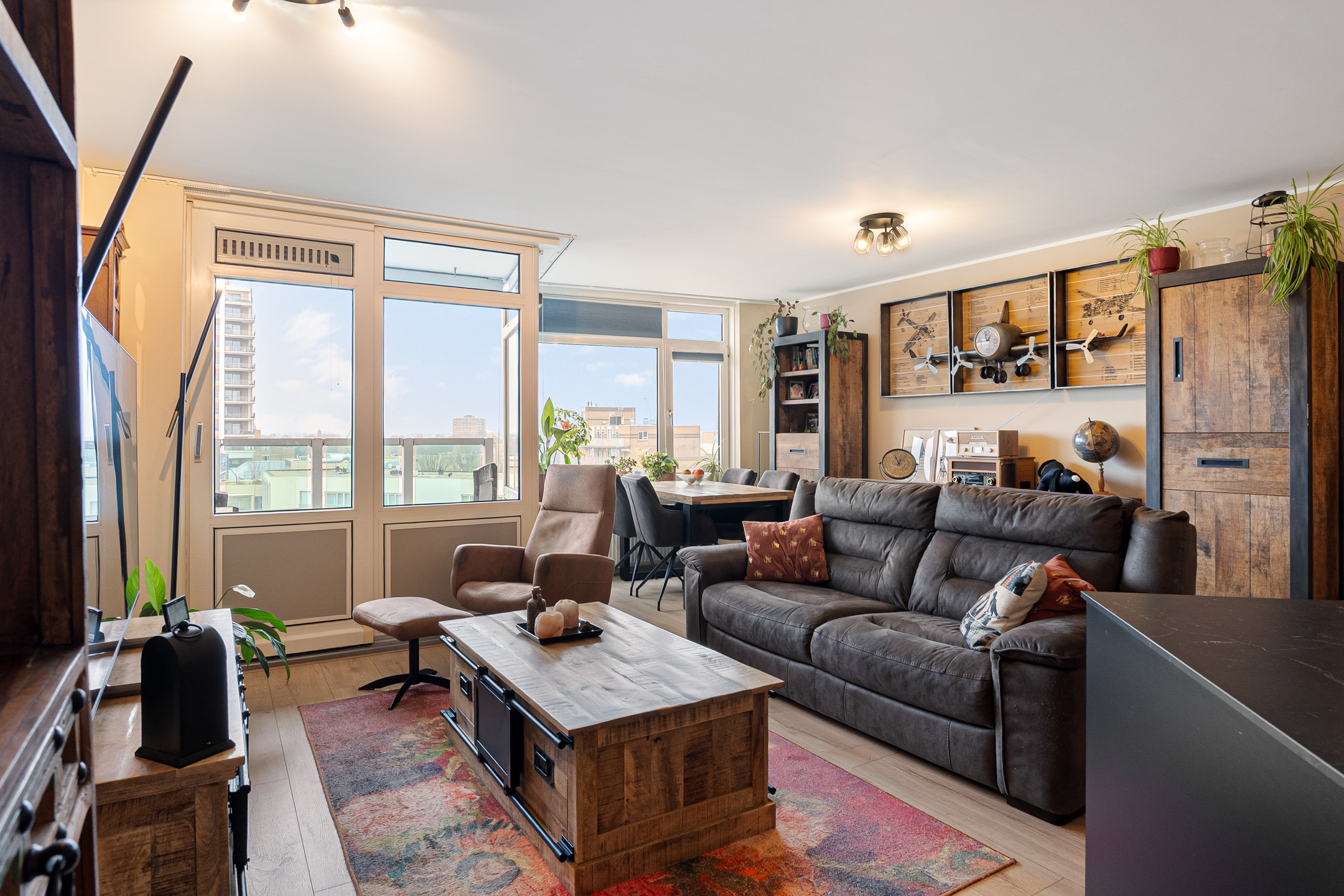 De fraaie laminaatvloer en luxe afwerking geven de woonkamer een moderne uitstraling. Vanuit de woonkamer heb je direct toegang tot het zonnige balkon op het zuiden.
