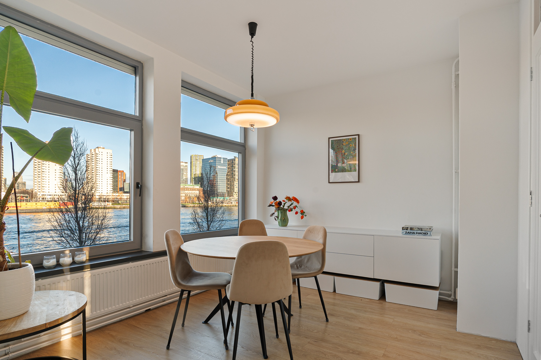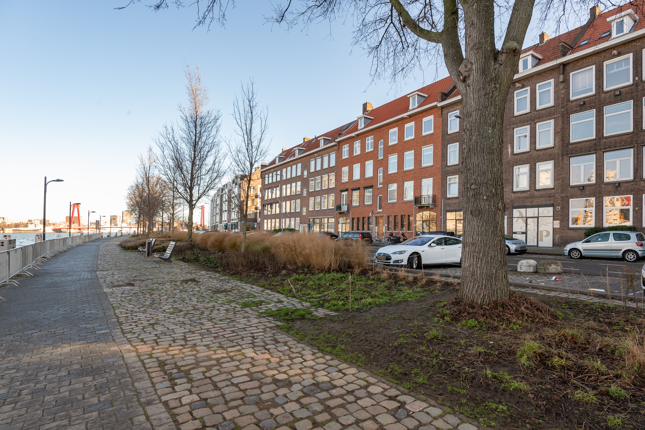 Het Noordereiland biedt een unieke combinatie van rust en stadsleven. Het historische eiland ligt direct aan het water, met een levendige boulevard en uitzicht op iconische bruggen zoals de Erasmus- en Willemsbrug. Alle voorzieningen van het centrum liggen op loopafstand, terwijl de omgeving haar eigen charme en rust behoudt.