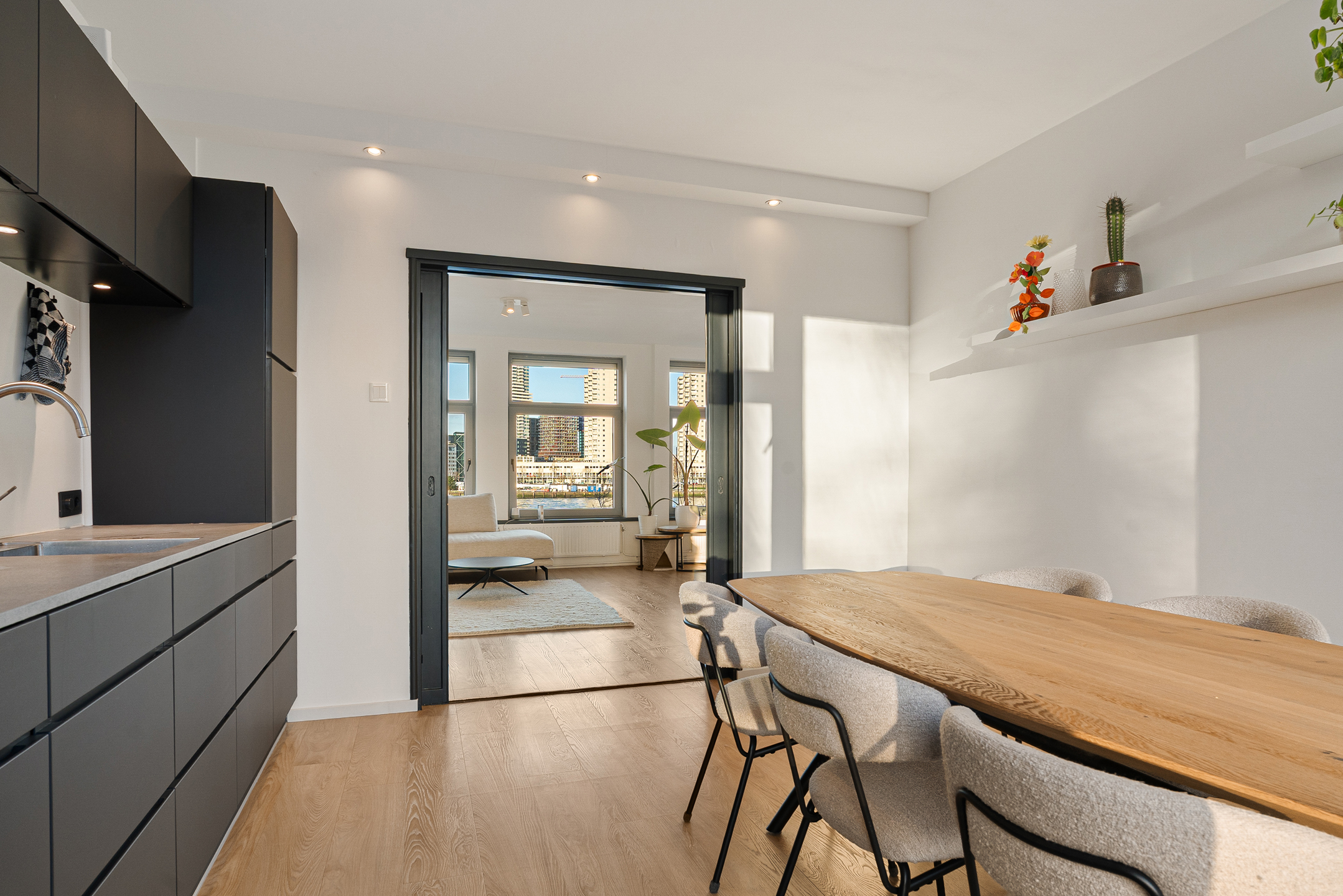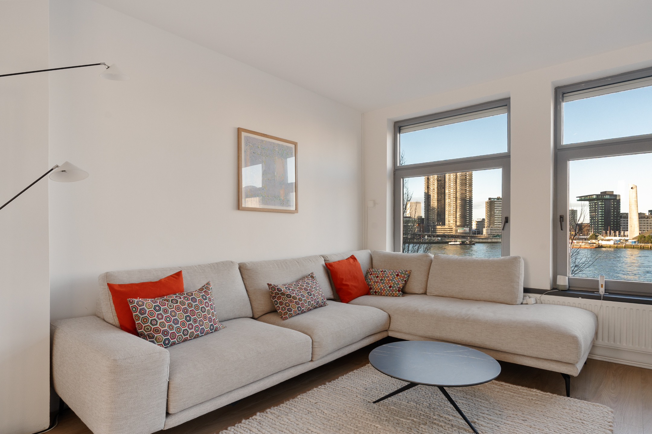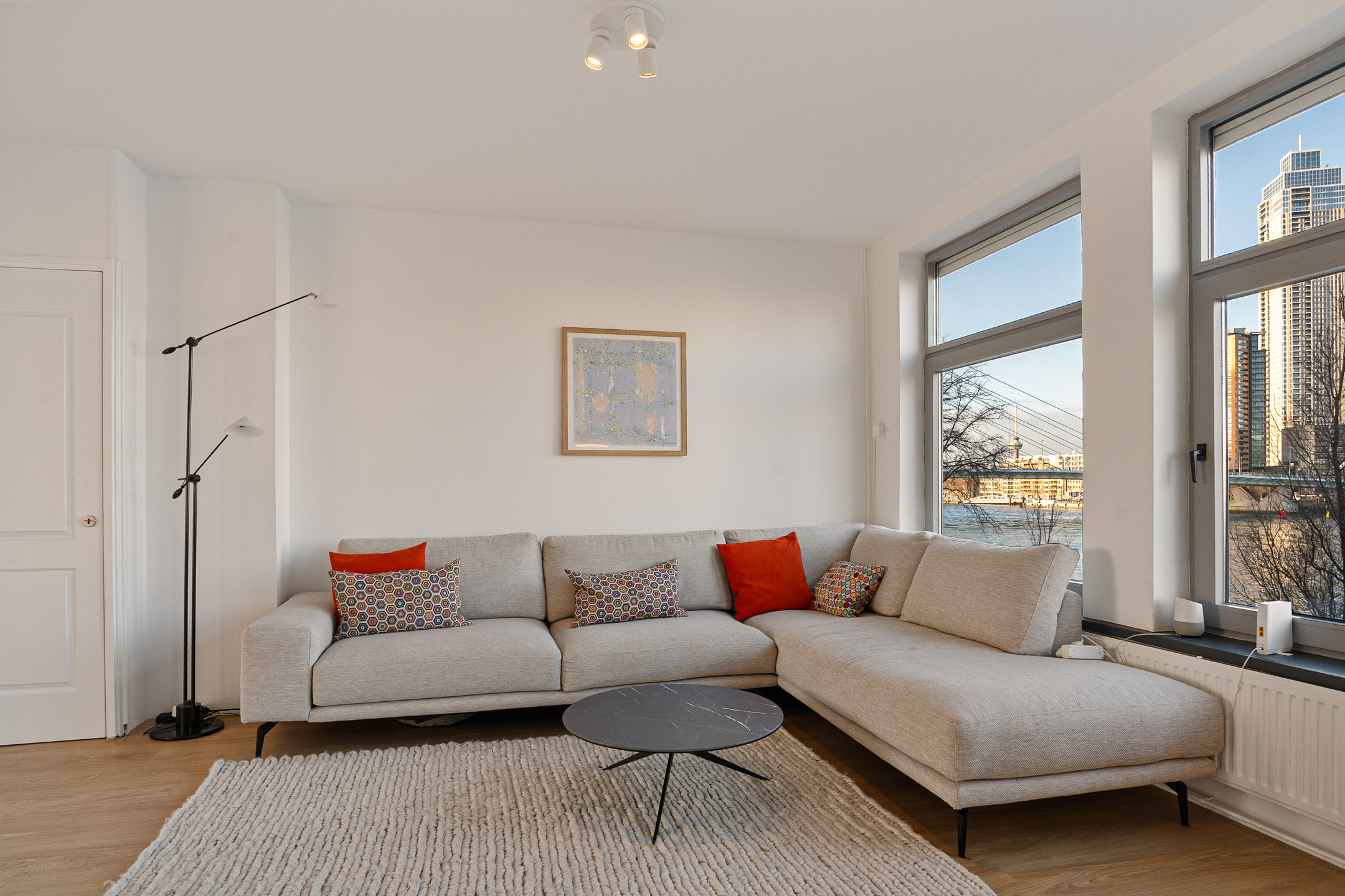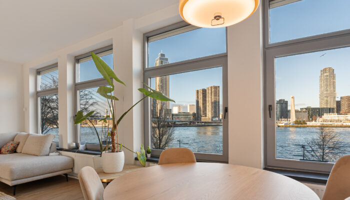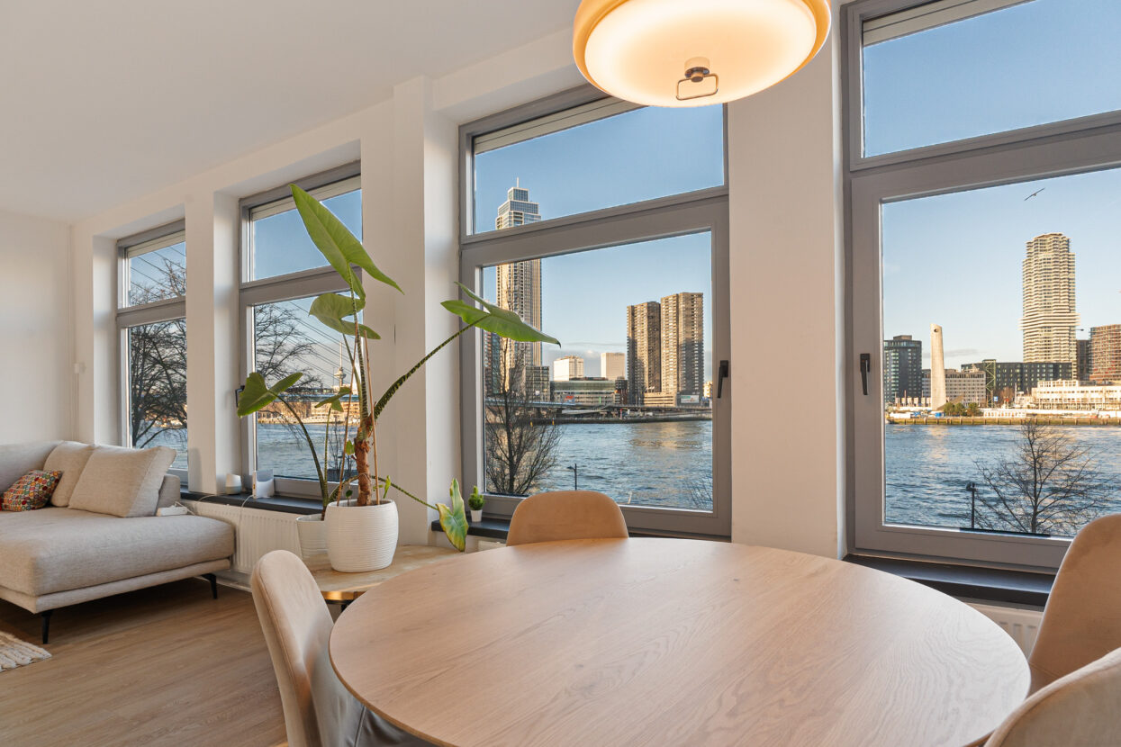 Een plek waar je elke dag wakker wordt met het bruisende uitzicht van Rotterdam aan je voeten. Dit ruime 2-kamer appartement op het historische Noordereiland combineert sfeer, comfort en een ongeëvenaard panorama over de Maas. De lichte woonkamer, royale slaapkamer, fijne leefkeuken en zonnig balkon maken het geheel compleet.