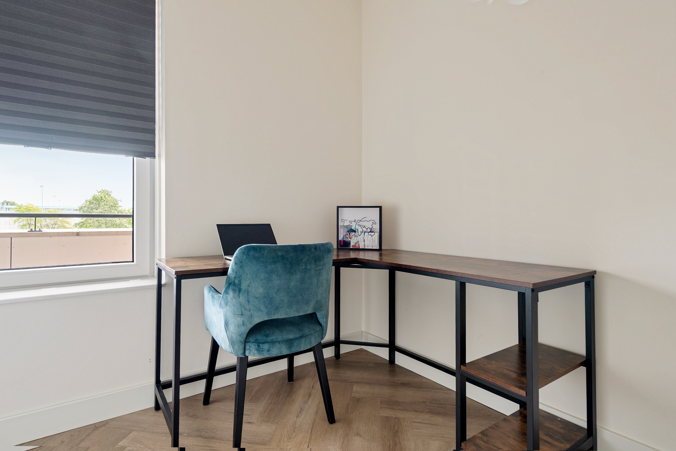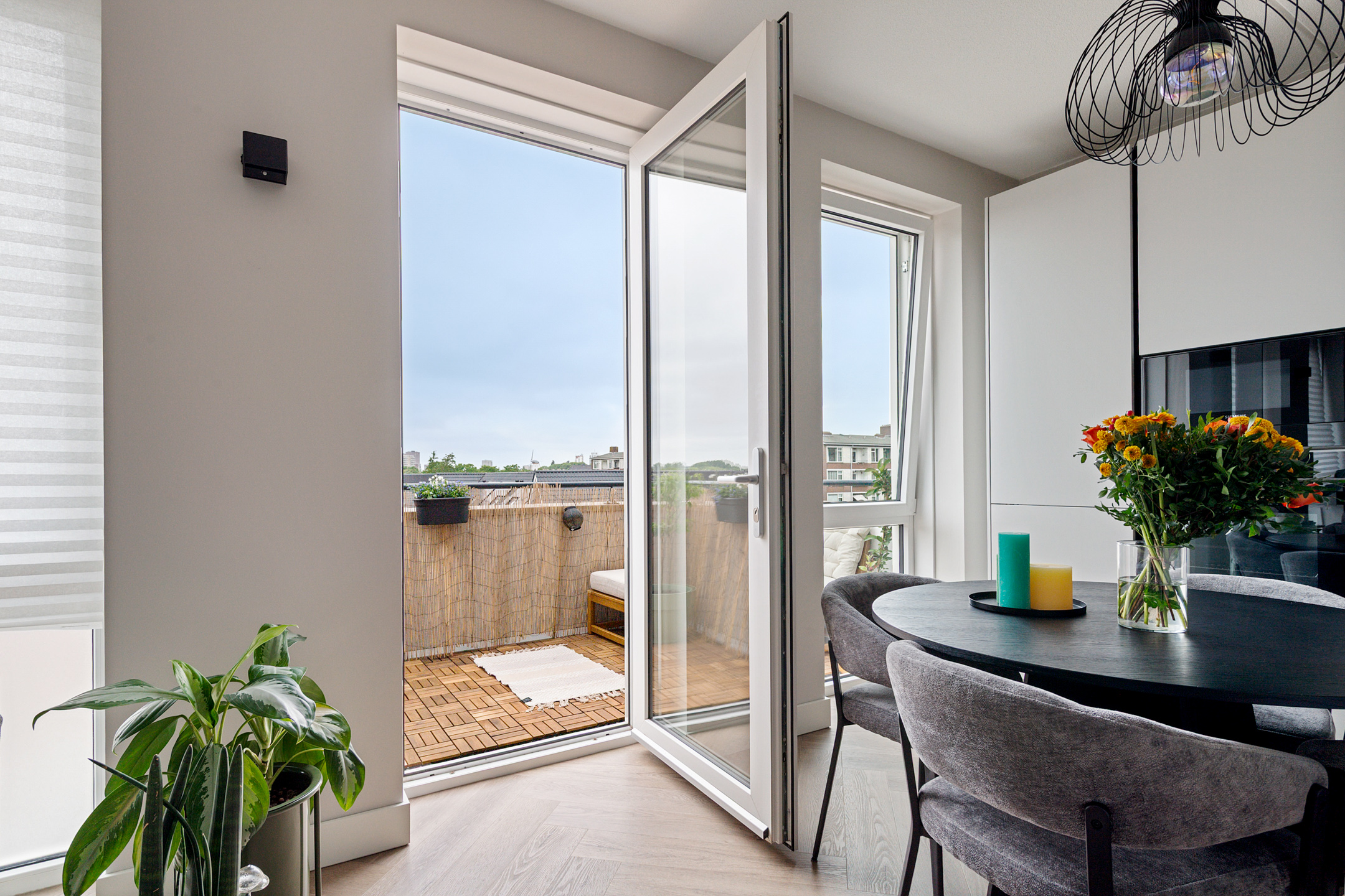 Koken en leven komen hier op een fijne manier samen. Via de woonkamer heb je toegang tot het ruime balkon op het noordwesten. Dit is een heerlijke plek om te ontspannen en te genieten van de middag- en avondzon.