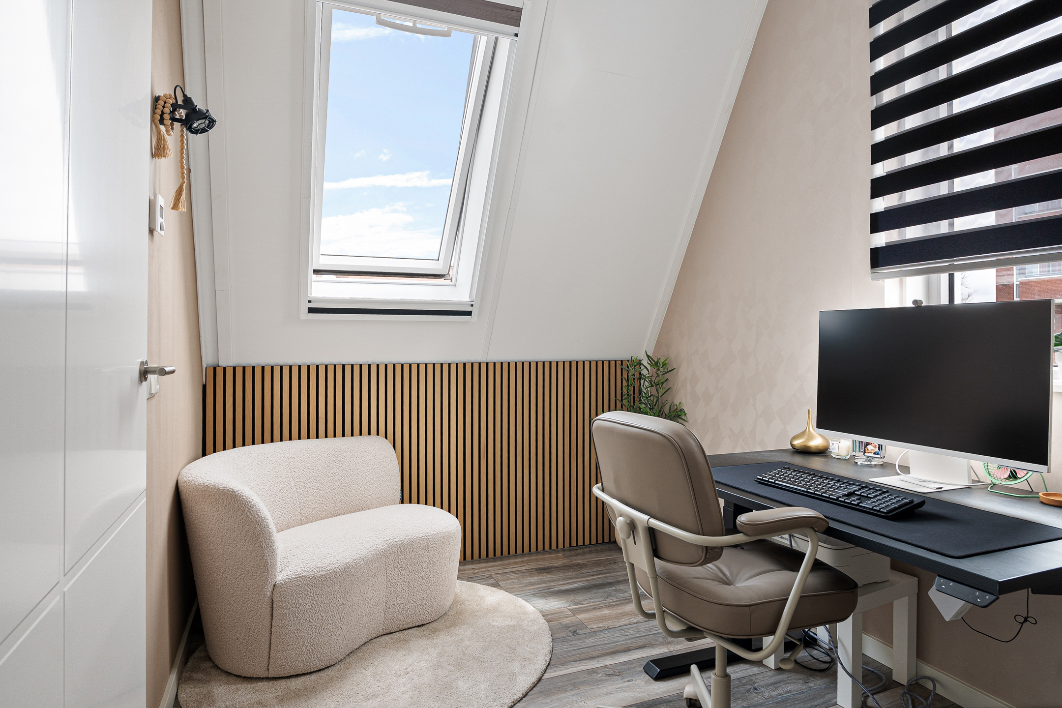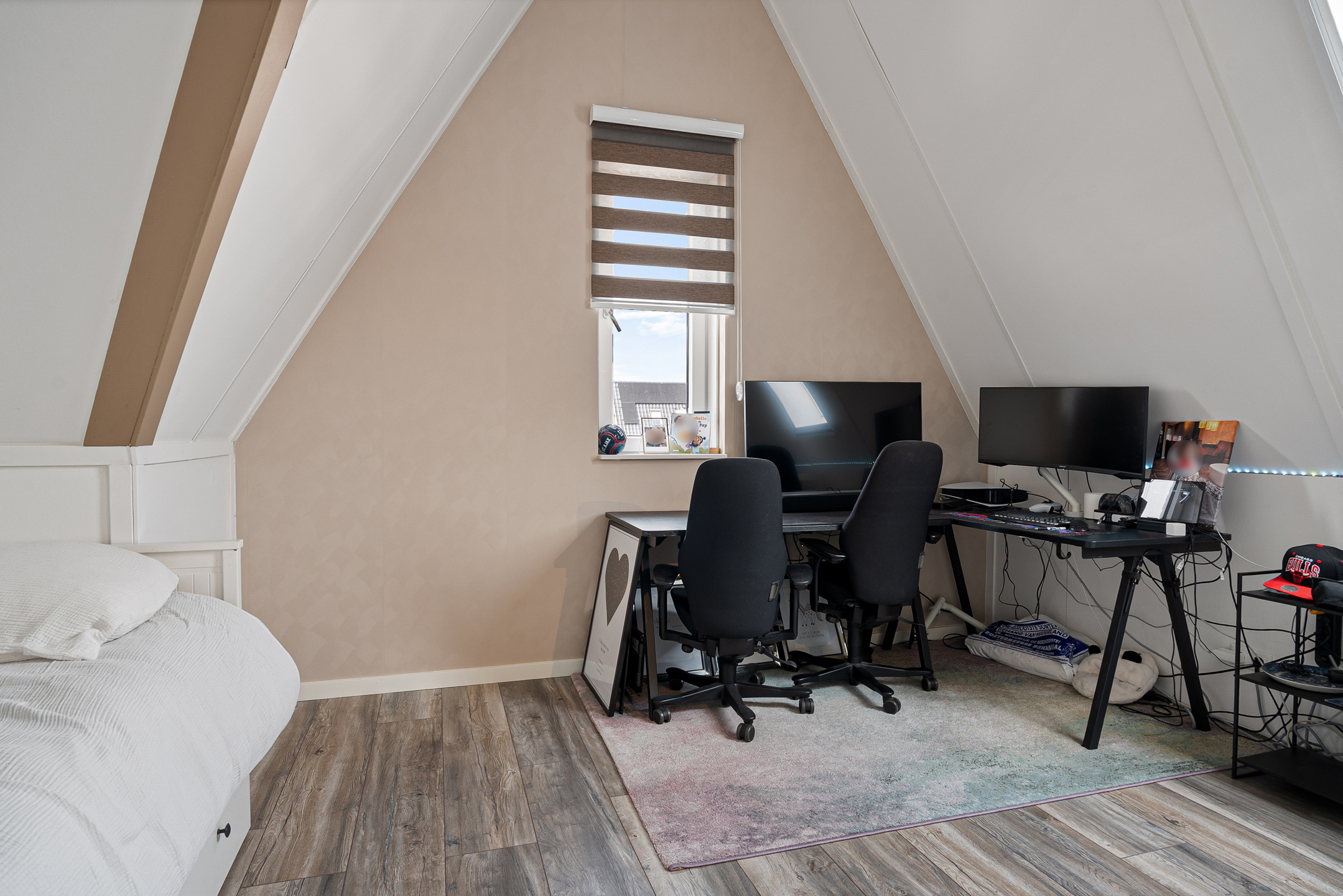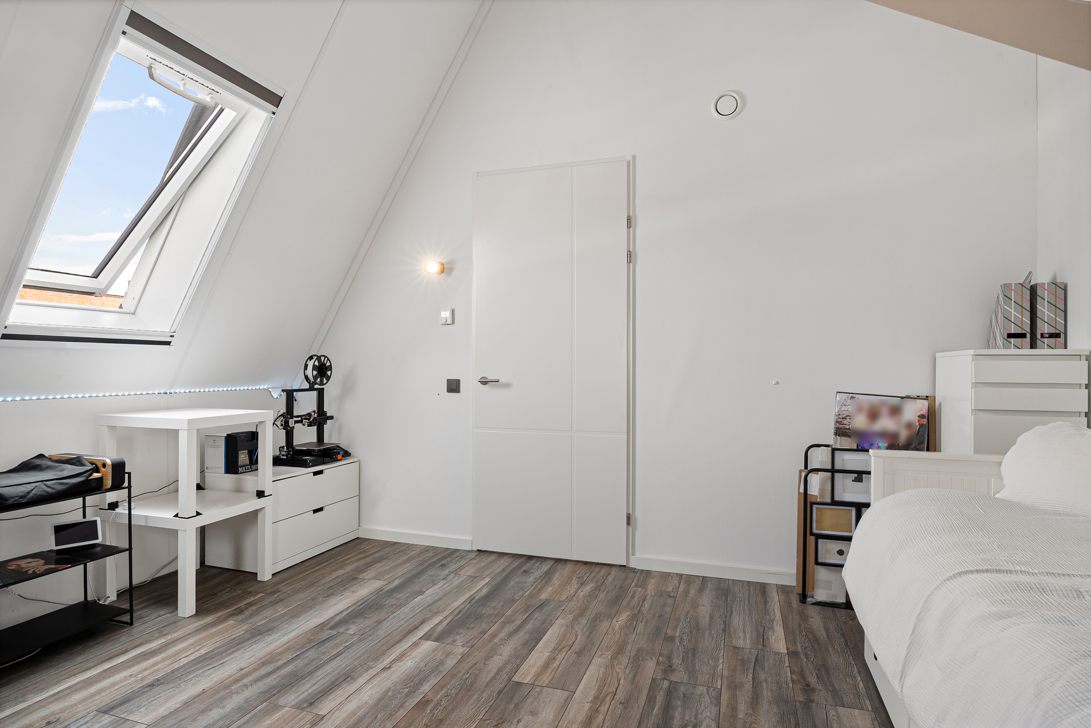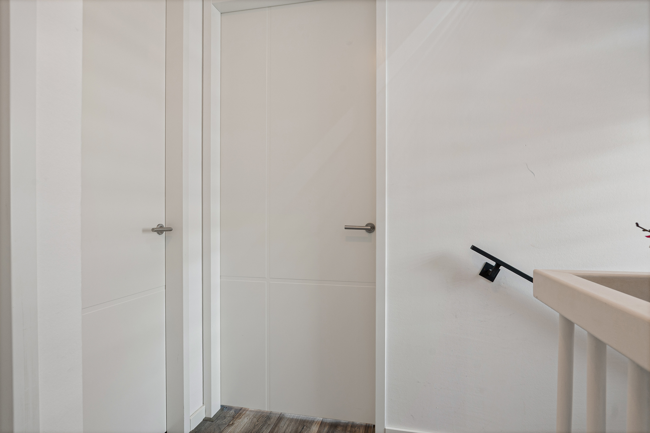 De tweede verdieping biedt nog eens twee slaapkamers en extra bergruimte. Deze kamers zijn perfect als kinder-, werk- of hobbykamer. Iedere kamer in de woning is tevens voorzien van luxe deuren. Verder vind je op deze verdieping ook de opstelplaats voor de wasapparatuur.