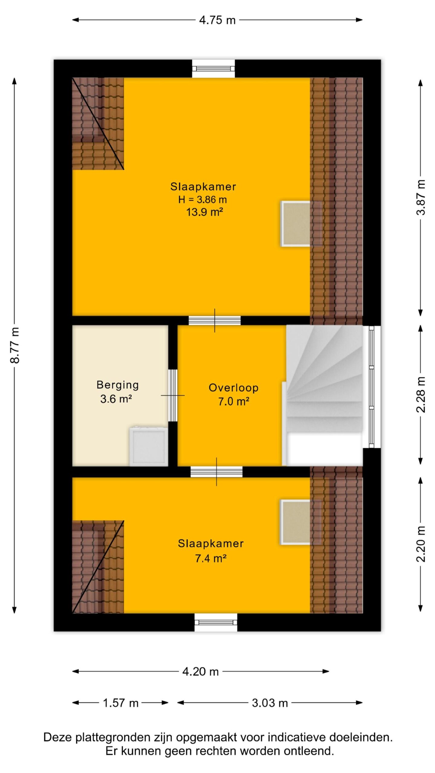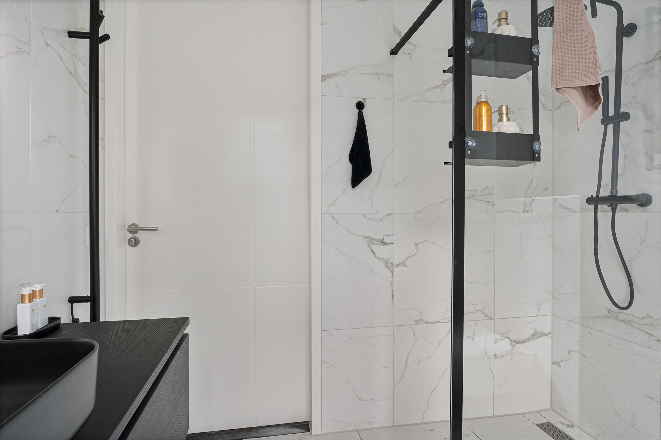 Op deze verdieping vind je drie slaapkamers en de badkamer. De slaapkamers zijn goed van formaat en praktisch in te delen, ideaal voor een gezin of om een werkplek te creëren. De badkamer is modern afgewerkt en voorzien van een inloopdouche, toilet en een stijlvol wastafelmeubel.