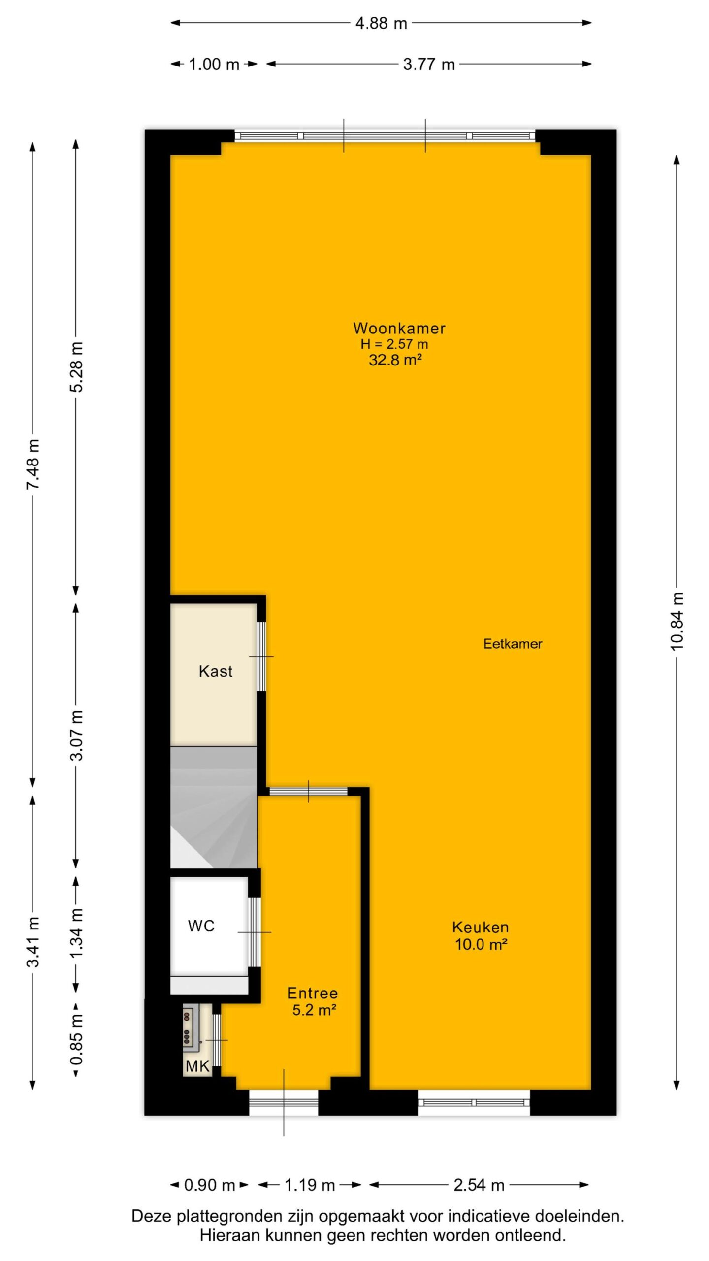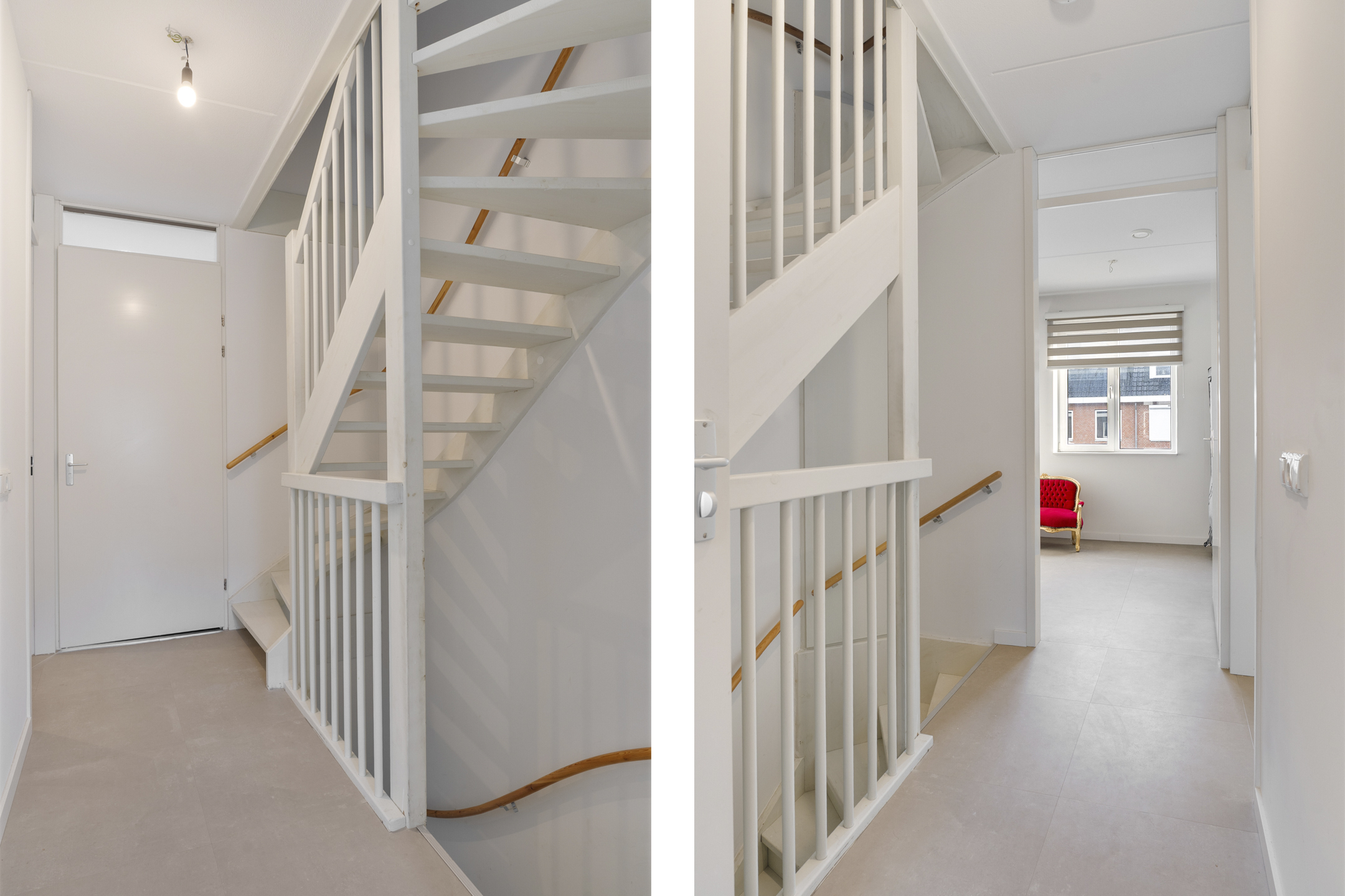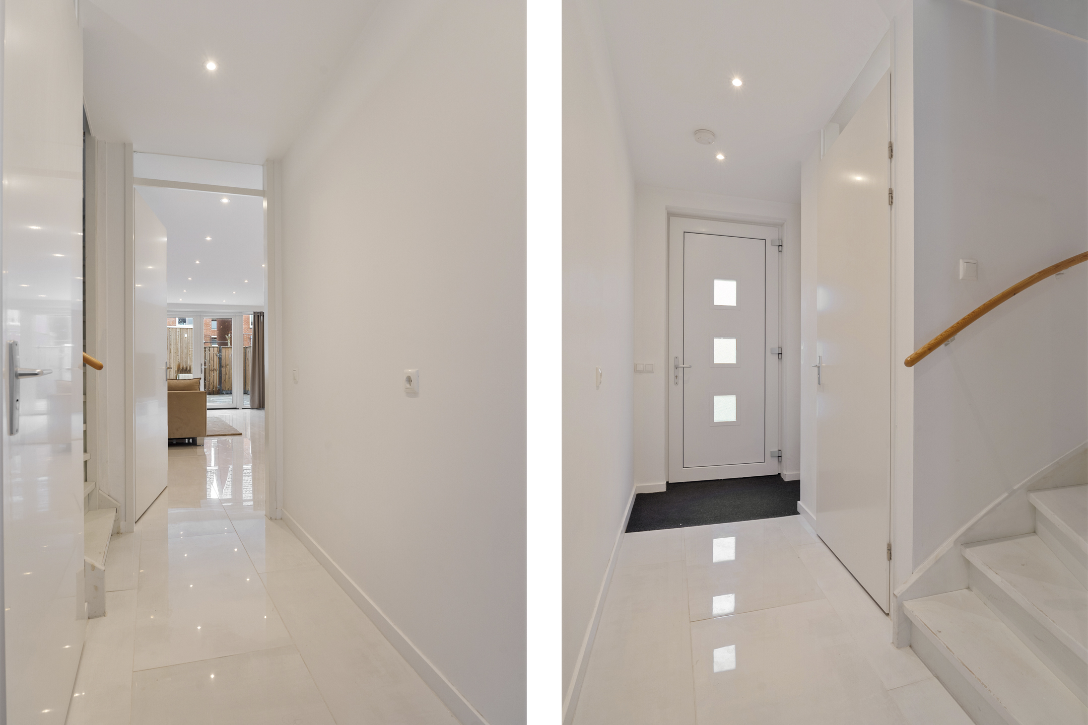 Bij binnenkomst stap je de ruime entreehal binnen, met toegang tot het separaat toilet, de trap naar de eerste verdieping, en de lichte woon-/eetkamer. De uitgebouwde woonkamer straalt ruimte en licht uit, met een lichte stenen vloer incl. vloerverwarming en een handige vaste kast waarin de warmtepomp is geplaatst.