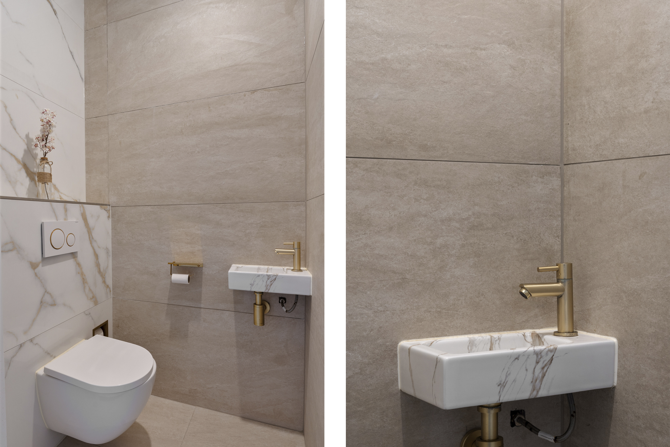 De overloop geeft toegang tot drie ruime slaapkamers en de badkamer. Aan de voorzijde vind je de hoofdslaapkamer en de moderne badkamer, die is afgewerkt met fraai tegelwerk en voorzien van een regendouche met losse handdouche, zwevend toilet en een wastafelmeubel met wasbak.