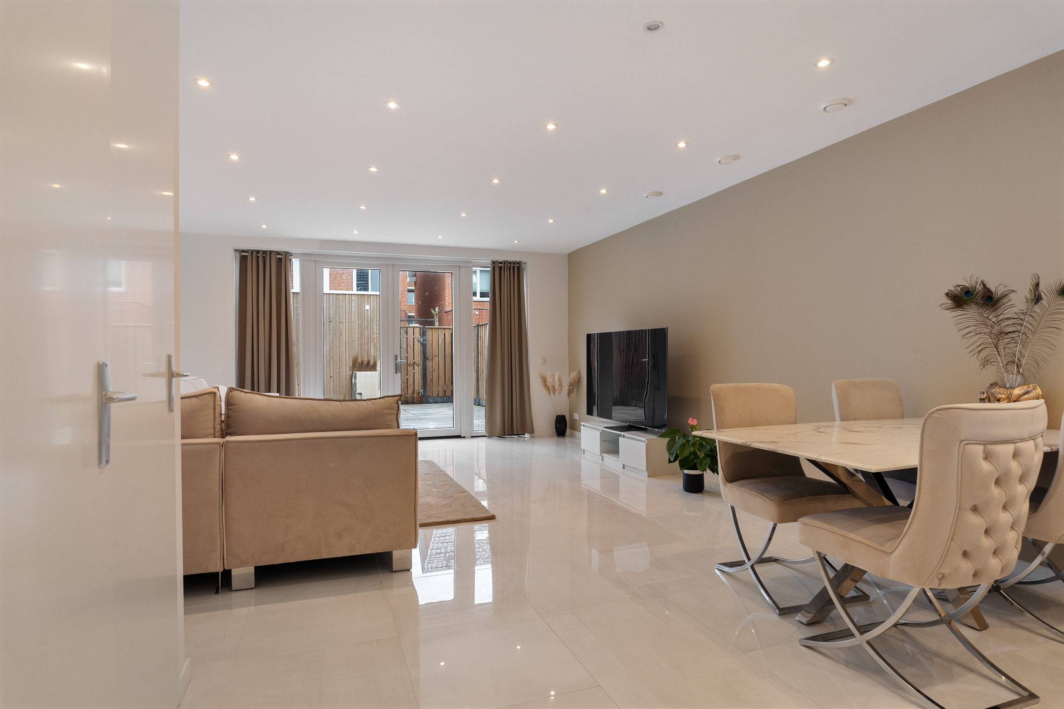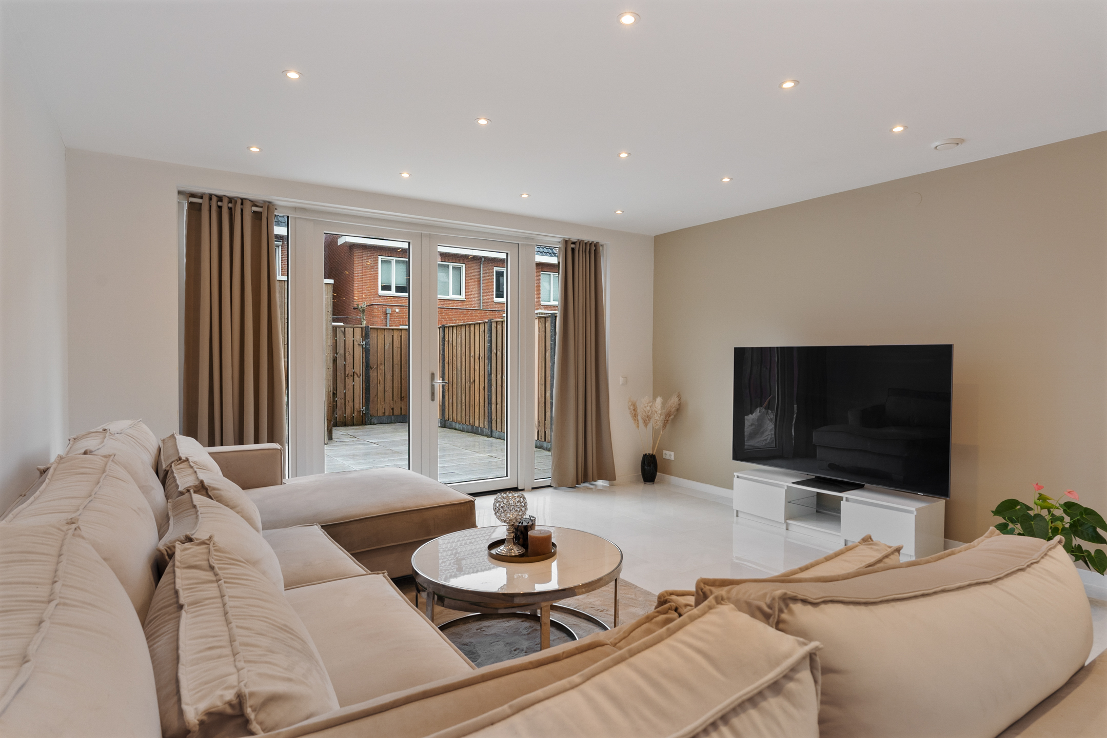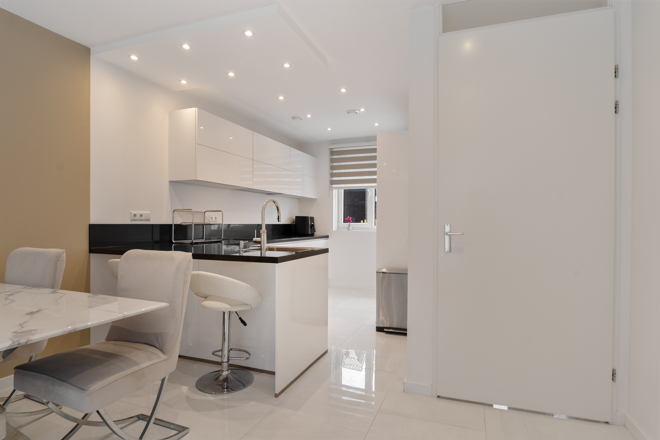 + mooi verlaagd plafond in de huiskamer met spotjes
