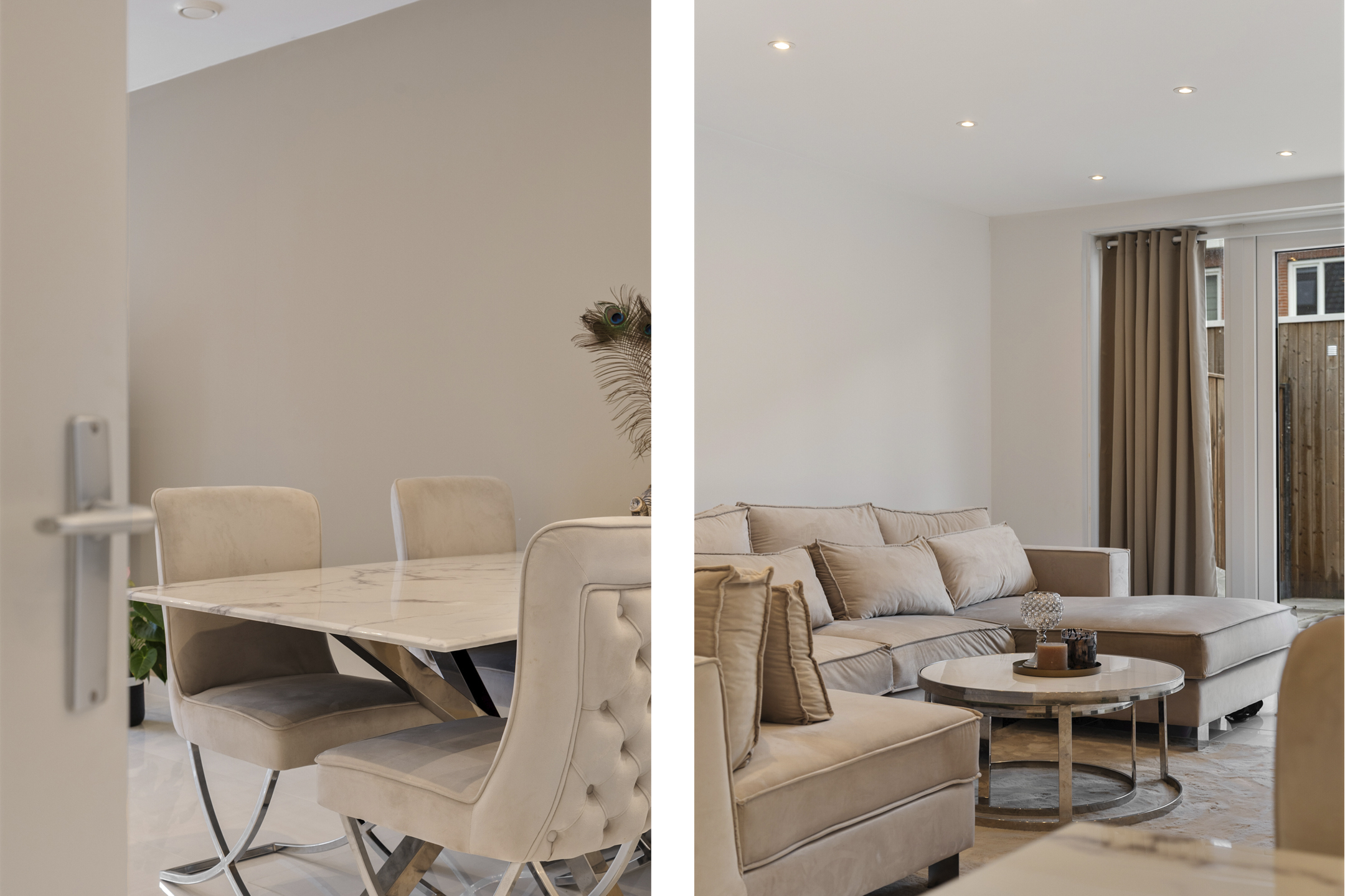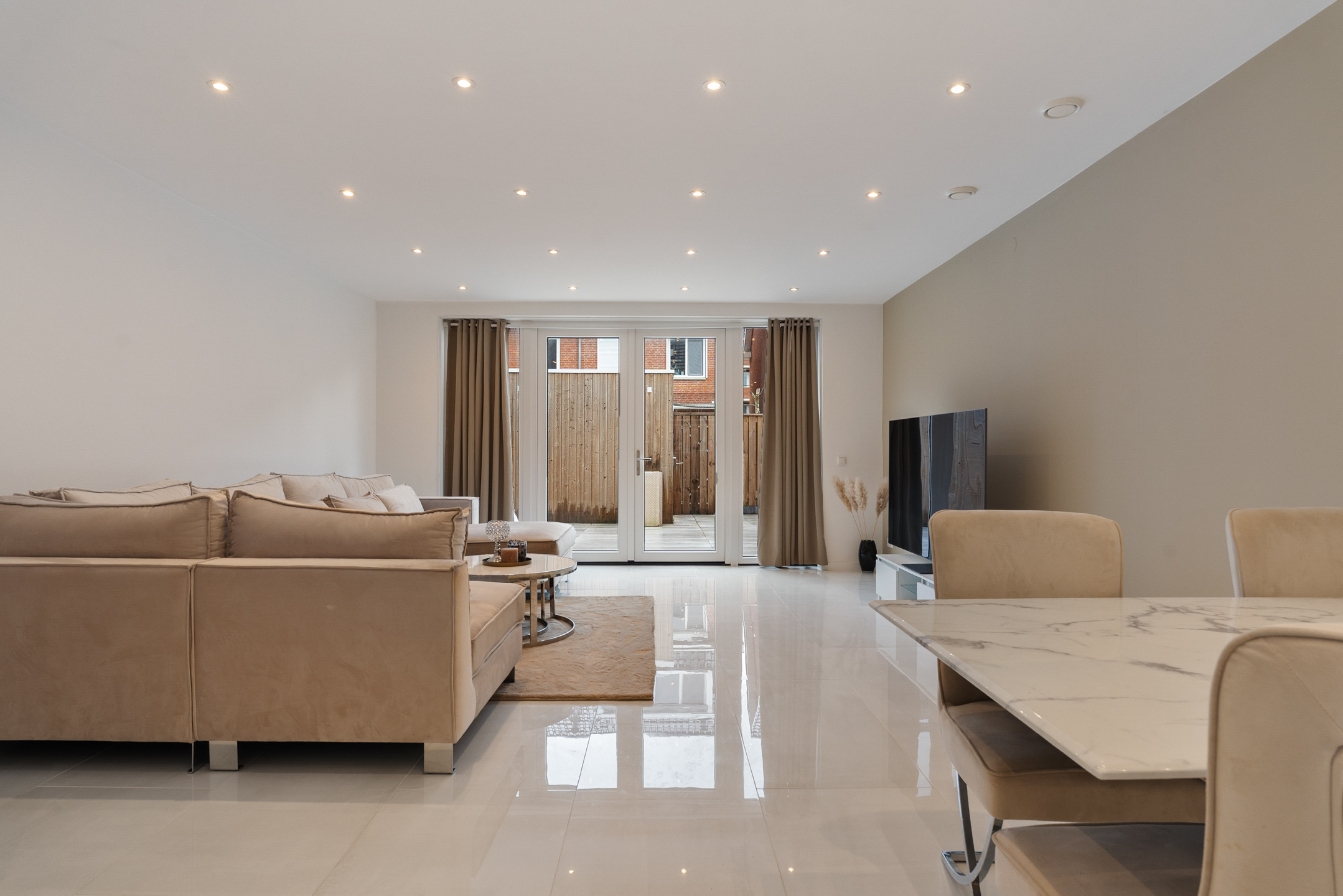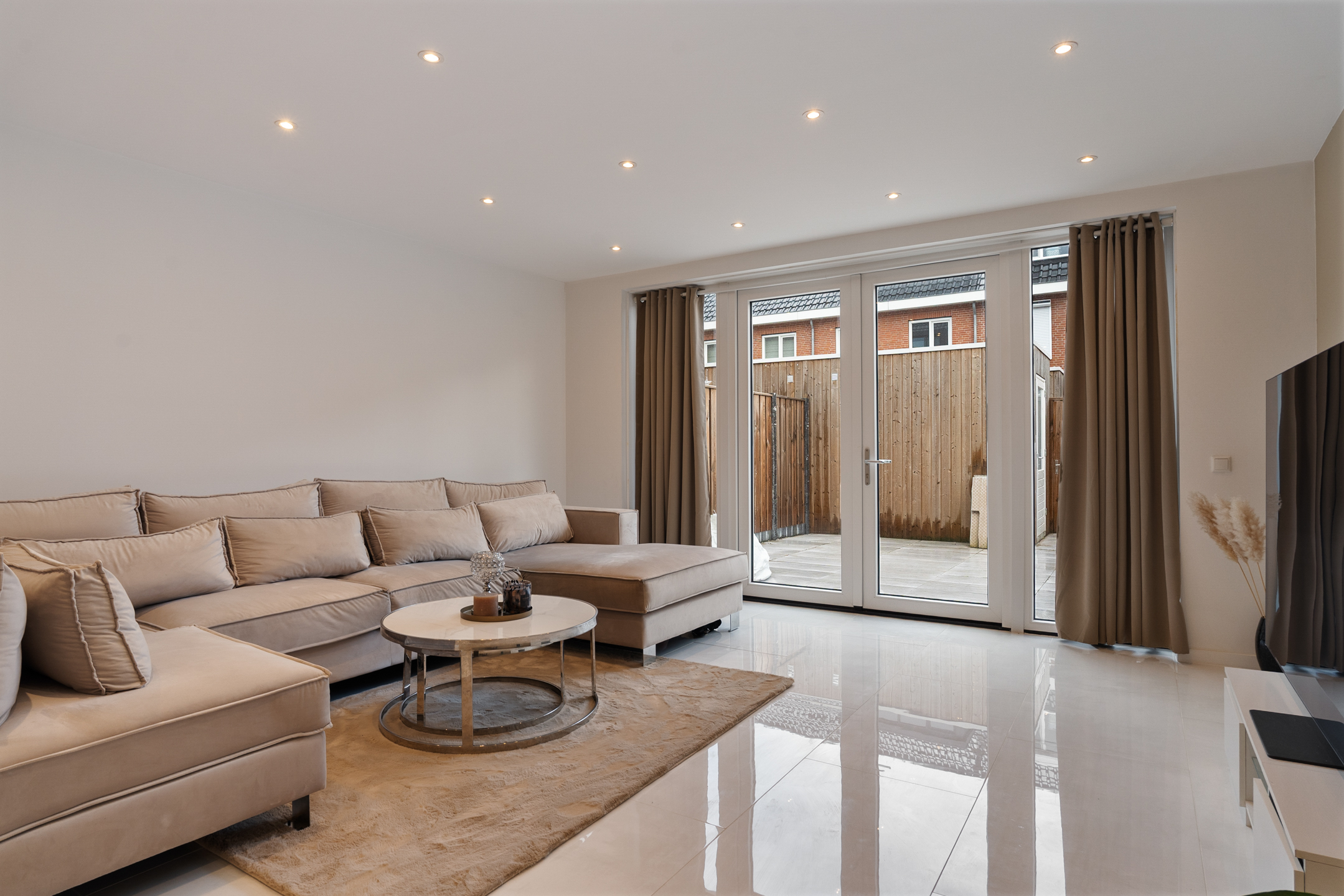+ mooi verlaagd plafond in de huiskamer met spotjes