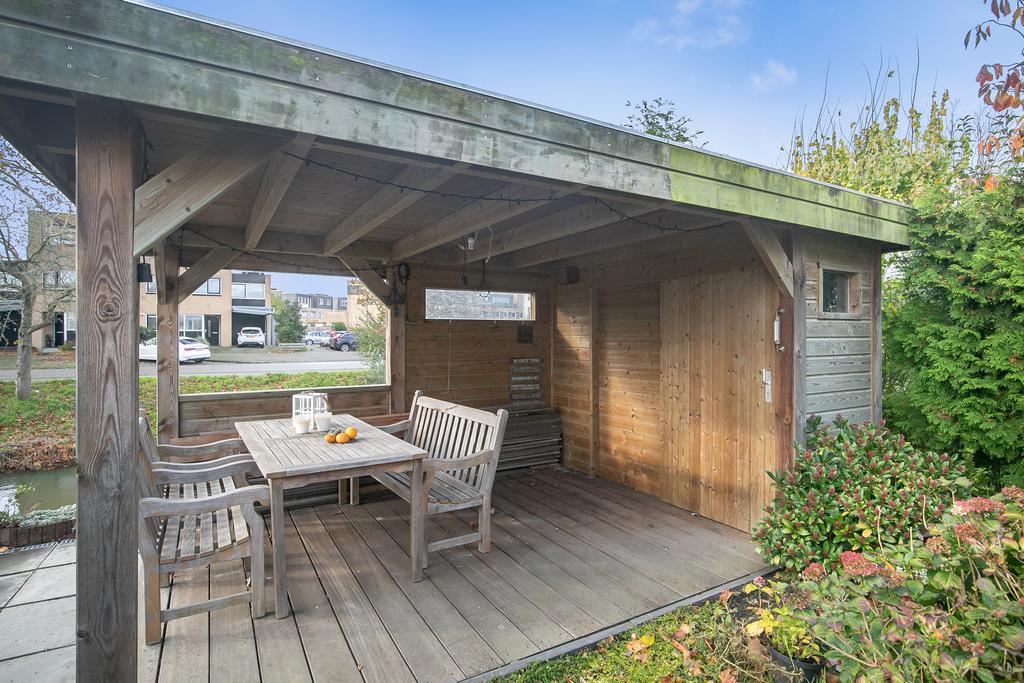 Vanuit de woonkamer is er middels openslaande deuren toegang tot de tuin. De tuin heeft een overkapping, met bergruimte, waar je heerlijk kunt vertoeven tijdens verschillende seizoenen. De ligging van de tuin is op het zuidwesten, ideaal om te genieten van de zon.