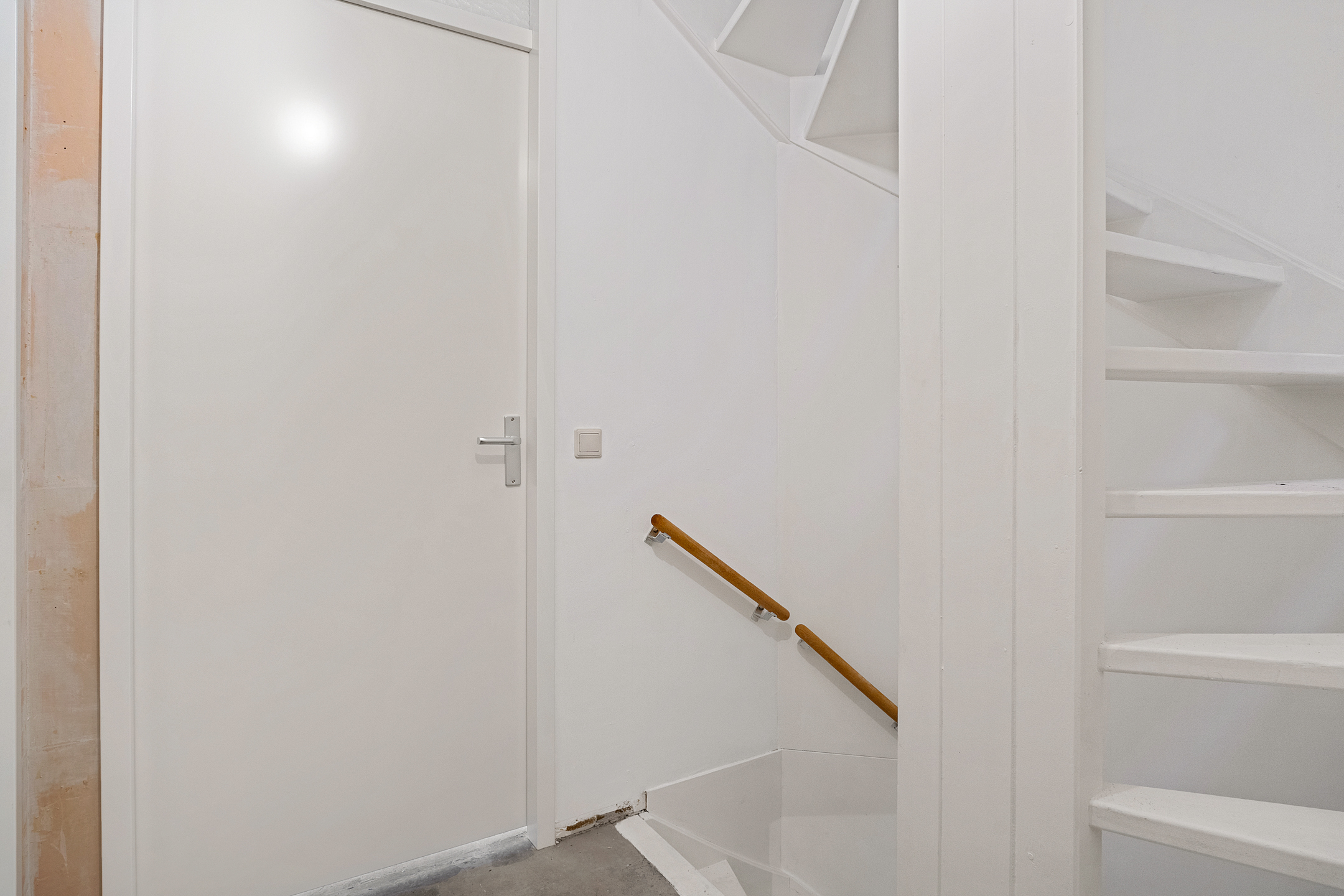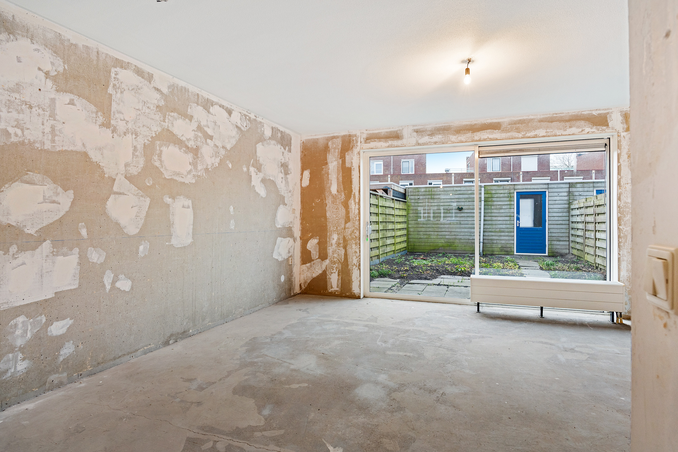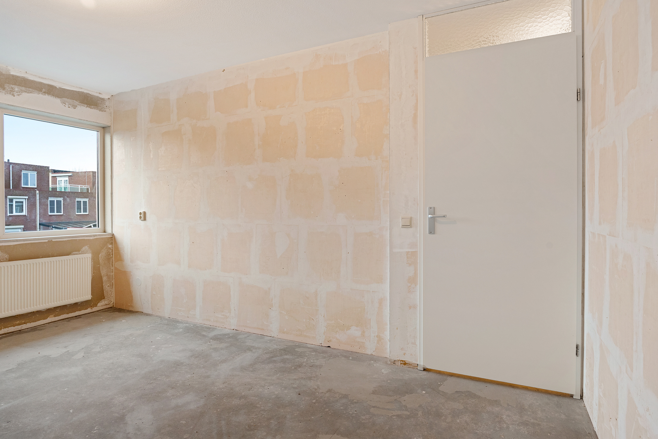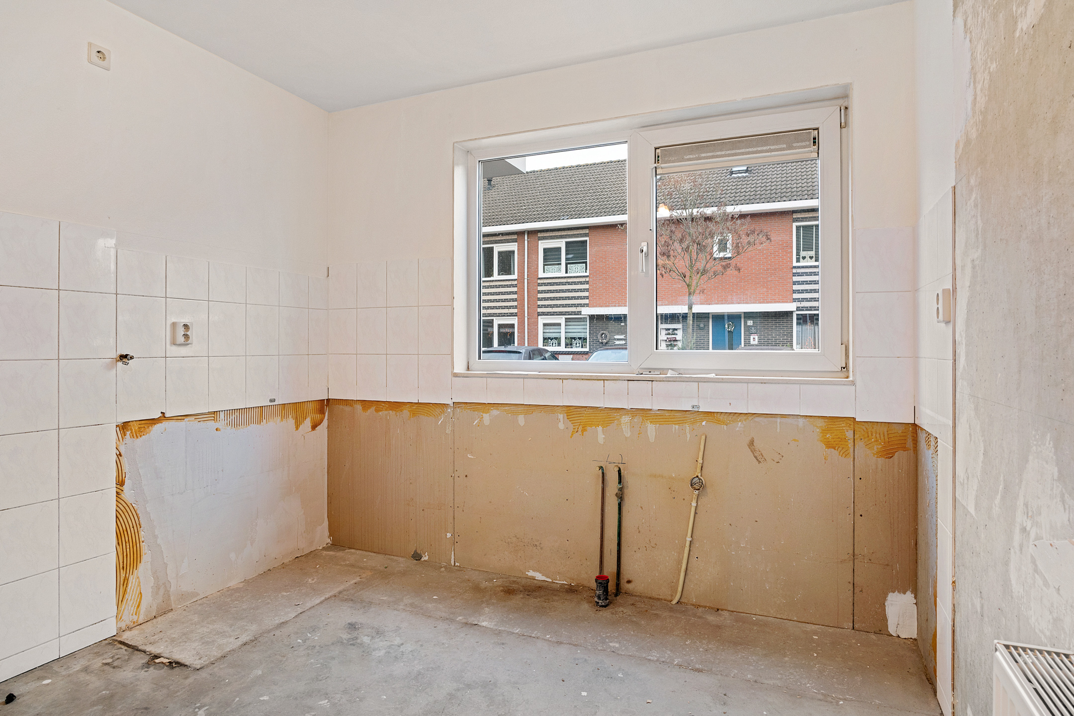 Via de entree betreed je de hal met meterkast en een separaat toilet met fonteintje. De woonkamer is heerlijk licht dankzij de grote schuifpui aan de achterzijde en het extra zijraam, wat de hoekligging extra benadrukt. De rechthoekige indeling zorgt voor volop mogelijkheden om een comfortabele zit- en eetruimte te creëren. Aan de voorzijde van de woning bevindt zich de ruimte voor de keuken; er is momenteel geen keuken aanwezig, waardoor je alle vrijheid hebt om hier een keuken geheel naar eigen smaak en wensen te realiseren. De begane grond is casco opgeleverd en vormt daarmee een blanco basis voor het creëren van jouw ideale woonomgeving.