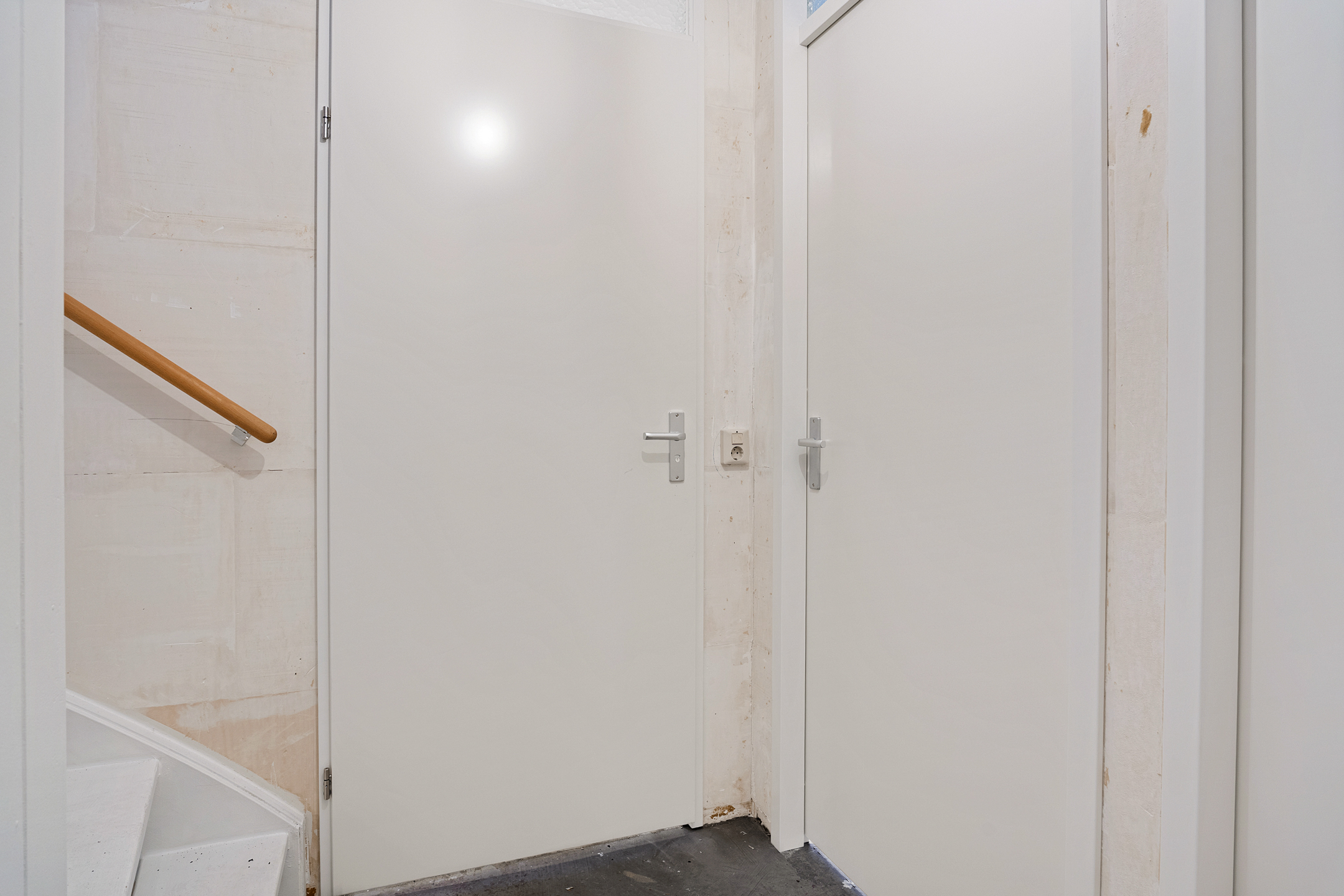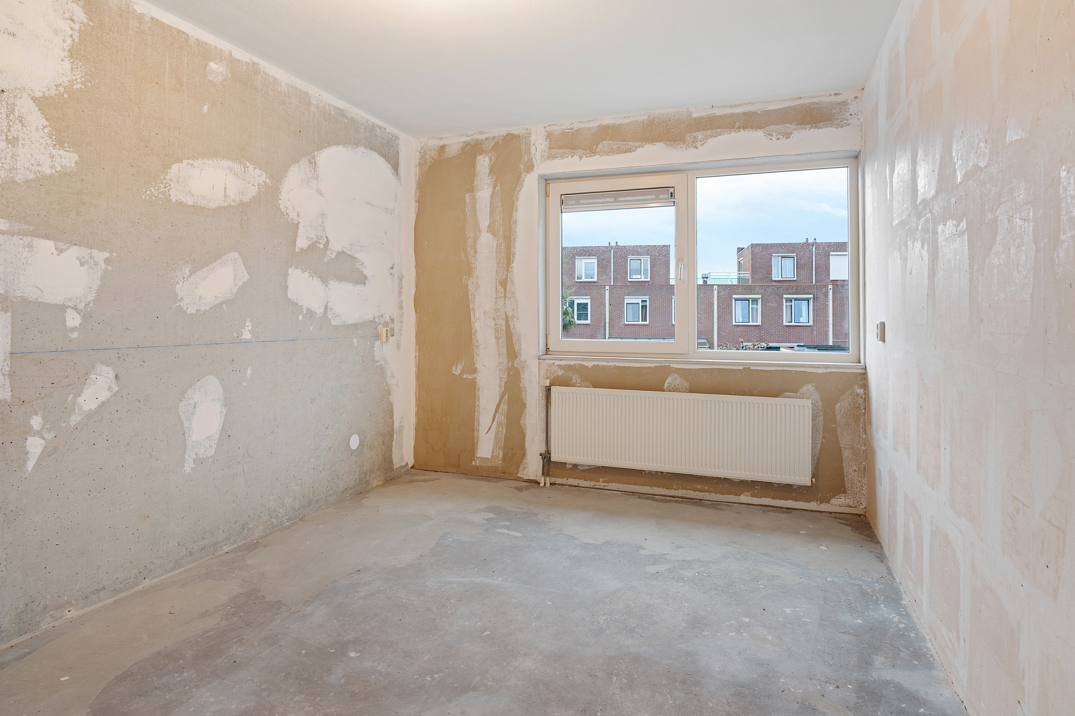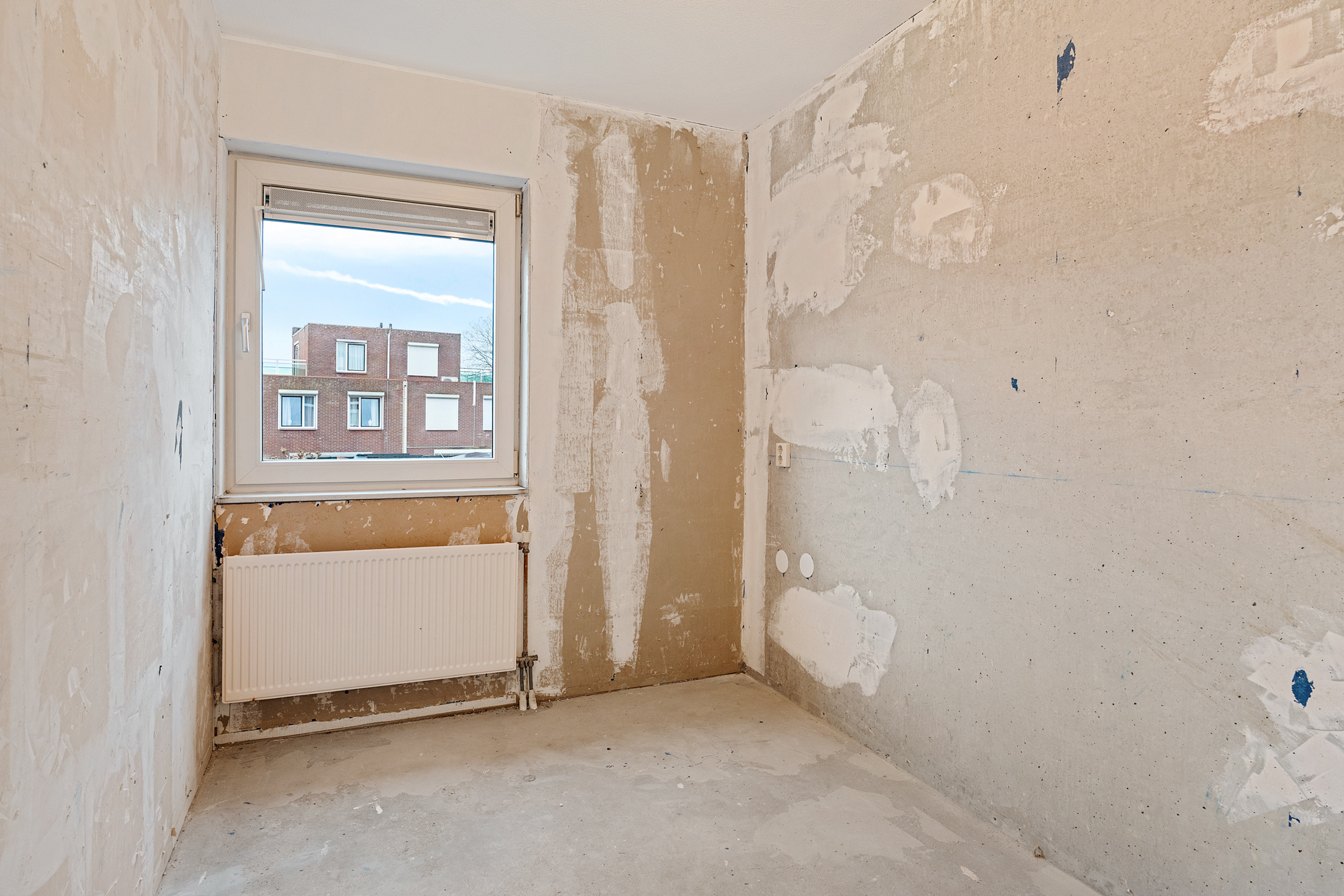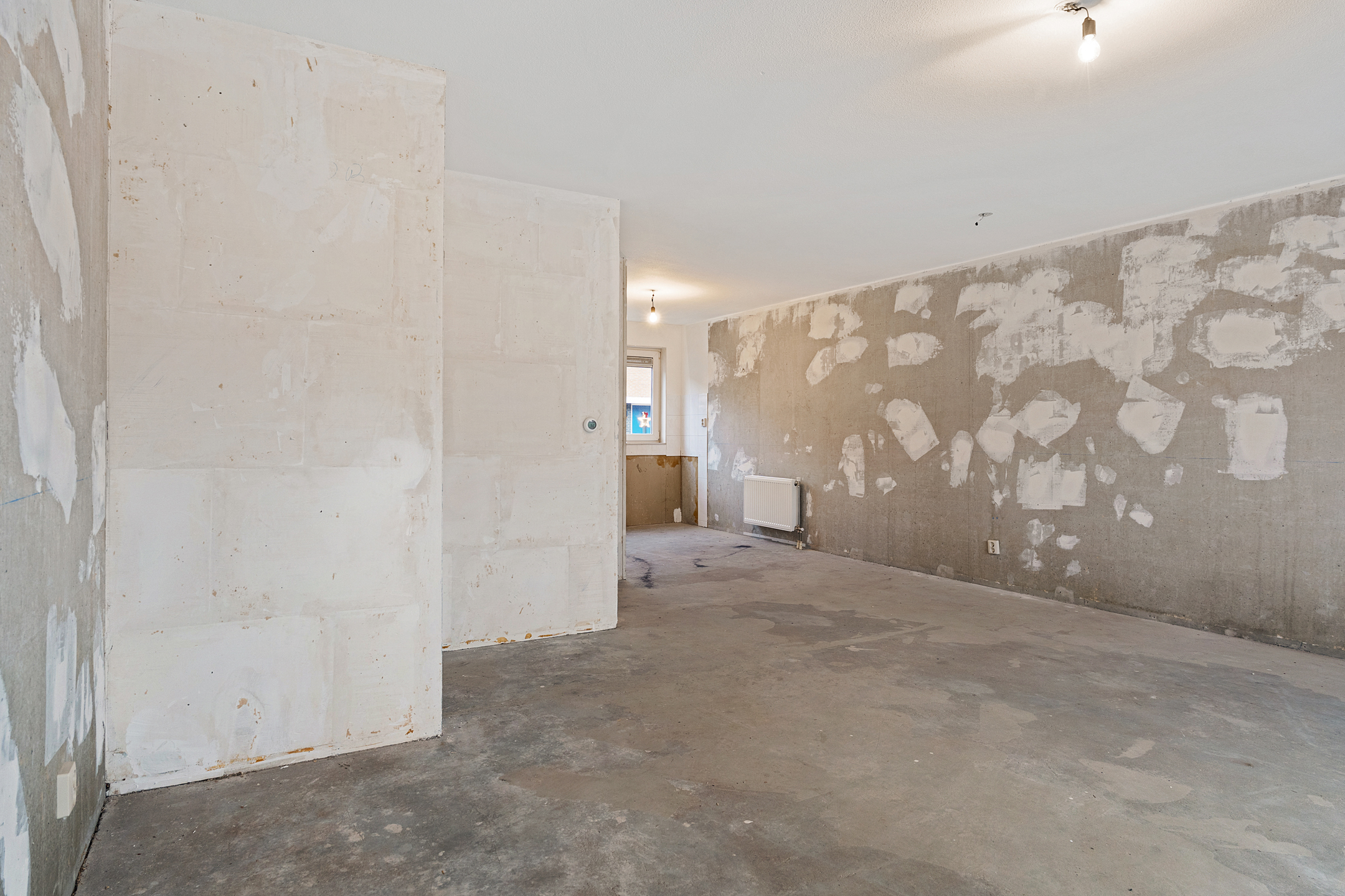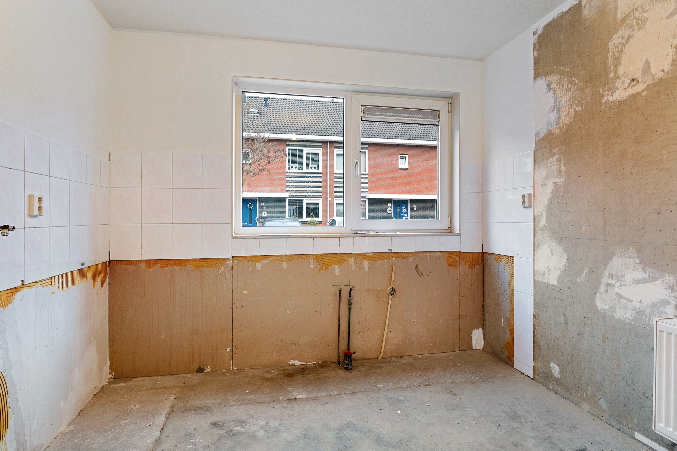 Via de entree betreed je de hal met meterkast en een separaat toilet met fonteintje. De woonkamer is heerlijk licht dankzij de grote schuifpui aan de achterzijde en het extra zijraam, wat de hoekligging extra benadrukt. De rechthoekige indeling zorgt voor volop mogelijkheden om een comfortabele zit- en eetruimte te creëren. Aan de voorzijde van de woning bevindt zich de ruimte voor de keuken; er is momenteel geen keuken aanwezig, waardoor je alle vrijheid hebt om hier een keuken geheel naar eigen smaak en wensen te realiseren. De begane grond is casco opgeleverd en vormt daarmee een blanco basis voor het creëren van jouw ideale woonomgeving.