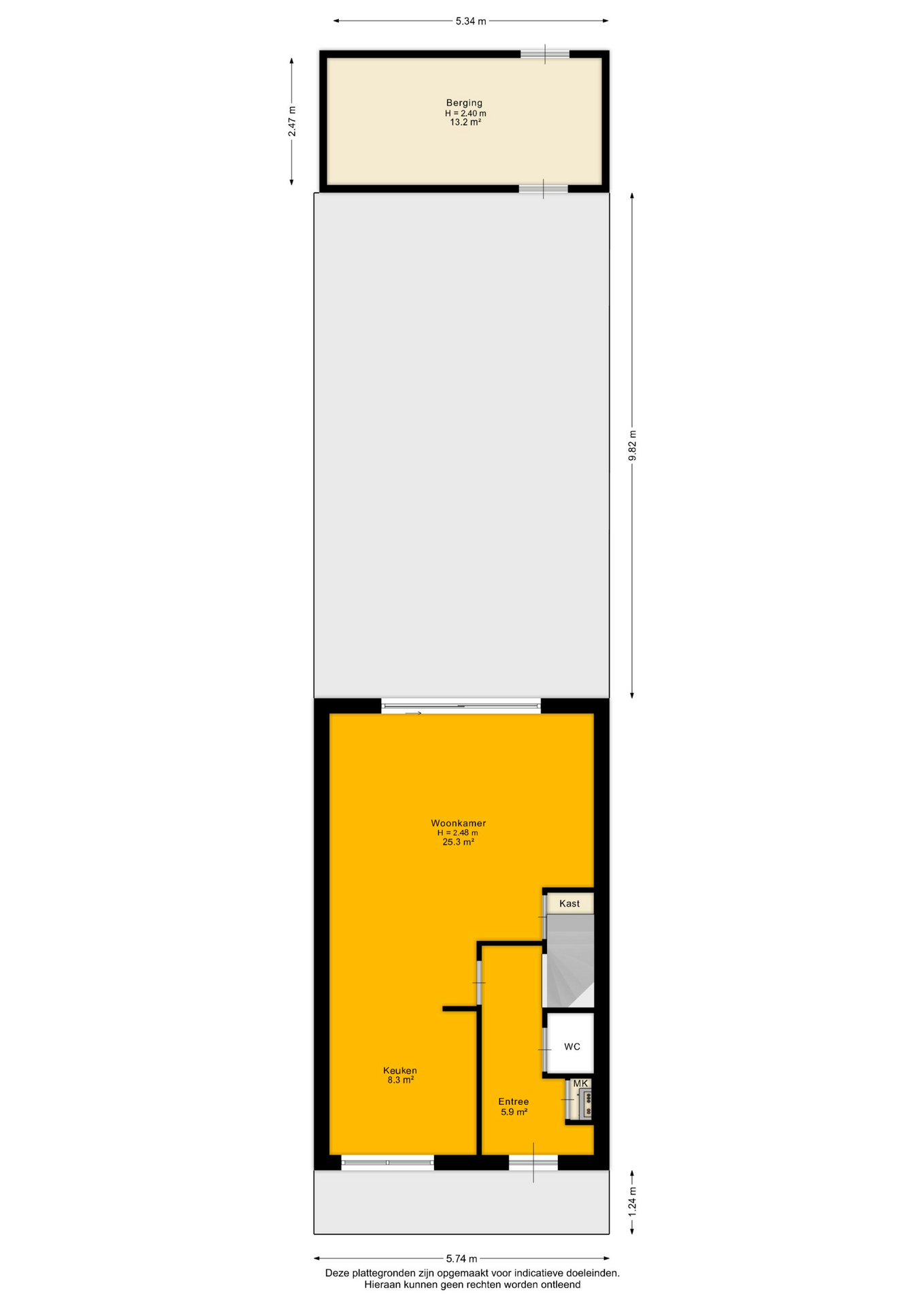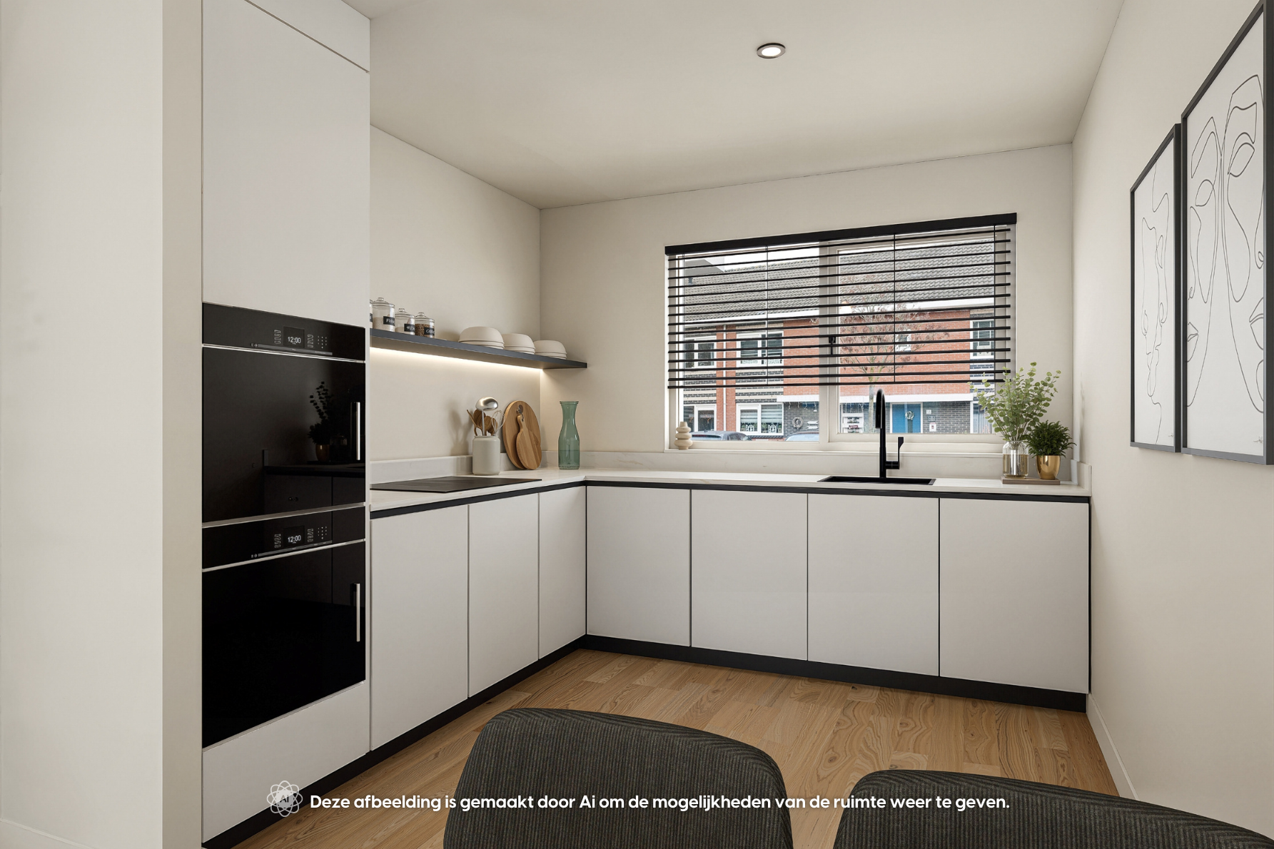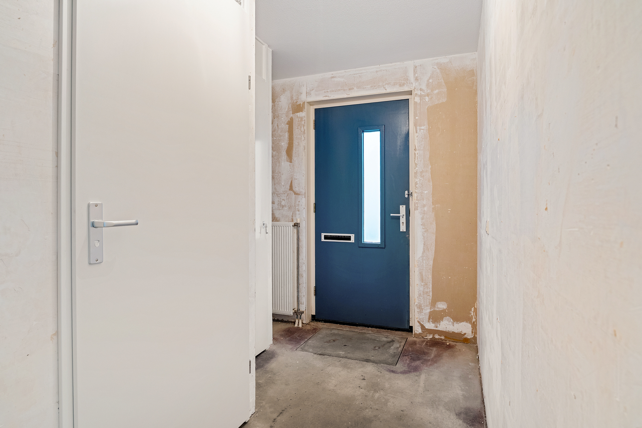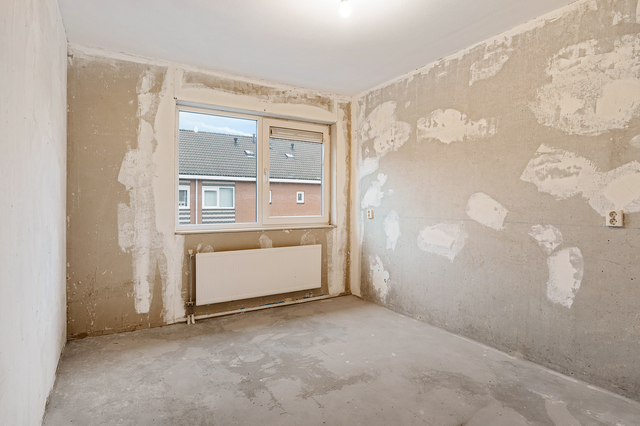 Via de entree betreed je de hal met meterkast en een separaat toilet met fonteintje. De woonkamer is heerlijk licht dankzij de grote schuifpui aan de achterzijde en het extra zijraam, wat de hoekligging extra benadrukt. De rechthoekige indeling zorgt voor volop mogelijkheden om een comfortabele zit- en eetruimte te creëren. Aan de voorzijde van de woning bevindt zich de ruimte voor de keuken; er is momenteel geen keuken aanwezig, waardoor je alle vrijheid hebt om hier een keuken geheel naar eigen smaak en wensen te realiseren. De begane grond is casco opgeleverd en vormt daarmee een blanco basis voor het creëren van jouw ideale woonomgeving.