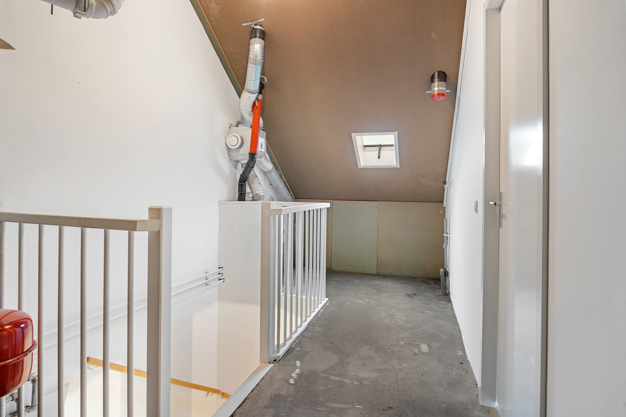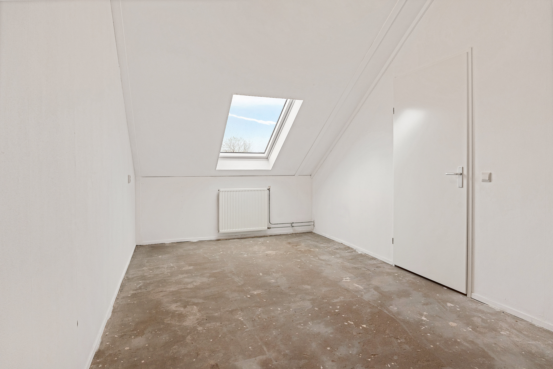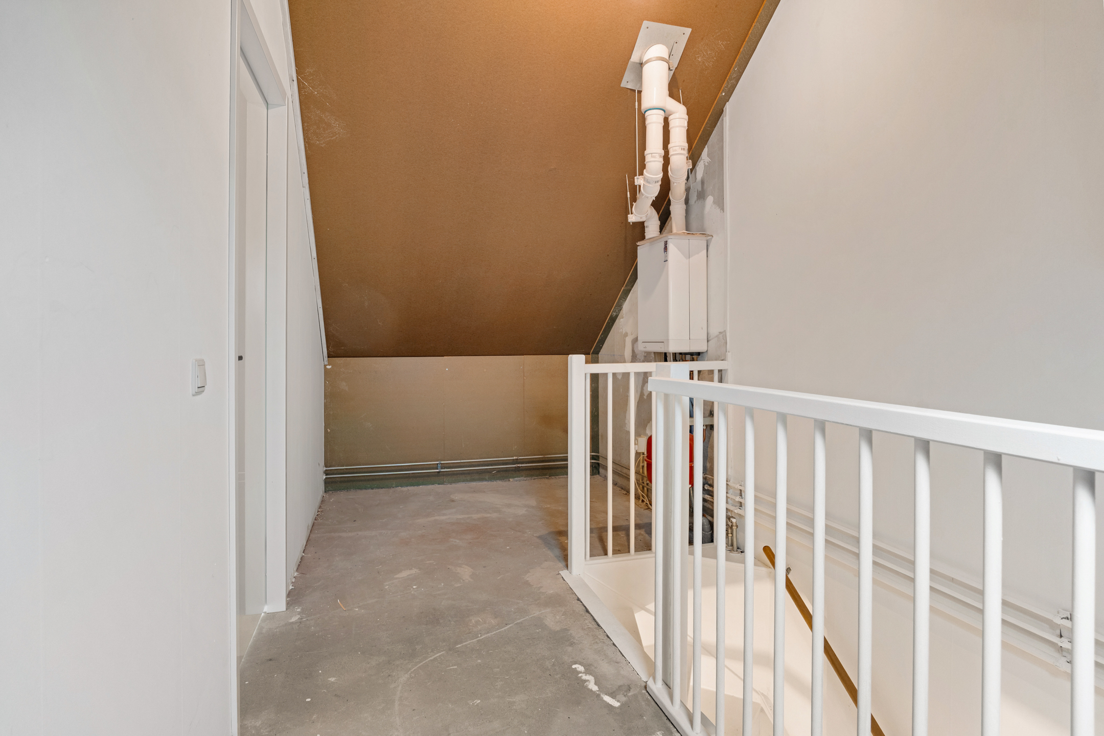 De zolderverdieping is via een vaste trap toegankelijk en kenmerkt zich door de royale opzet en veelzijdige indeling. Hier is een volwaardige vierde kamer aanwezig, ideaal als extra slaapkamer, thuiswerkplek of hobbyruimte. Het dakraam zorgt voor prettige lichtinval en achter de knieschotten is praktische bergruimte gecreëerd. Op de overloop bevinden zich de aansluitingen voor de wasmachine en de opstelling van de cv-installatie.