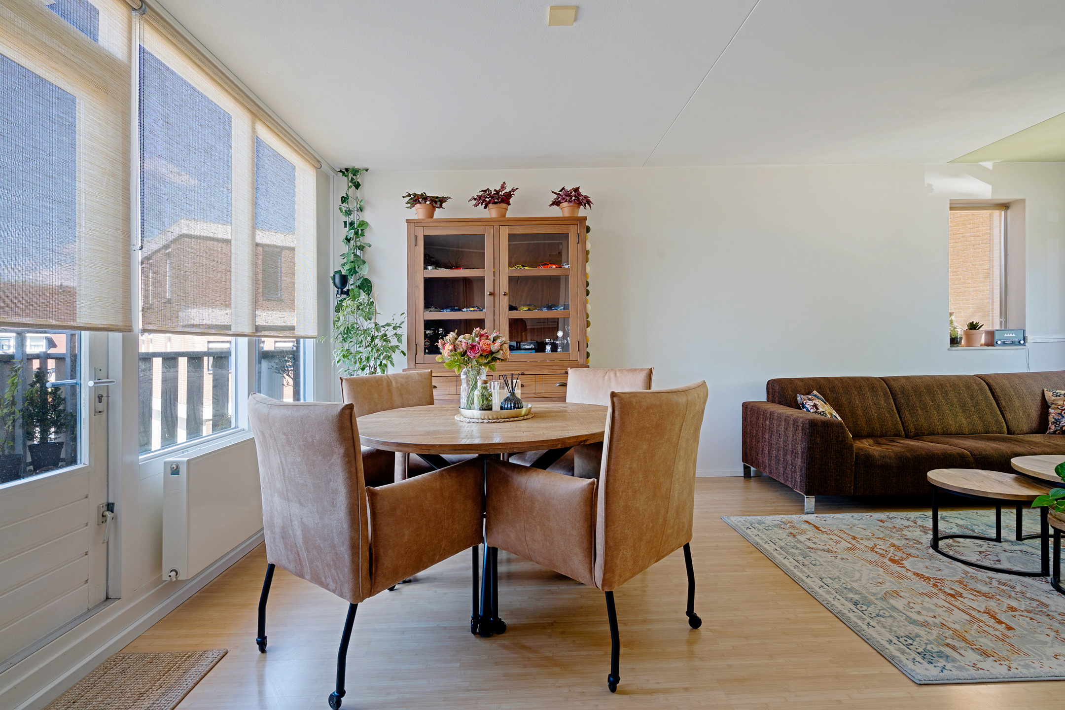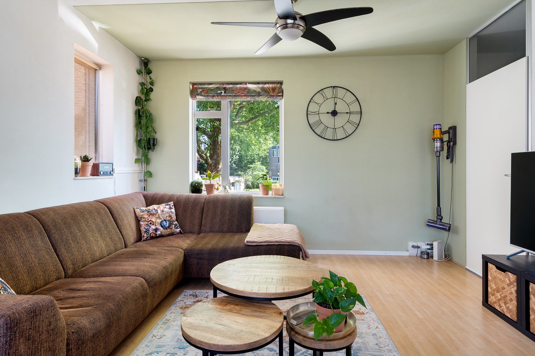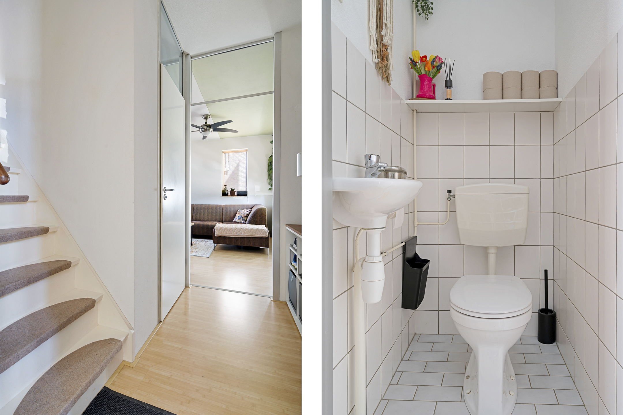 De grote ramen en slimme indeling geven de ruimte een open en uitnodigend karakter. Daarnaast beschik je hier over een diepe trapkast – handig voor extra opbergruimte.