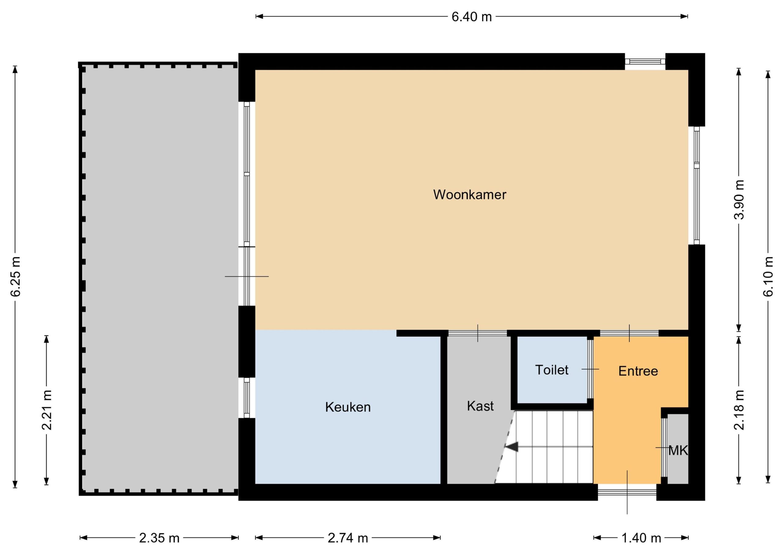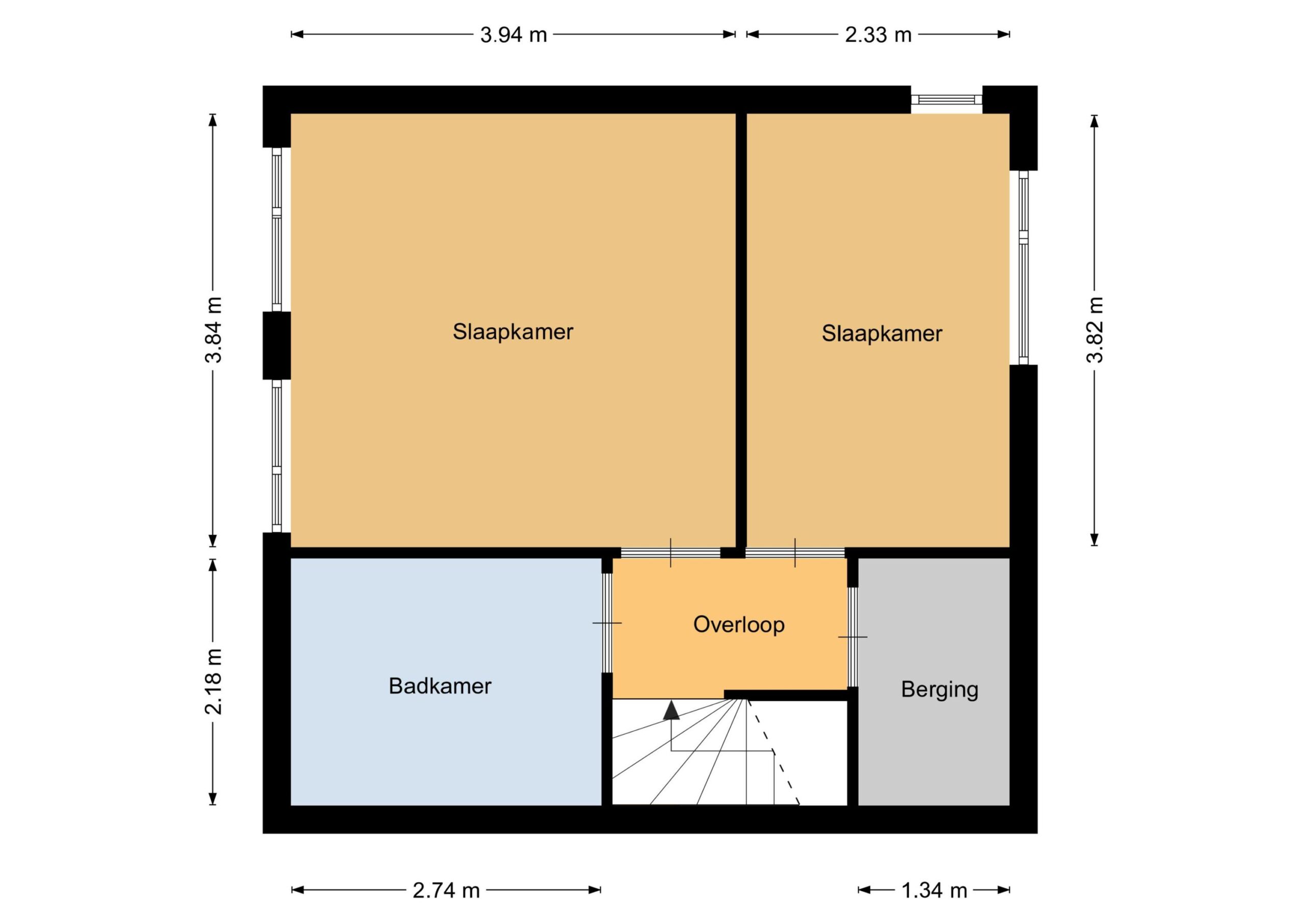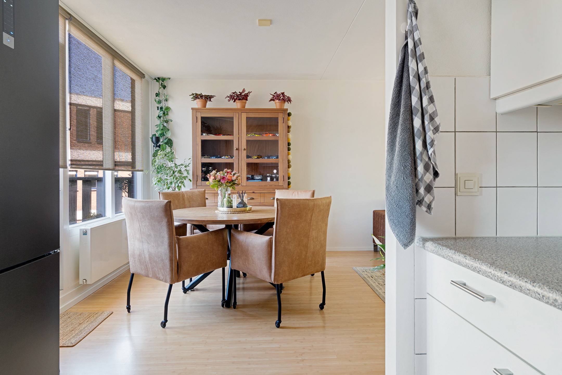De grote ramen en slimme indeling geven de ruimte een open en uitnodigend karakter. Daarnaast beschik je hier over een diepe trapkast – handig voor extra opbergruimte.