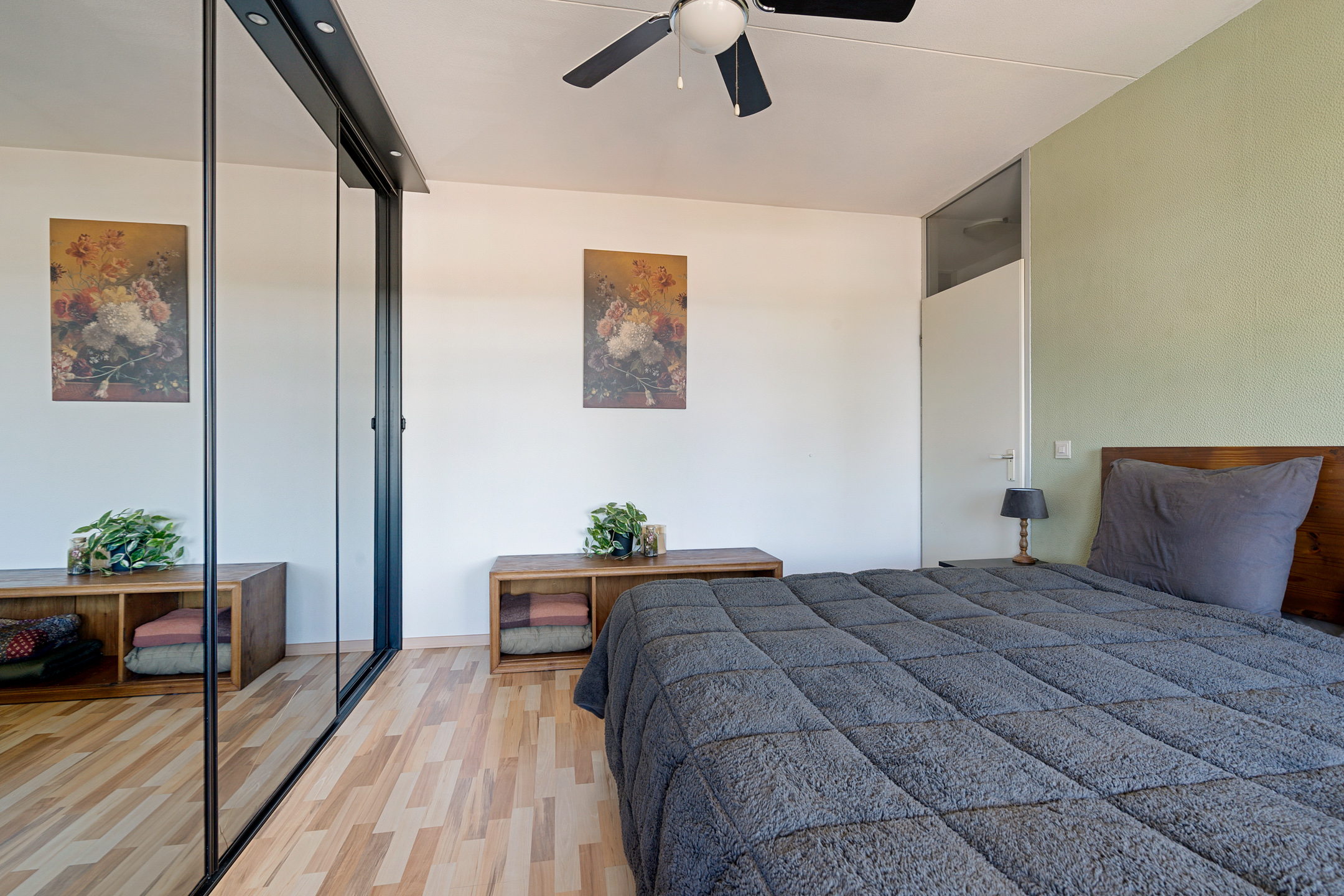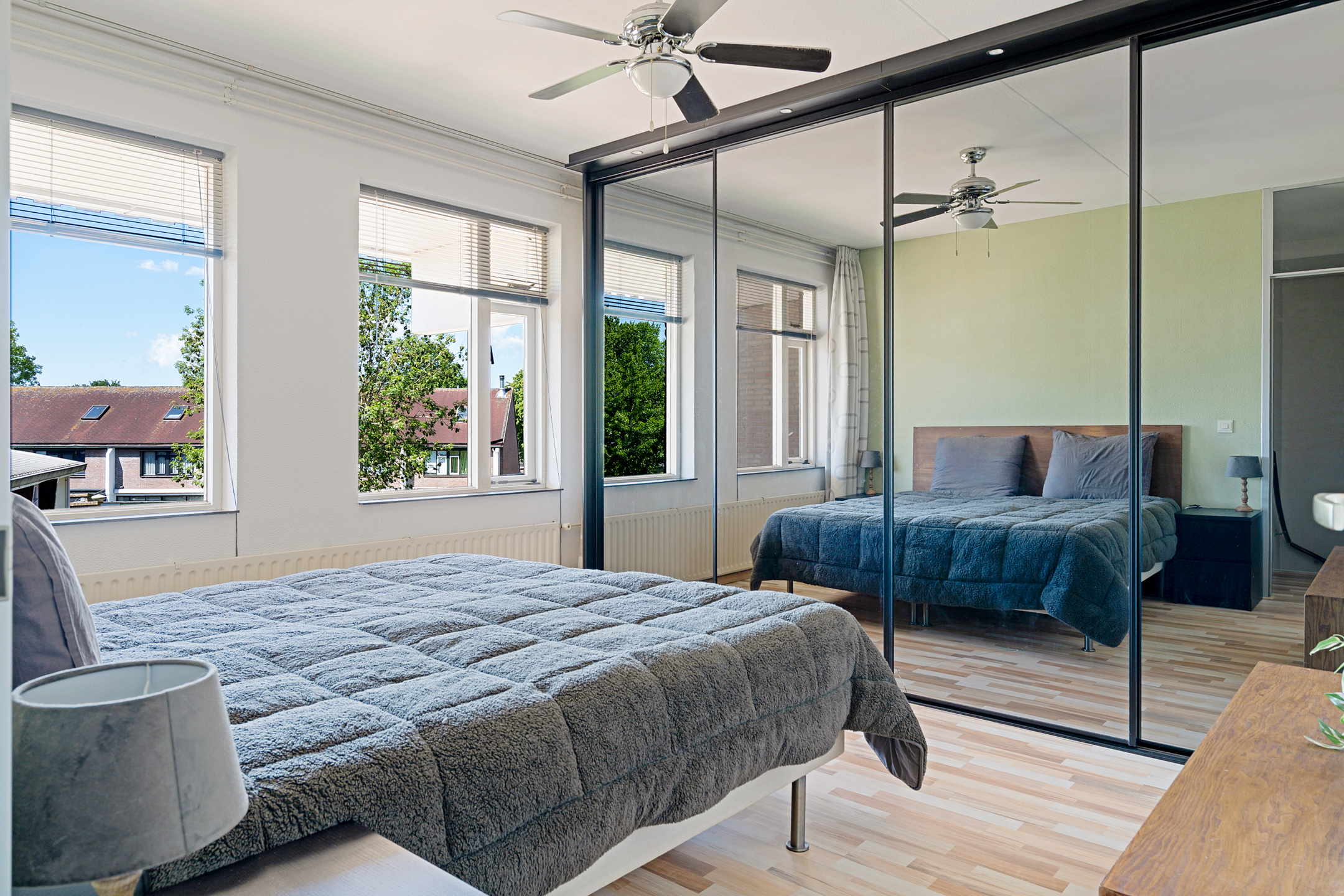 Op de tweede verdieping vind je een overloop met toegang tot de technische ruimte waar de cv-combiketel is geplaatst. Aan de achterzijde ligt de ruime hoofdslaapkamer, die rust en comfort biedt. Aan de voorzijde bevindt zich de tweede slaapkamer, uitstekend te gebruiken als werk-, logeer- of kinderkamer.
