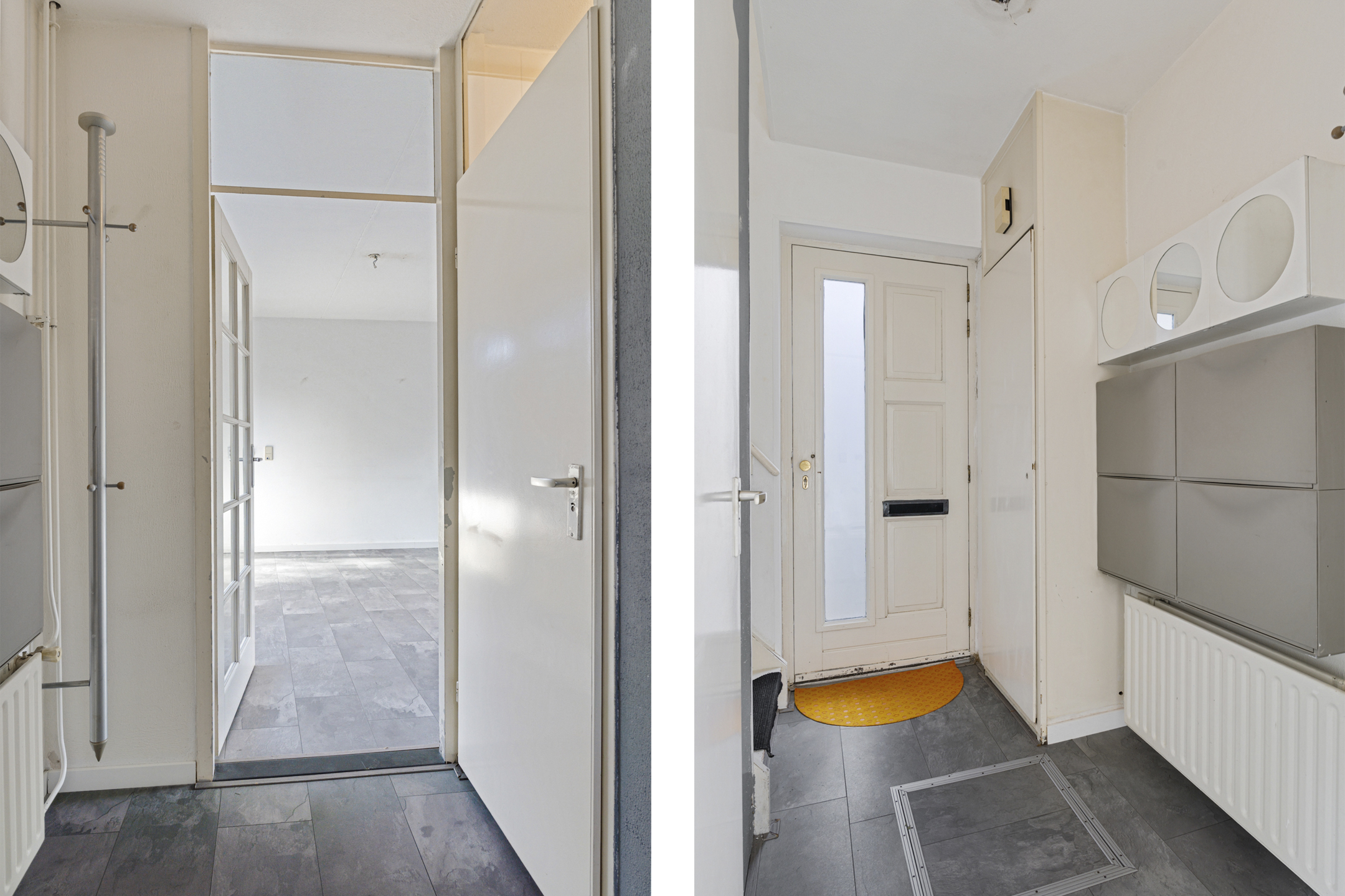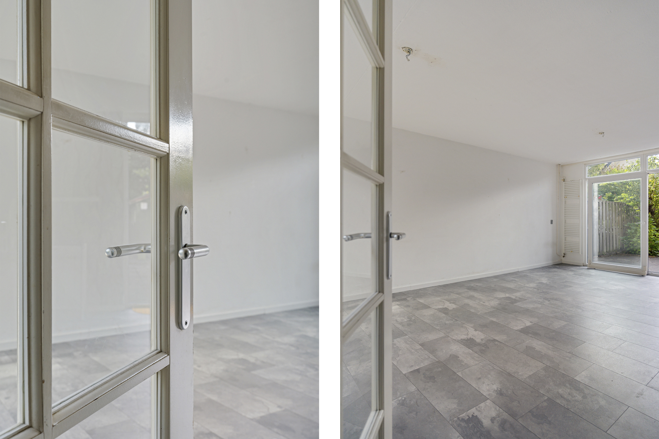 Je komt binnen via de entreehal met garderoberuimte, een vernieuwde meterkast en een keurig betegeld toilet met fonteintje. De royale doorzonwoonkamer is heerlijk licht door de grote raampartijen aan de voor- en achterzijde. Via de schuifpui stap je direct de zonnige achtertuin in.