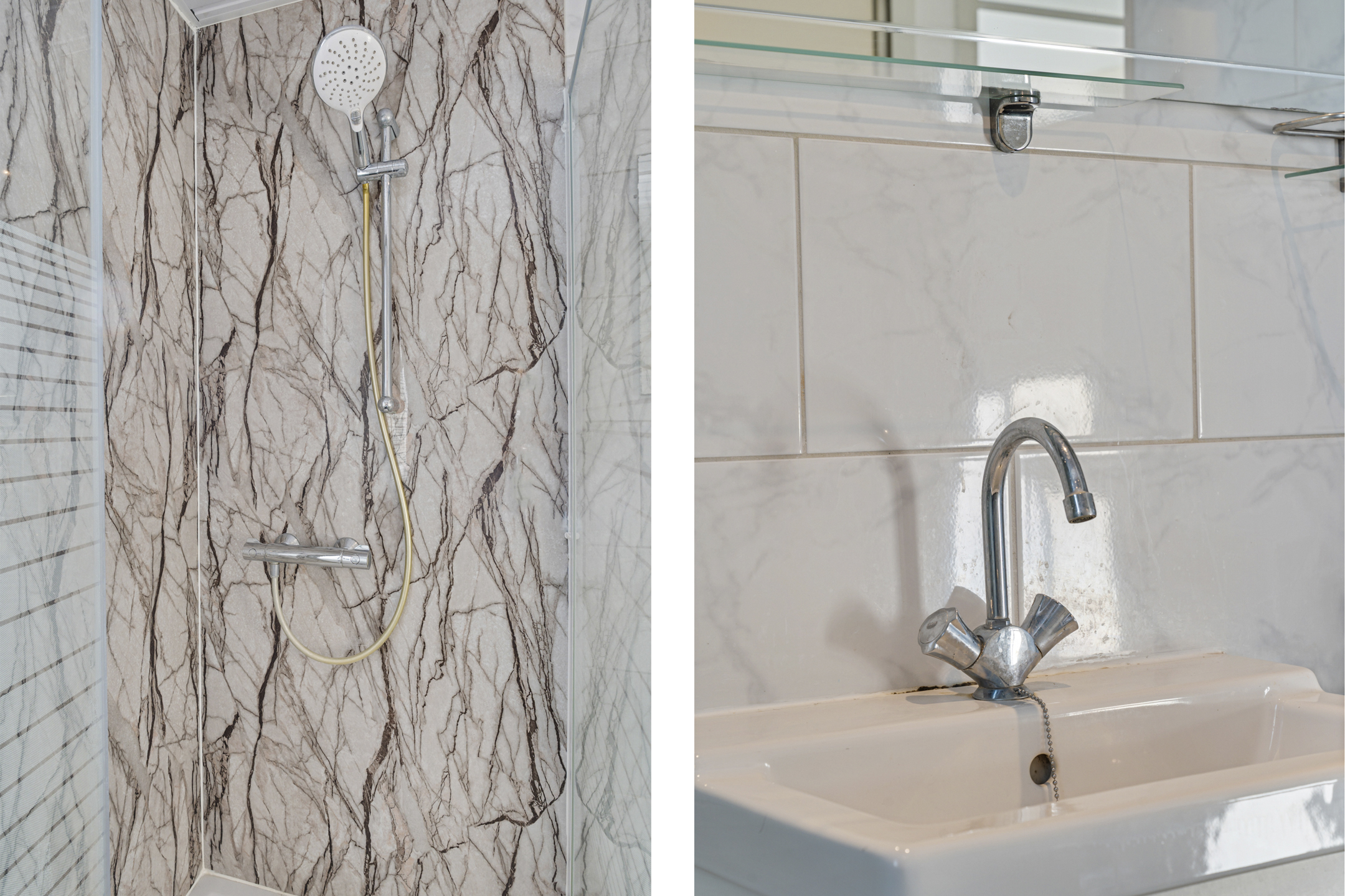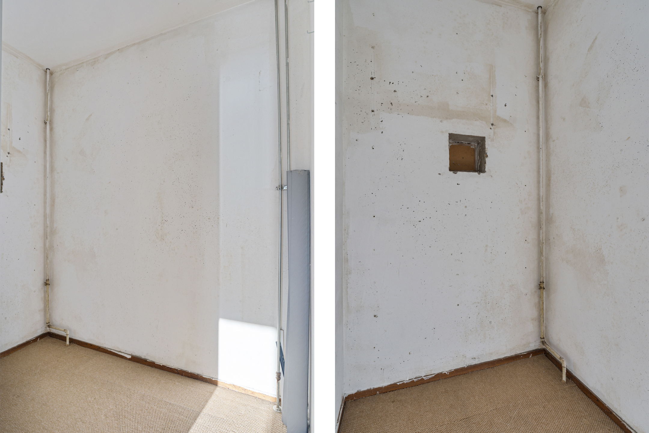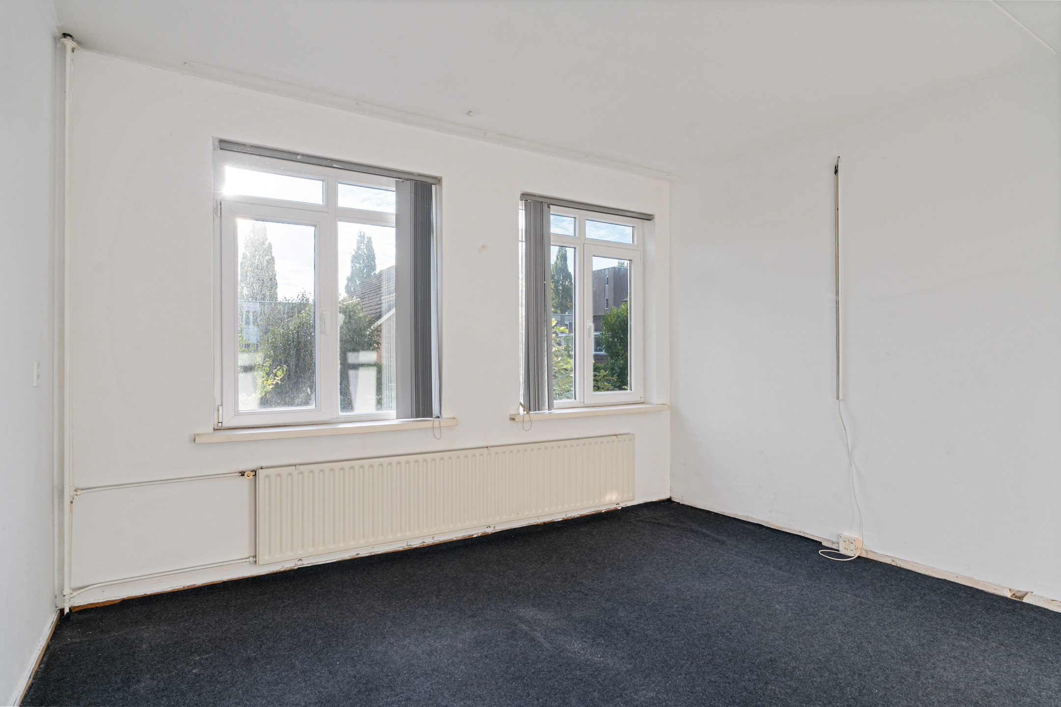 Op deze verdieping zijn twee ruime slaapkamers aanwezig. De hoofdslaapkamer is gelegen aan de achterzijde en biedt voldoende ruimte voor een groot bed en een kastenwand. Aan de voorzijde bevindt zich een tweede, eveneens goed formaat slaapkamer. De volledig betegelde badkamer beschikt over een douchecabine, wastafelmeubel, radiator, toilet en een raam voor natuurlijke ventilatie. Daarnaast is er een handige inpandige berging aanwezig, ideaal voor het opbergen van spullen.