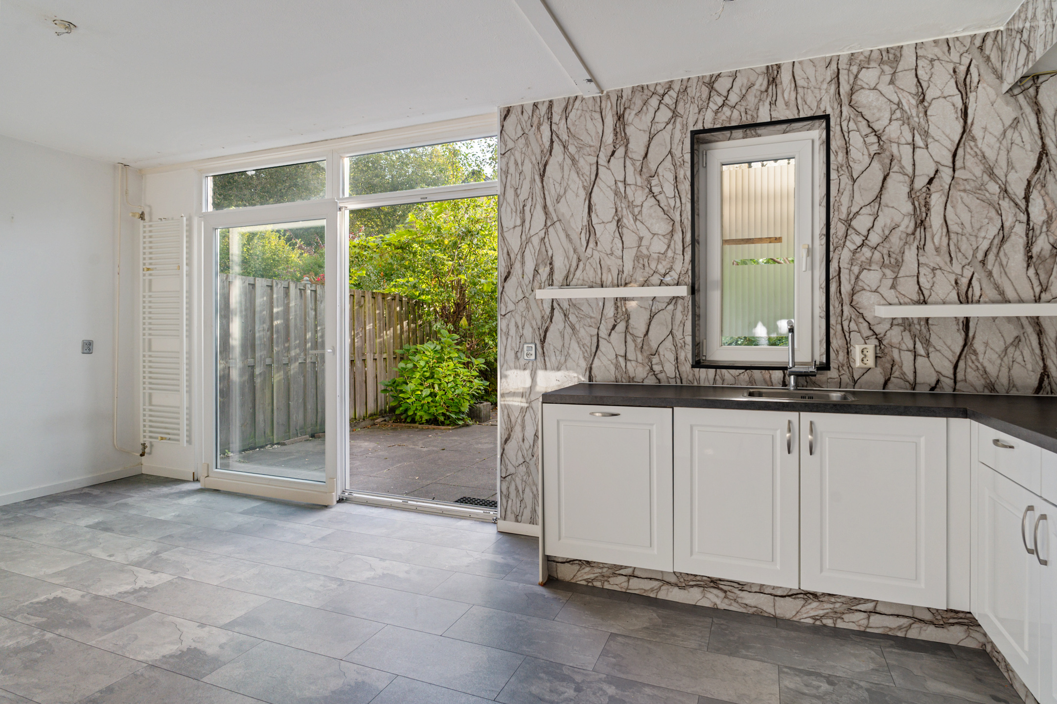 Aan de achterzijde ligt de open keuken in hoekopstelling (2023), voorzien van een gaskookplaat, afzuigkap, oven, spoelbak en volop werk- en opbergruimte. De keuken heeft een frisse uitstraling en vormt een fijne plek om te koken én te verbinden met het gezin of gasten.