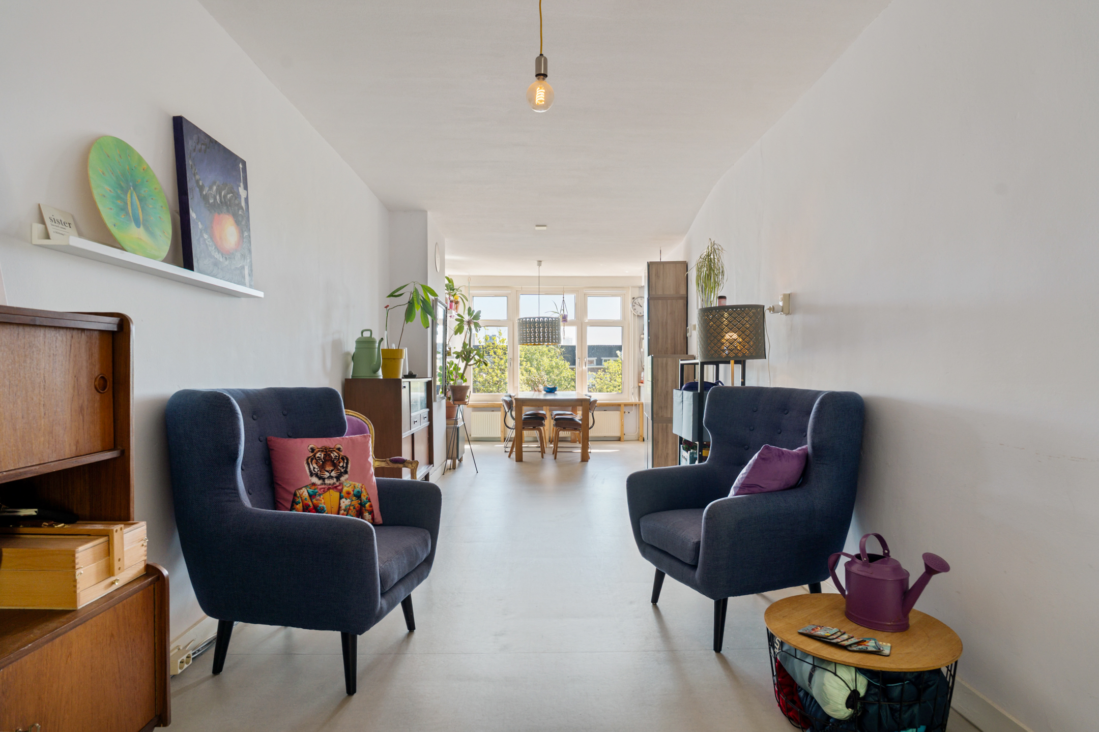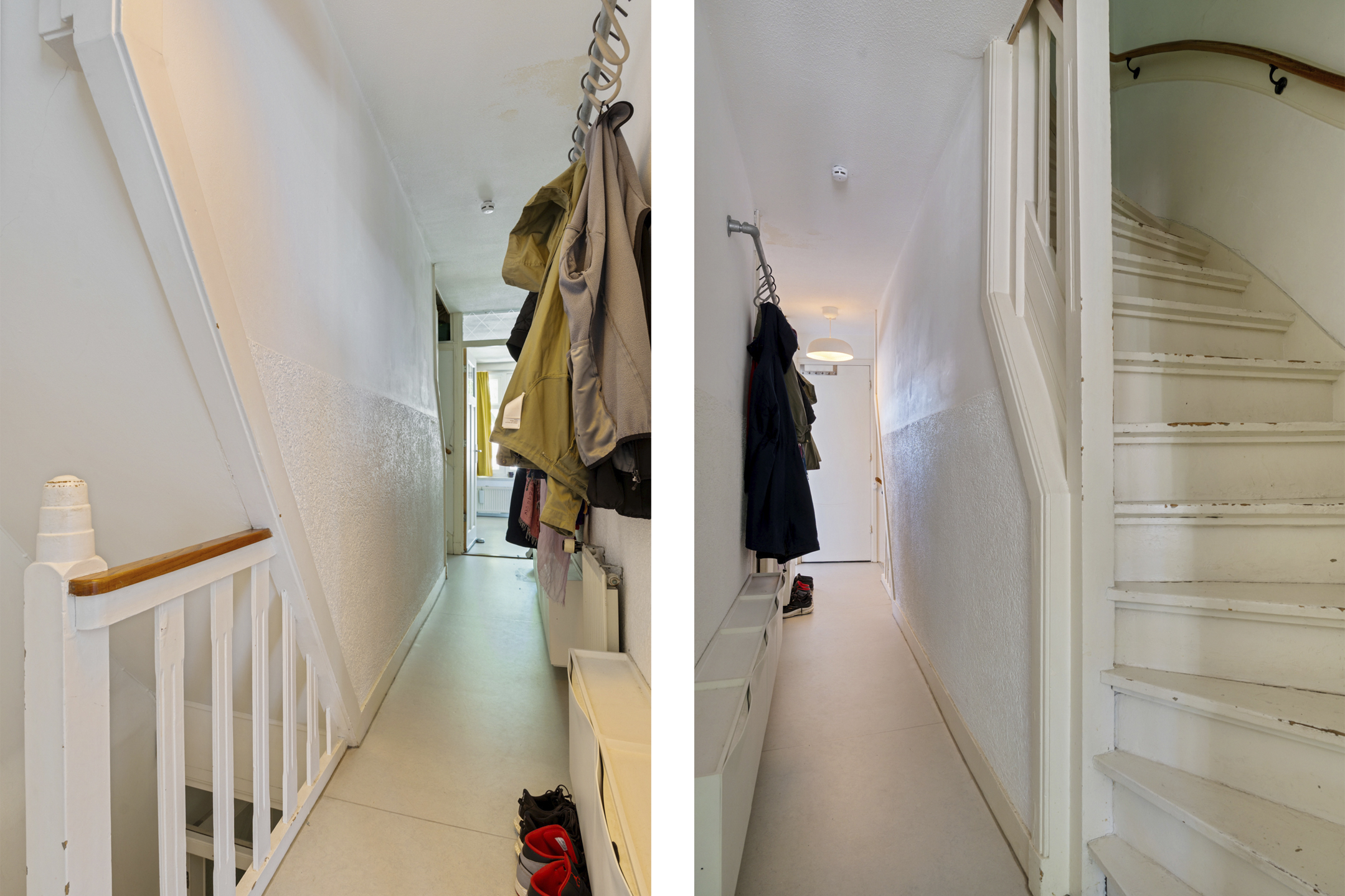 Via de gezamenlijke entree op de begane grond bereik je de woning op de tweede verdieping. Vanuit de hal heb je toegang tot het toilet met fonteintje, de royale woonkamer en de trapopgang naar de derde verdieping.