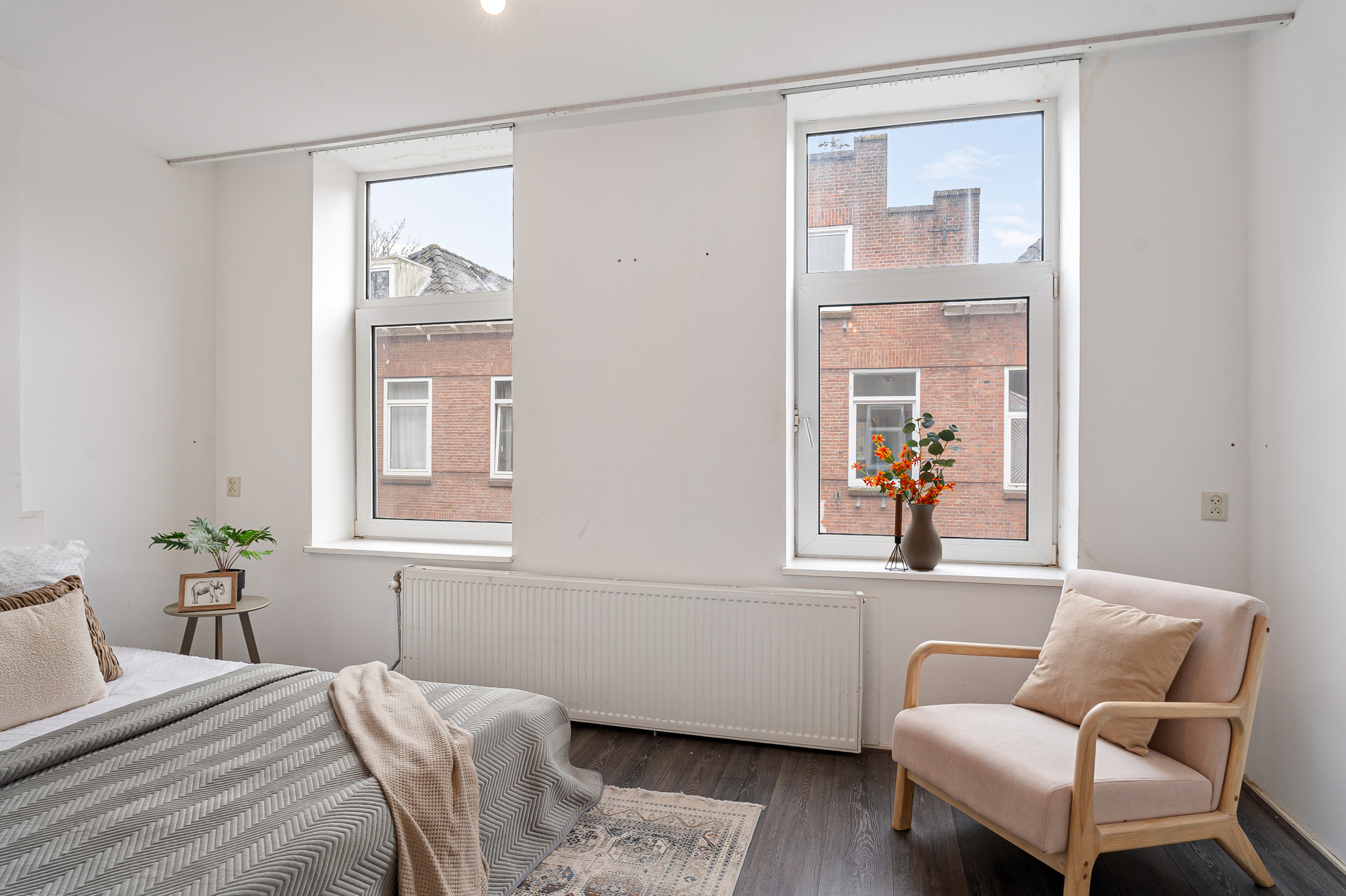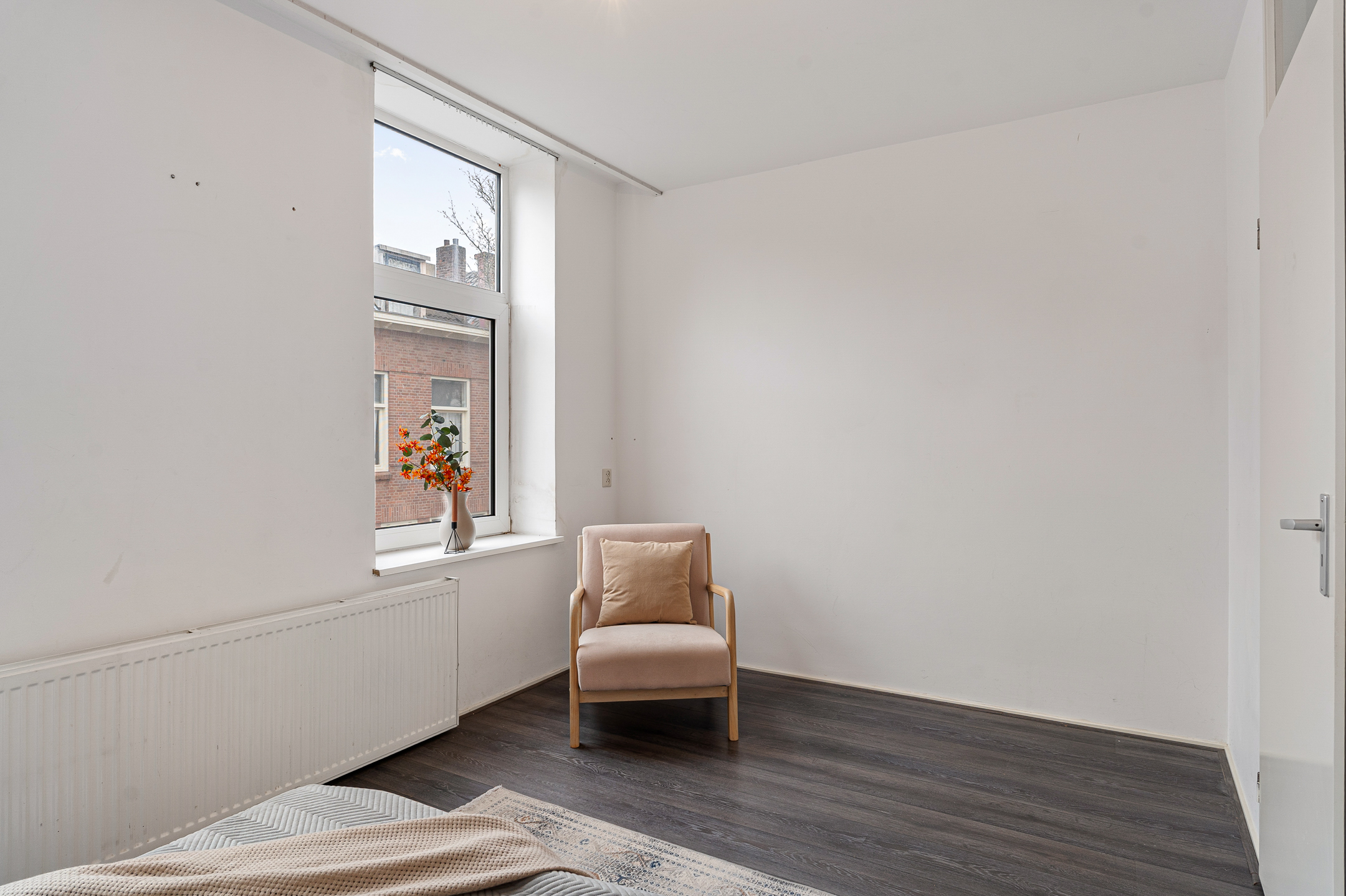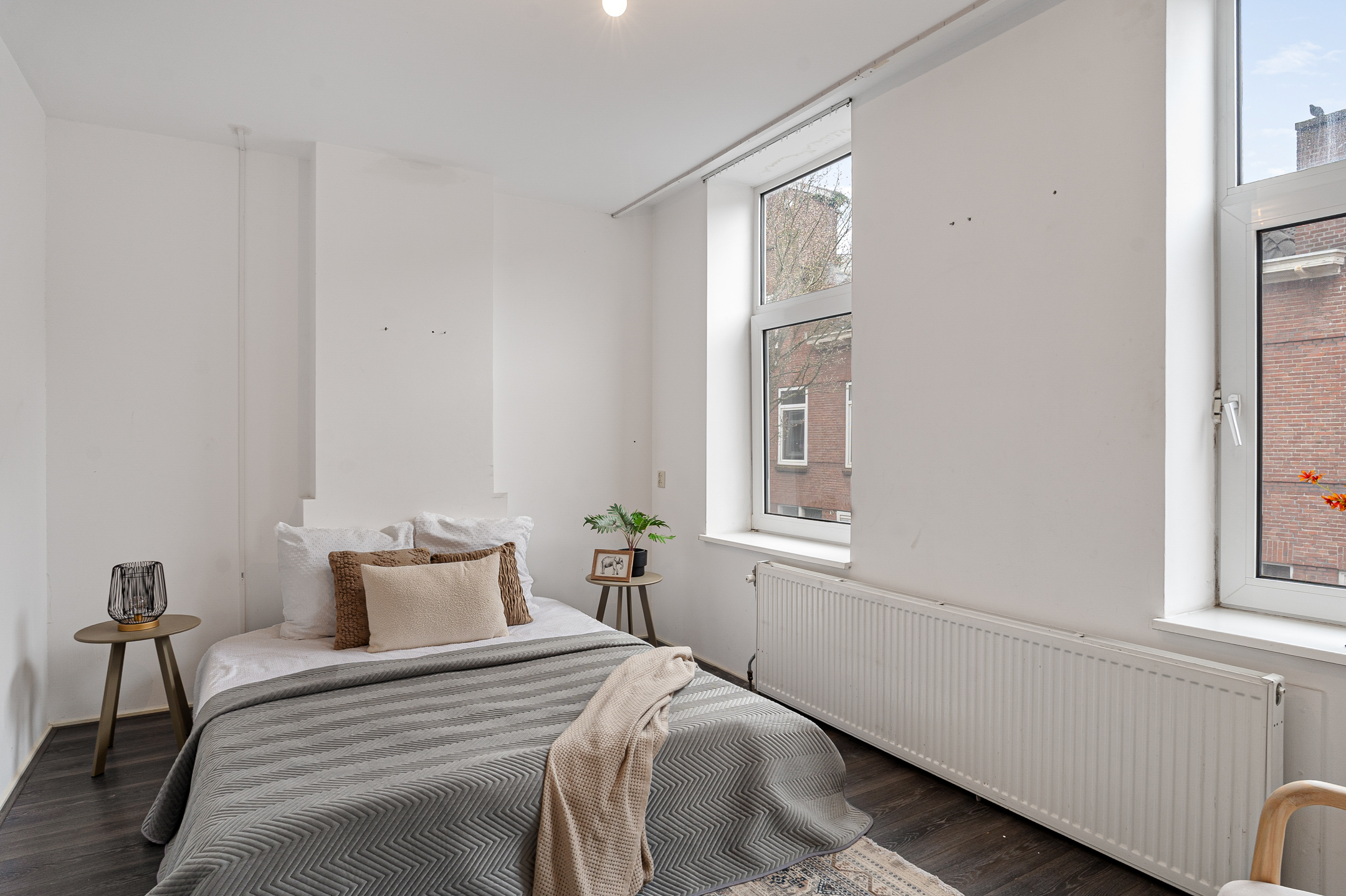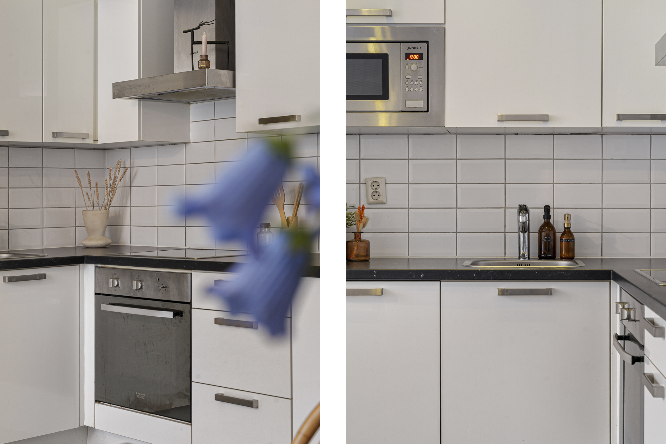 Grenzend aan de woonkamer vind je het balkon, een fijne plek waar je even naar buiten stapt voor wat frisse lucht of een kop koffie in de zon. Het balkon biedt voldoende ruimte voor een zitje en kijkt uit over de omliggende bebouwing, wat zorgt voor een levendig maar toch prettig uitzicht.