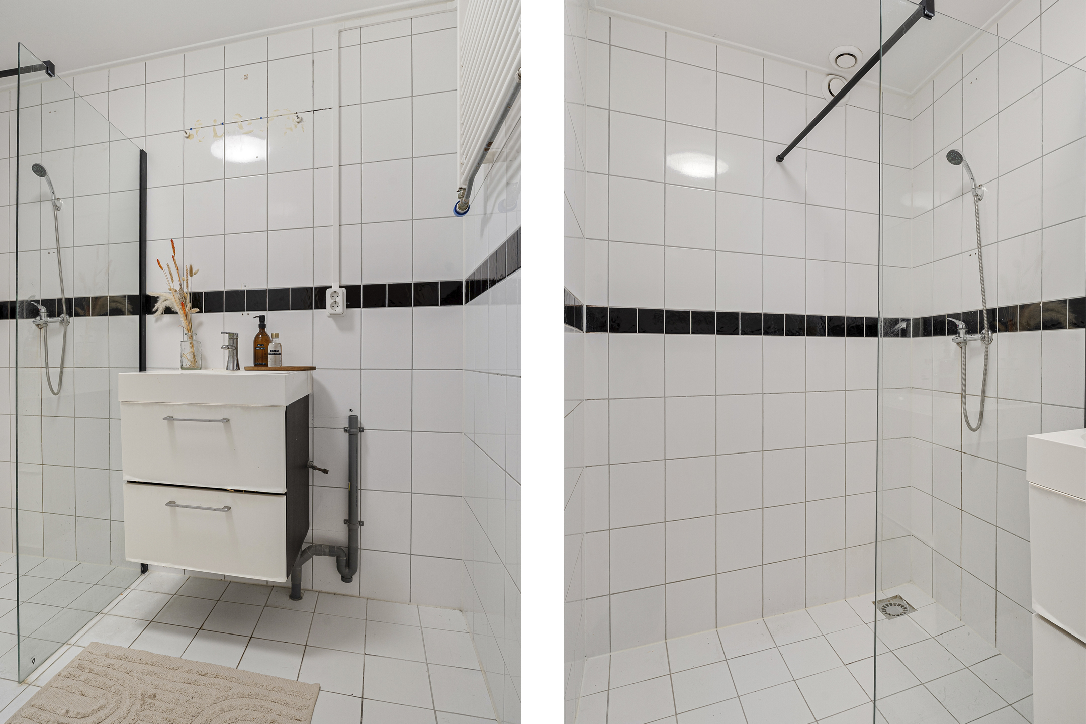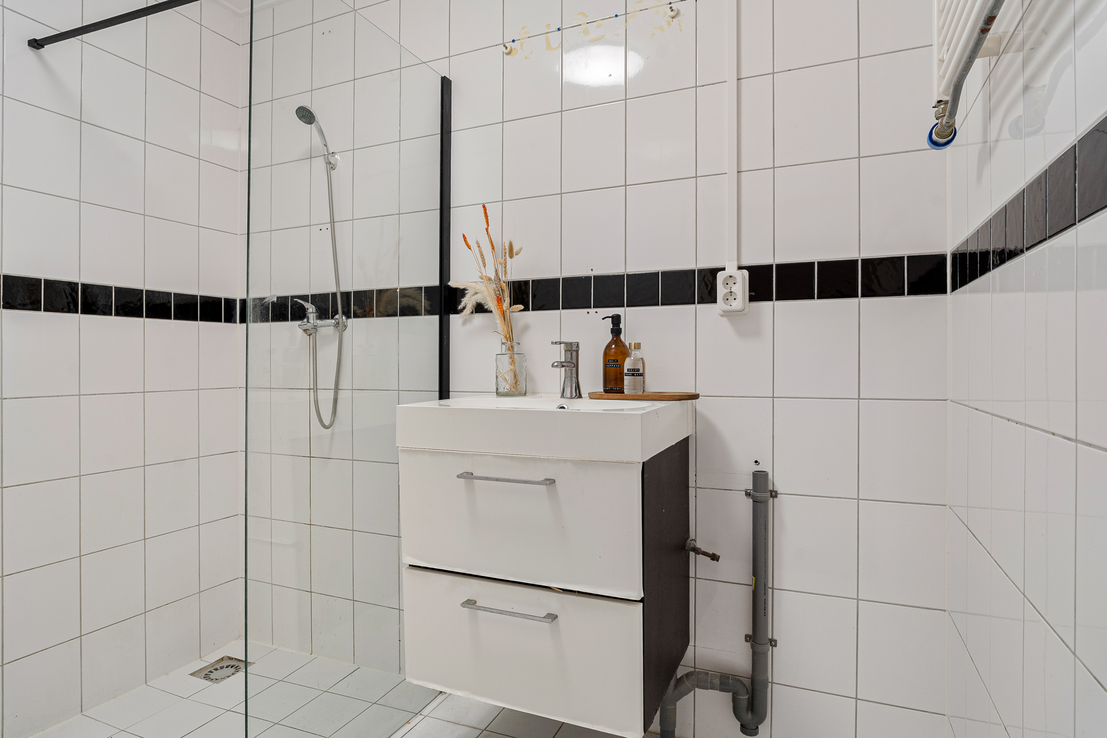 De badkamer bevindt zich centraal op de verdieping en is functioneel ingericht. Je beschikt hier over een inloopdouche, een wastafelmeubel en wasmachineaansluiting. De lichte tegelafwerking zorgt voor een frisse uitstraling en maakt de ruimte tijdloos. Hoewel de badkamer netjes is, biedt deze ook kansen om geheel naar eigen smaak te moderniseren.