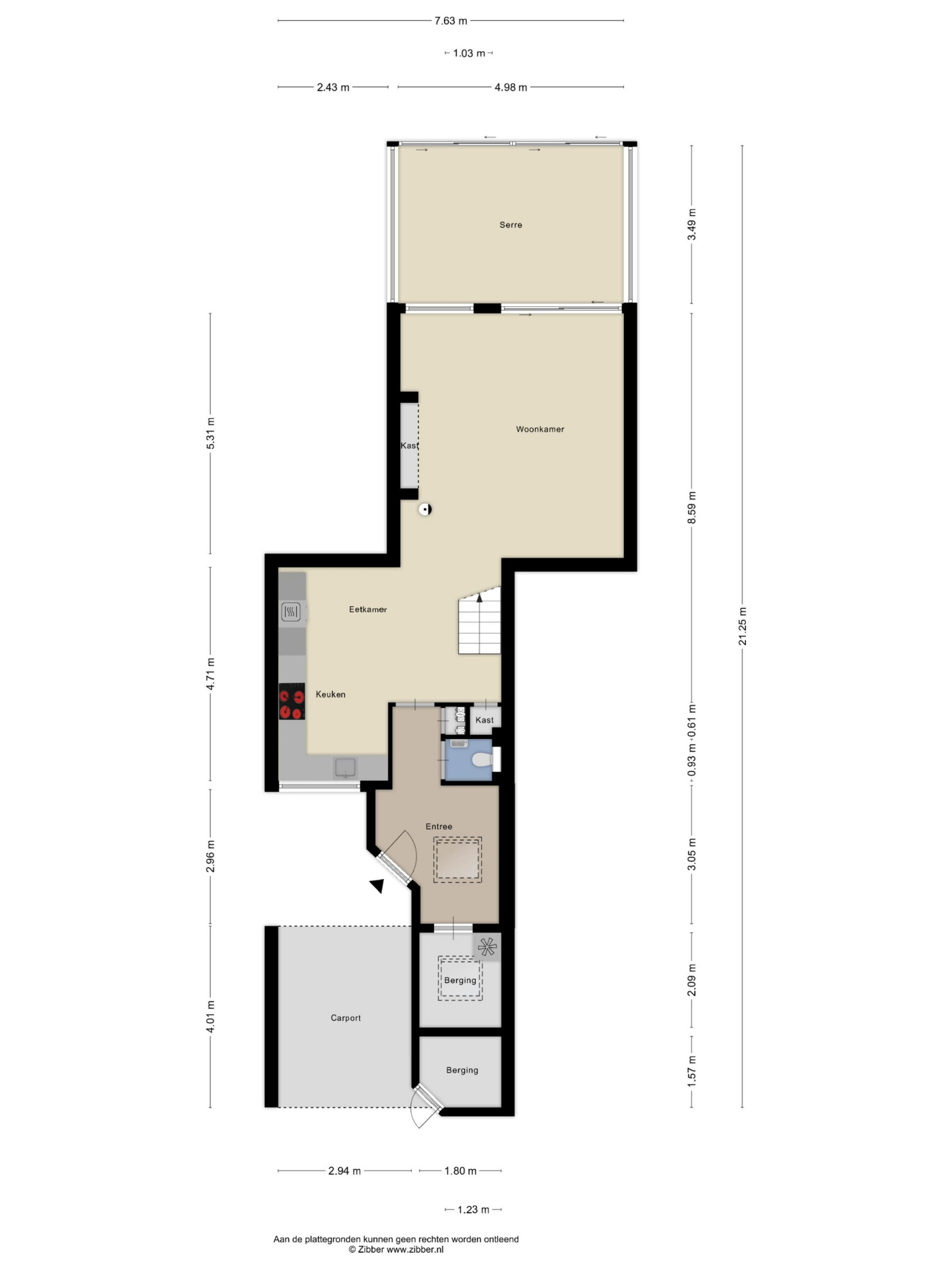 Je komt binnen via de carport en betreedt de ruime hal met lichtkoepel, meterkast, nette toiletruimte met fonteintje, en toegang tot de berging. De open keuken aan de voorzijde is voorzien van een inductiekookplaat, afzuigkap, vaatwasser, spoelbak en combimagnetron. De tuingerichte woonkamer is heerlijk licht en biedt via een schuifpui toegang tot de serre en de achtertuin.