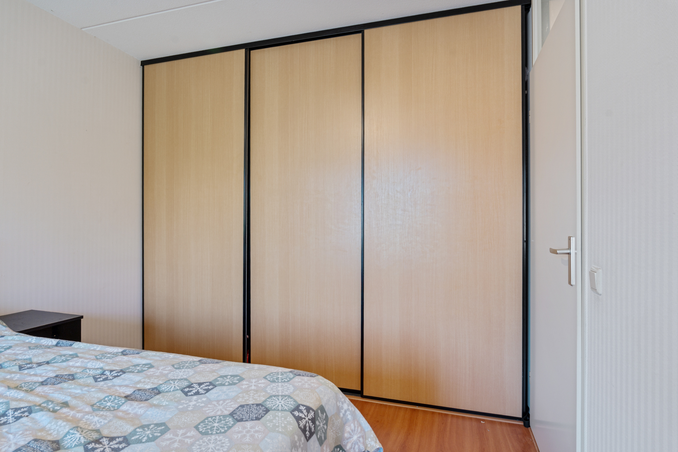 Op de eerste verdieping bevinden zich drie ruime slaapkamers. Twee slaapkamers liggen aan de achterzijde, terwijl de derde, royale slaapkamer aan de voorzijde voorzien is van een vaste kastenwand. De moderne badkamer is licht betegeld en uitgerust met een inloopdouche, wastafelmeubel en een raam voor natuurlijke ventilatie. Een tweede toilet bevindt zich separaat op de overloop.