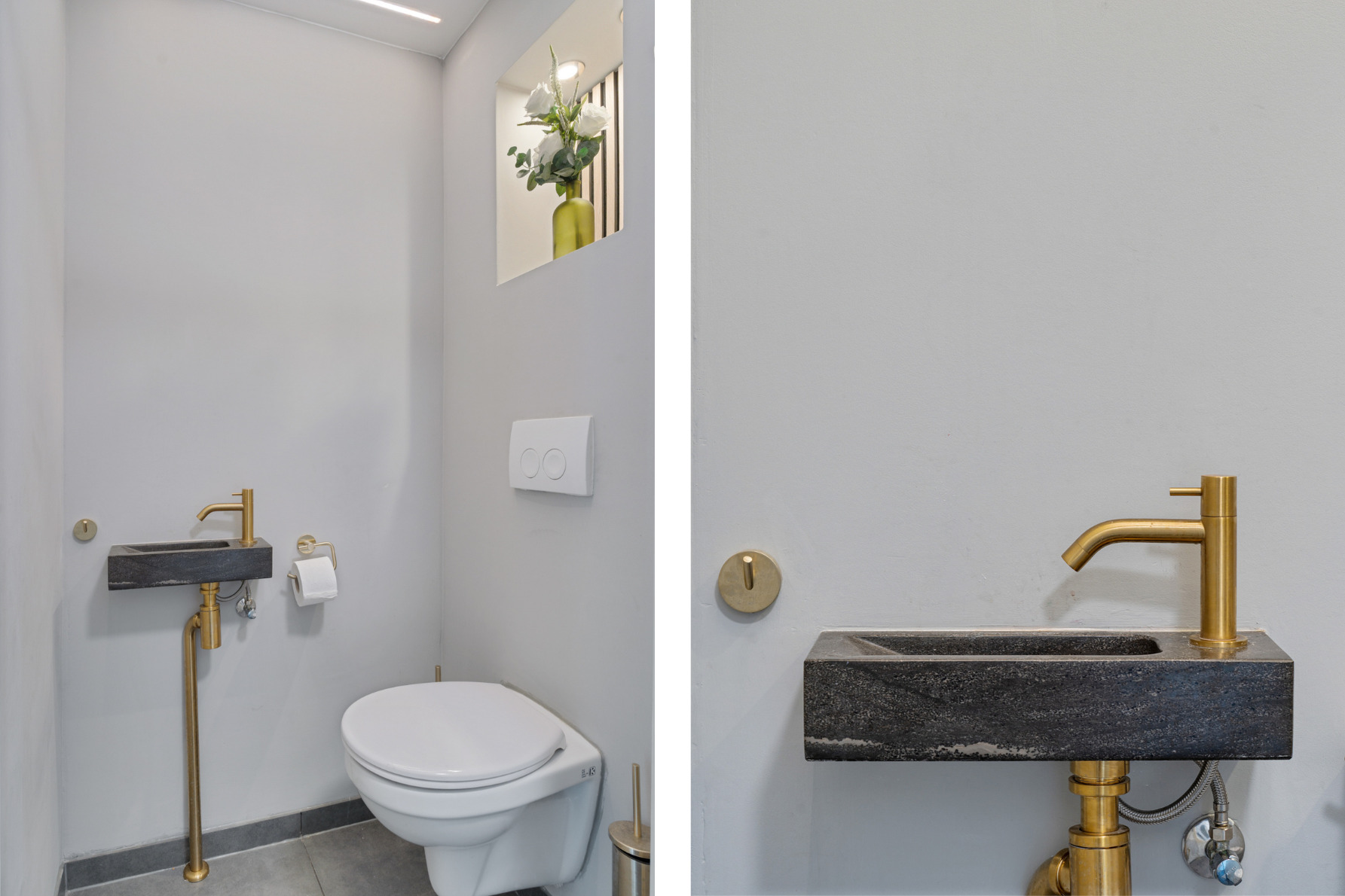+ Licht betegeld toilet met nisje en sfeerverlichting
