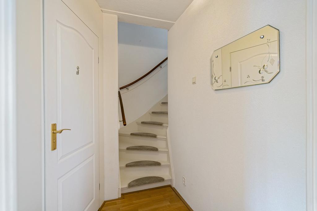 Entree woning. Hal met diepe trapkast alwaar de nieuwe groepenkast zit en de pomp voor de vloerverwarming.