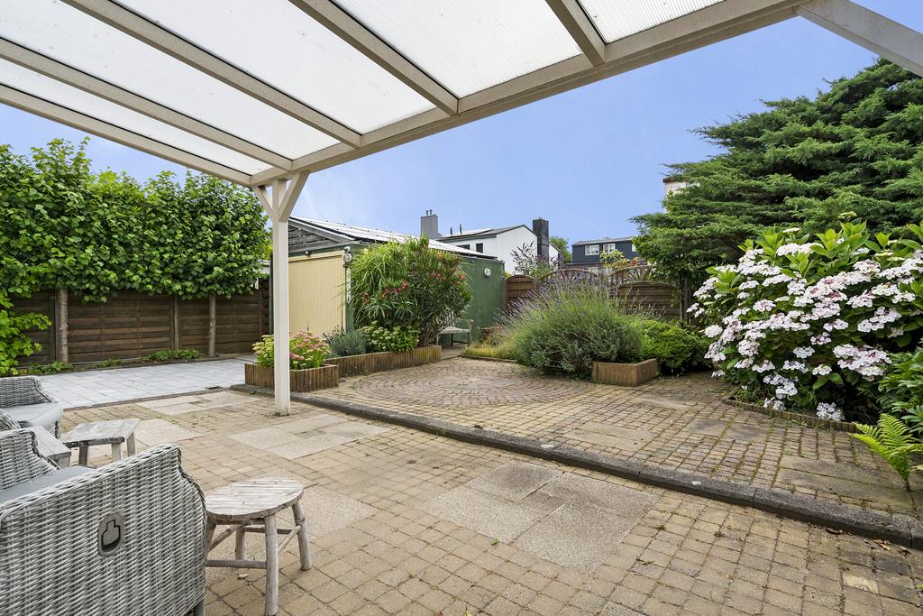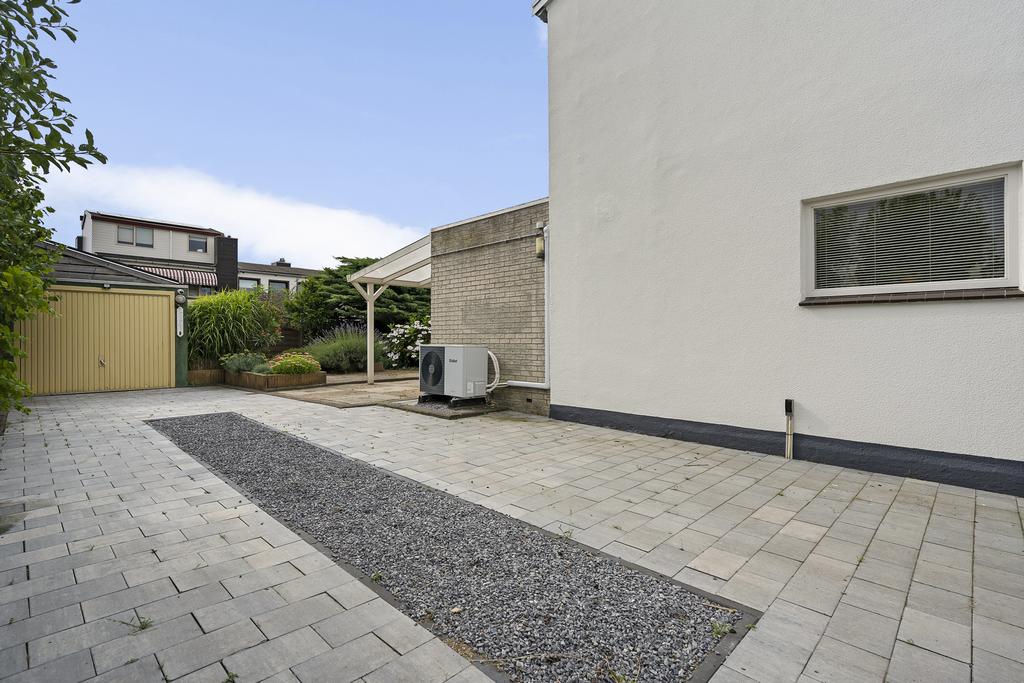 De woning is gelegen op een van de grootste percelen van de wijk. Zowel de voortuin als de achtertuin zijn keurig aangelegd. In de achtertuin kan je heerlijk rustig genieten, ook als het iets minder mooi weer is. Onder de overkapping, welke aan de woning zit, kan je al snel van de buitenlucht genieten. In de achtertuin staat ook een garage annex schuur/werkplaats, voorzien van een stalen kanteldeur, elektra en water.