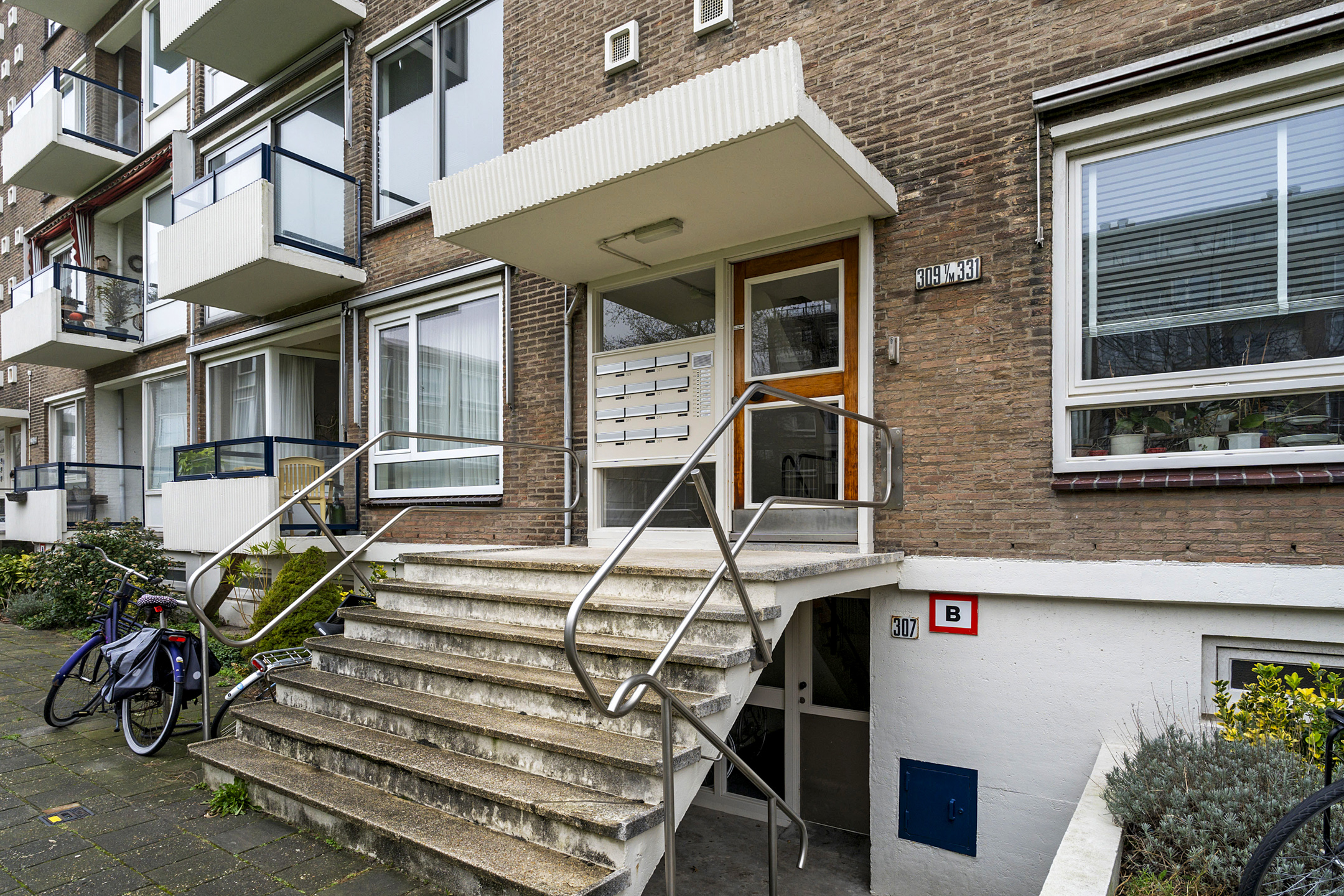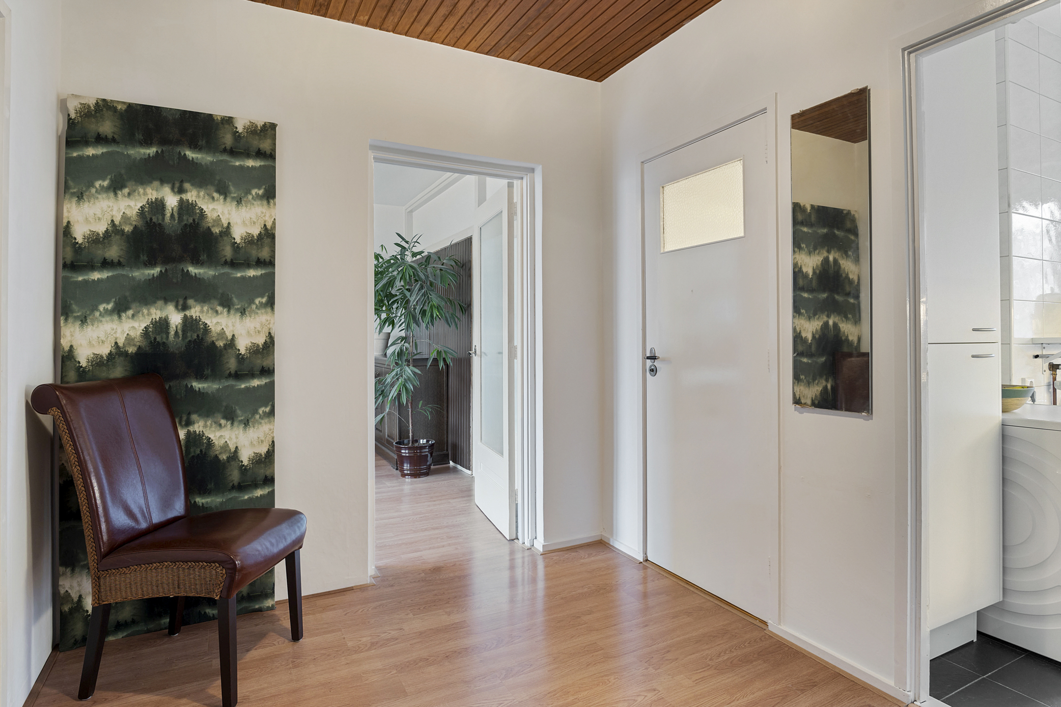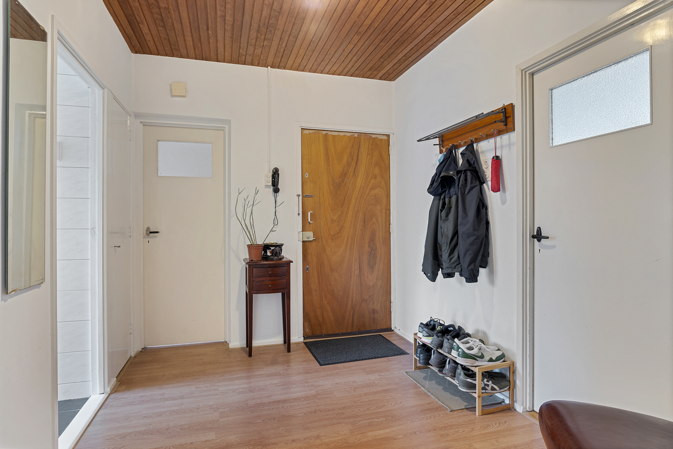 Via een trap naar de afgesloten portiek met bellentableau en brievenbussen kom je in de nette entree van het complex. Met de lift of trap bereik je de derde verdieping
