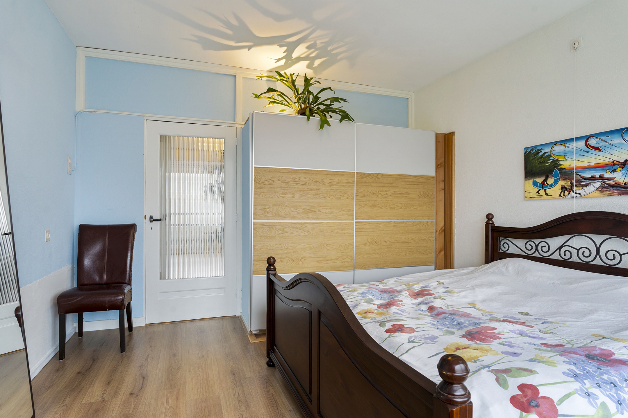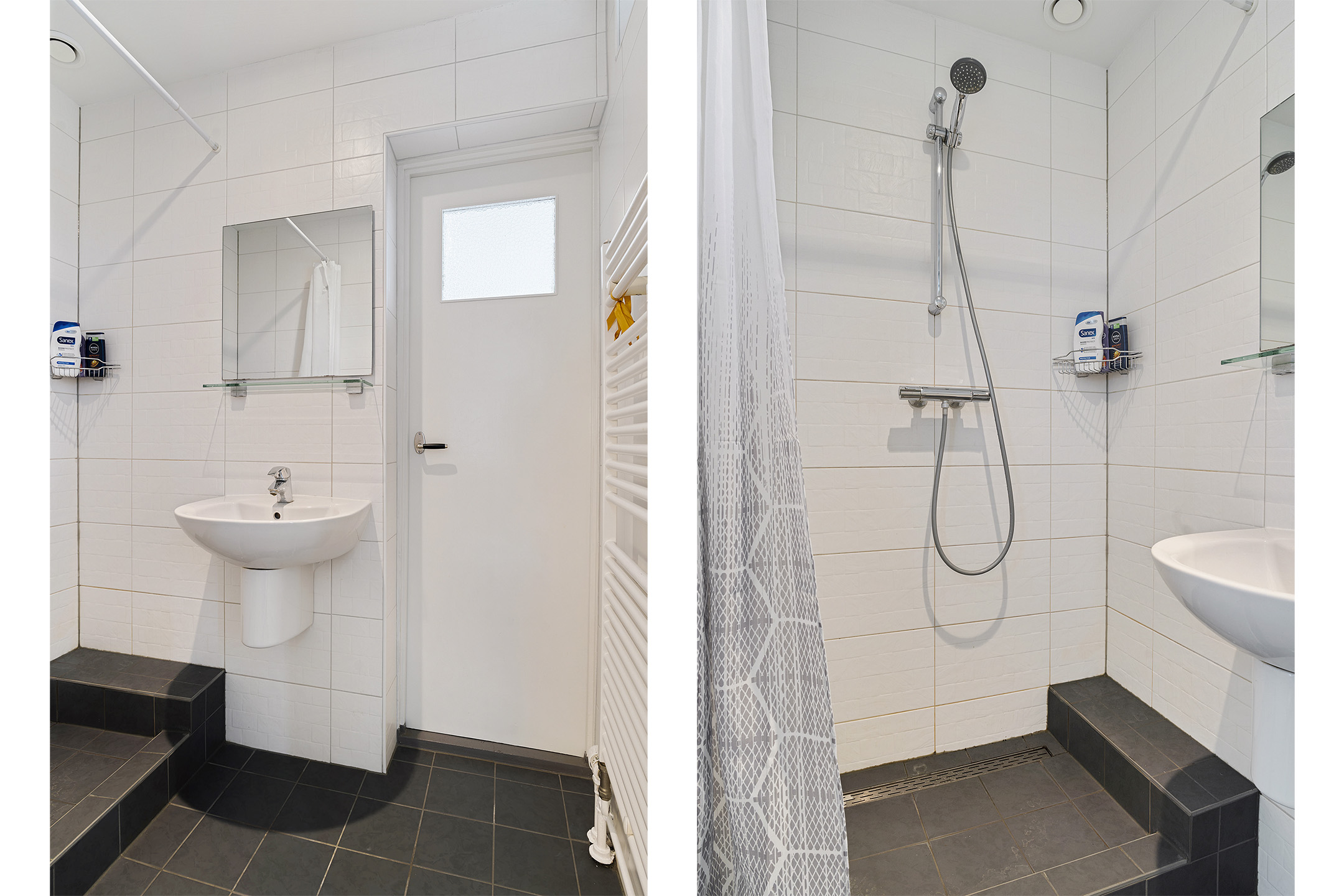 Aan de achterzijde bevindt zich een ruime slaapkamer die uitkijkt op het groen. De gemoderniseerde badkamer is voorzien van een inloopdouche, wastafel en designradiator. Daarnaast is er een extra kamer aan de achterzijde, ideaal als werk-, hobby- of logeerkamer.