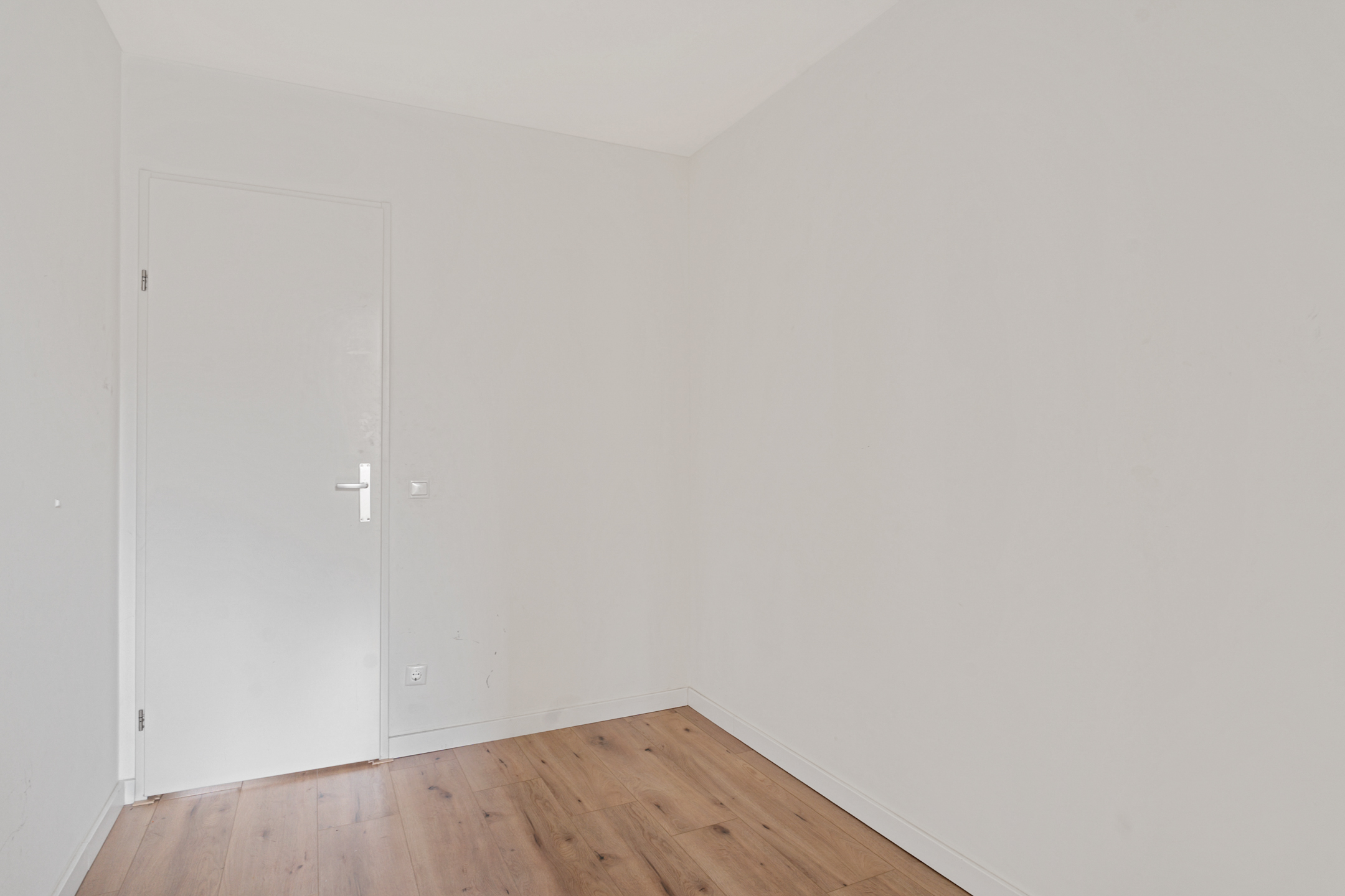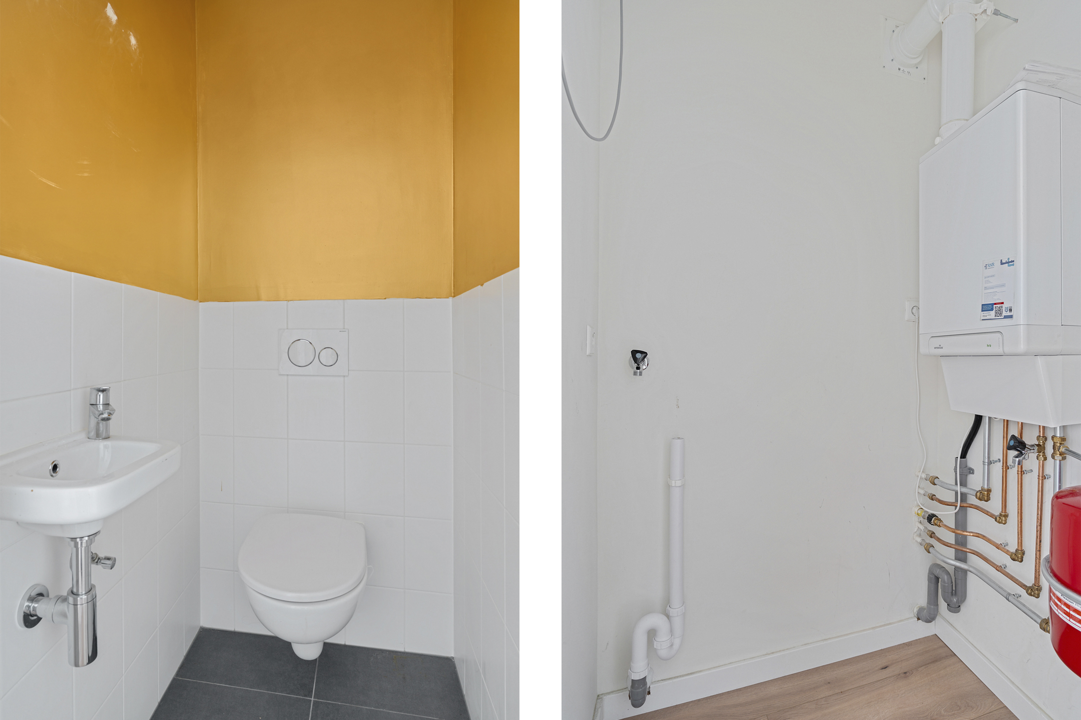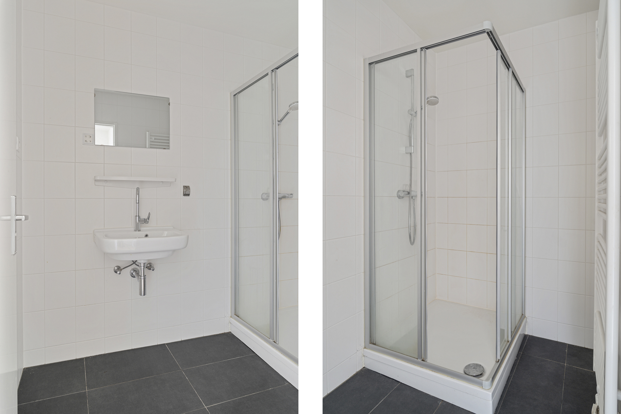 De ruime en lichte hoofdslaapkamer bevind zich naast de hal en grenst aan een multifunctionele ruimte met directe toegang tot het balkon. Deze ruimte is ideaal voor een wasmachine en/of droger, waardoor praktische functionaliteit en wooncomfort perfect samenkomen. De tweede slaapkamer is licht en ideaal te gebruiken als logeer of studeerkamer. De badkamer is strak betegeld en voorzien van een douchecabine, wastafel met spiegel en handdoekradiator. Door de gestuukte en witte wanden is de woning zo instapklaar.