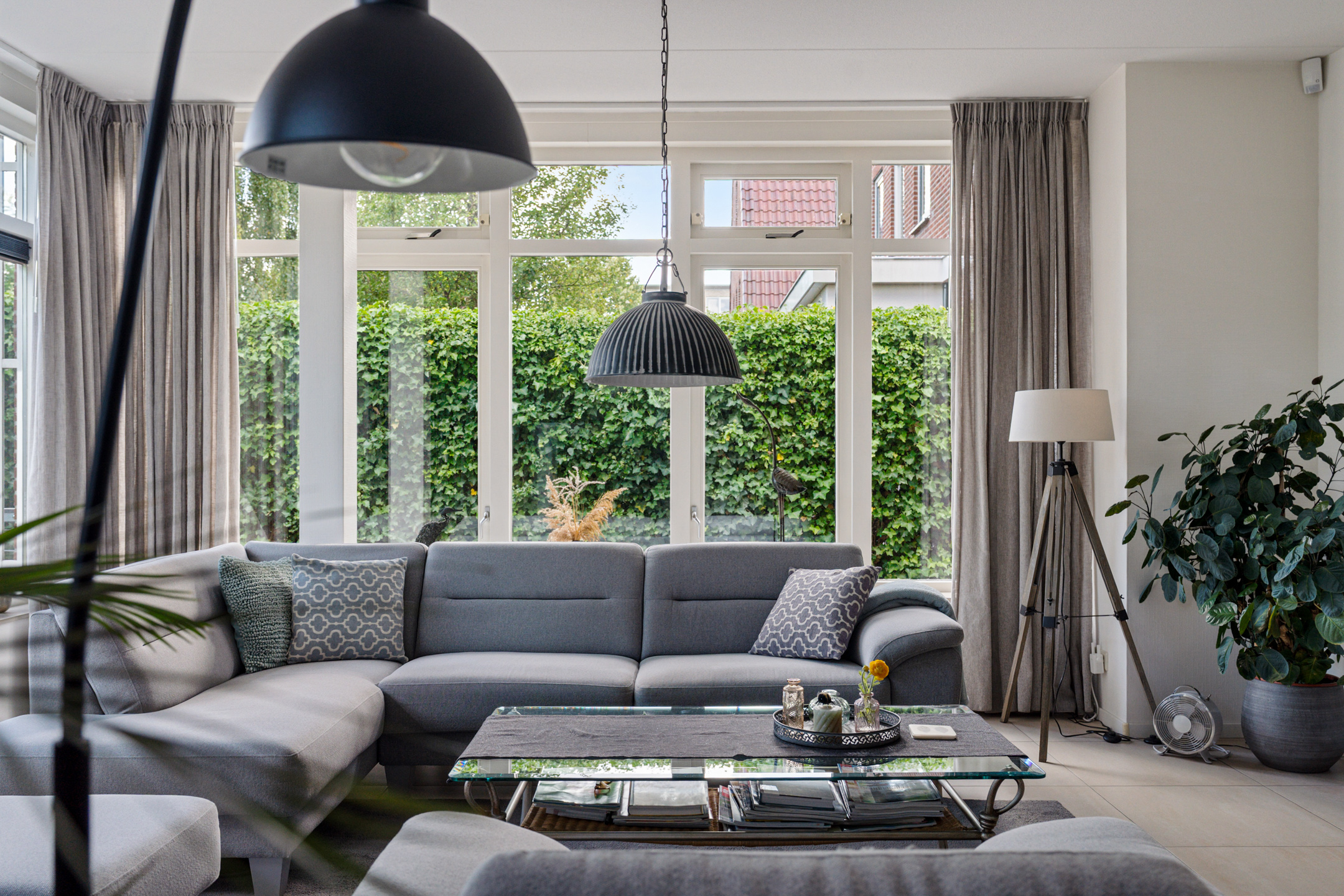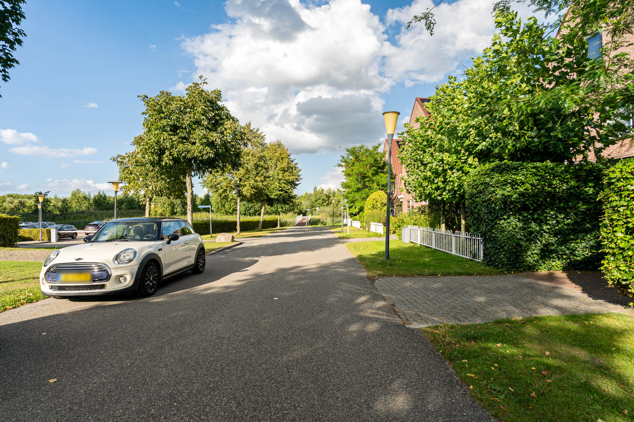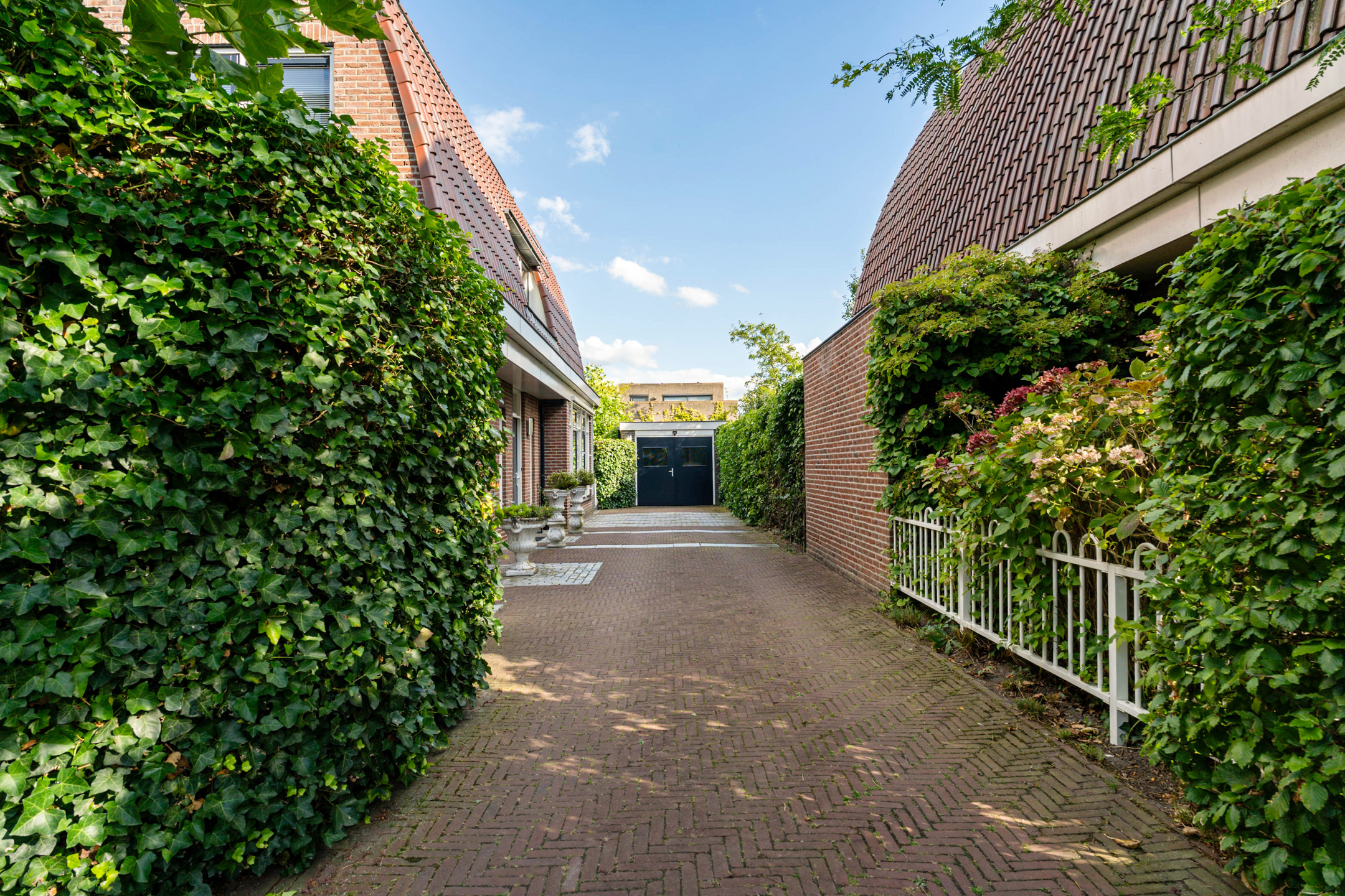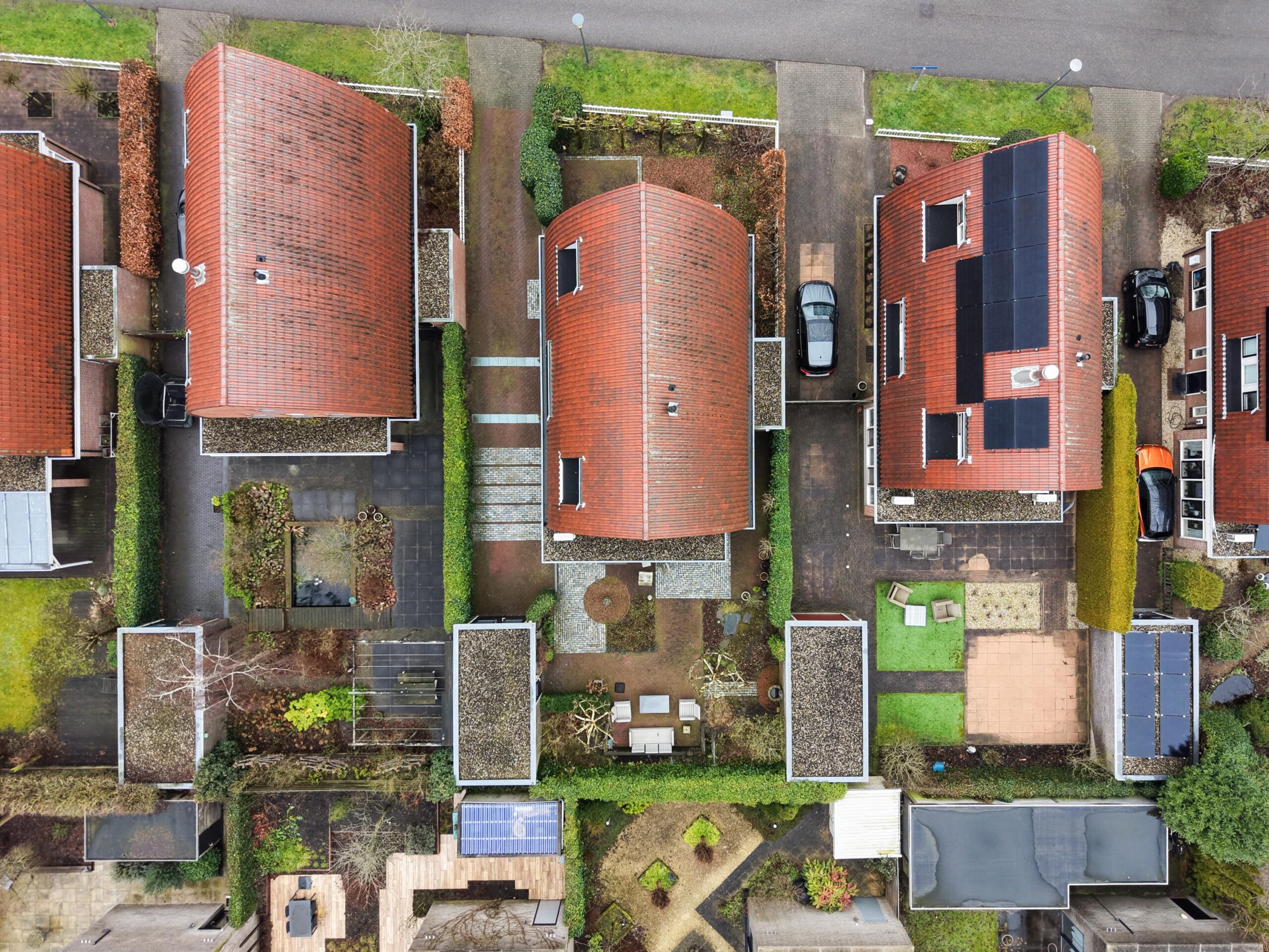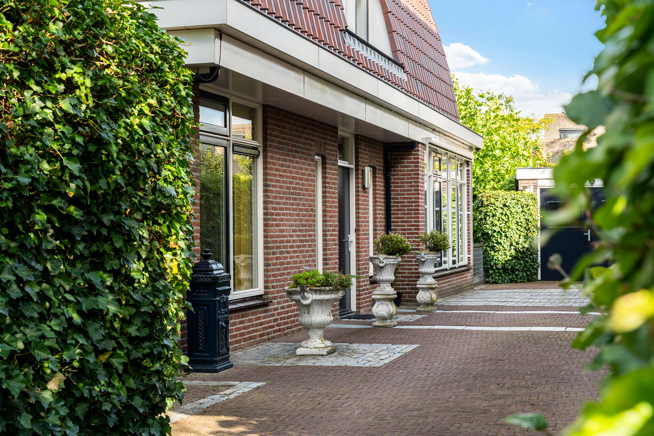 De speelse aanleg met bestrating, grind en borders maakt het geheel levendig en onderhoudsvriendelijk. Onder de leibomen creëer je een heerlijke loungeplek in de schaduw, terwijl het terras direct bij de woning perfect is voor een grote eettafel. Hier geniet je van lange zomeravonden en ontspannen weekenden in eigen tuin.