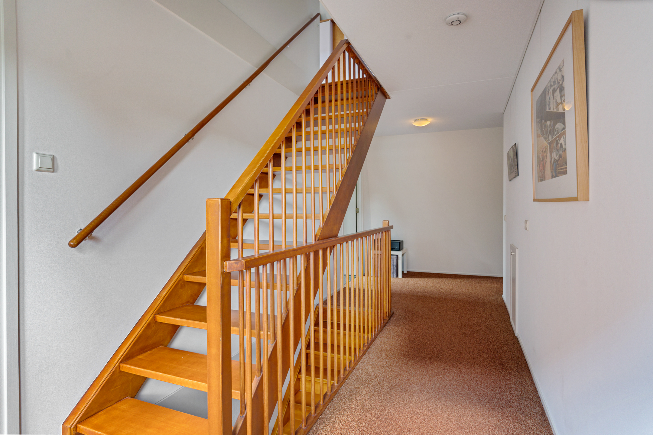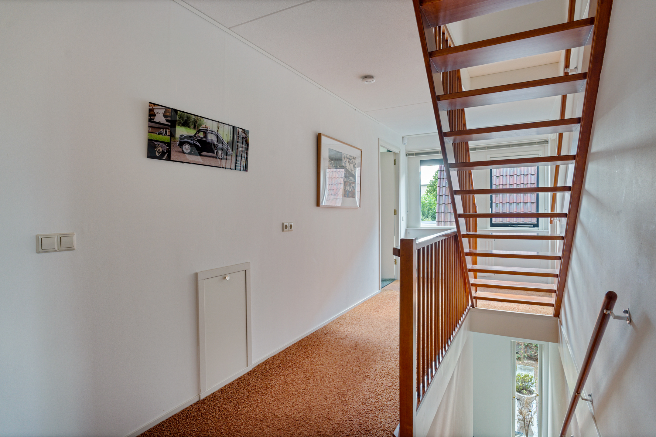 Via de vaste trap kom je op de overloop, die toegang geeft tot drie slaapkamers, de badkamer en een apart toilet.
