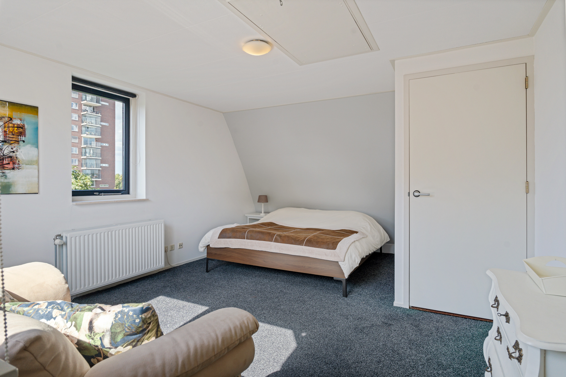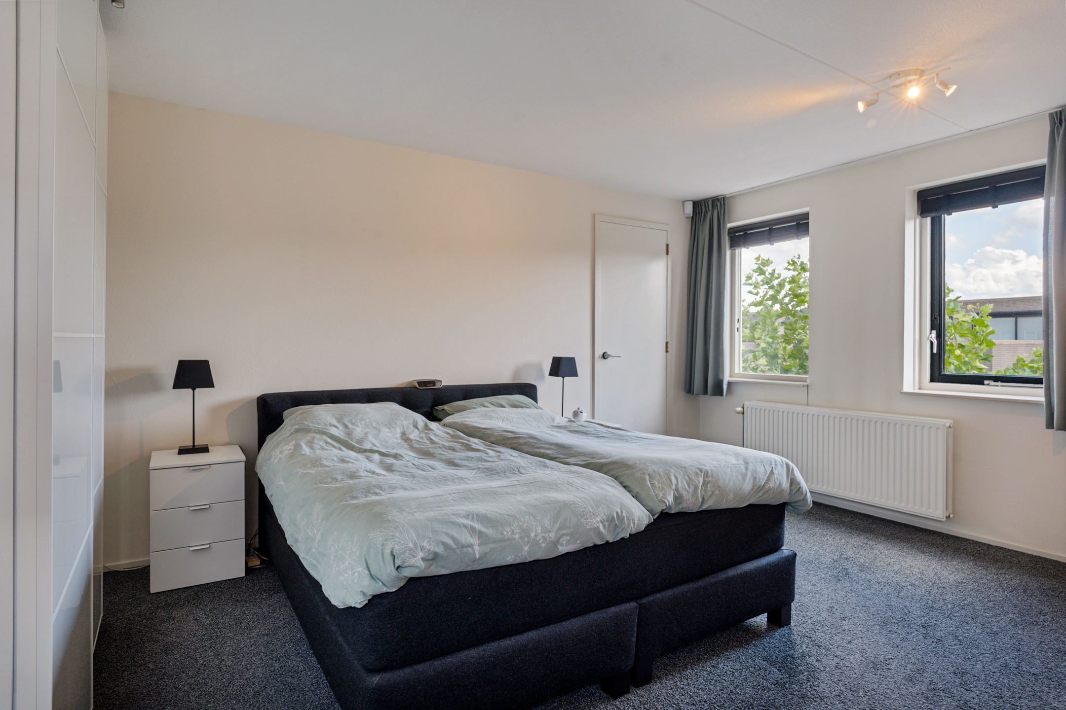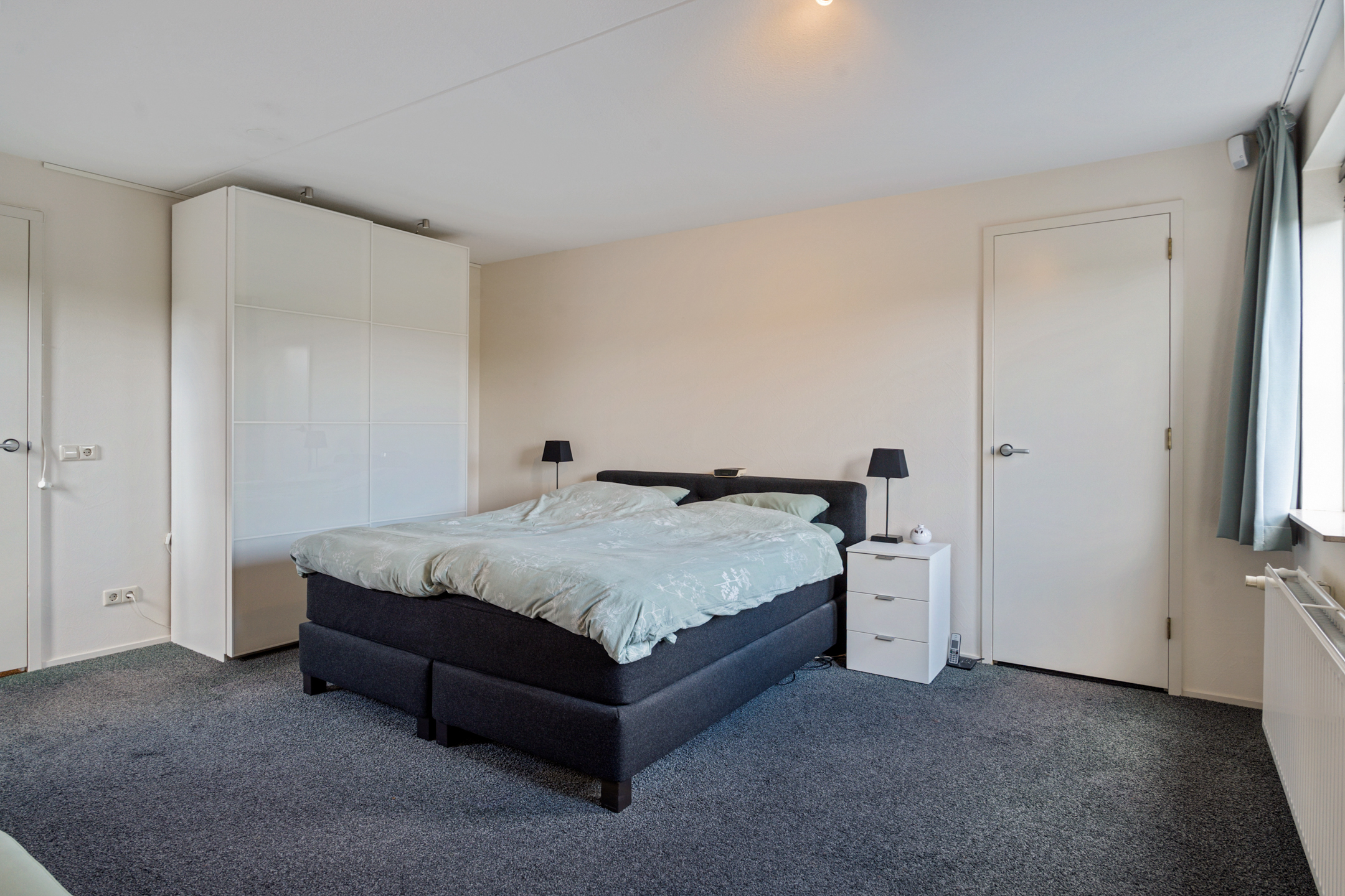 Aan de rechterzijde ligt nog een slaapkamer van goed formaat. Ideaal als kinder- of logeerkamer, of als rustige thuiswerkplek.