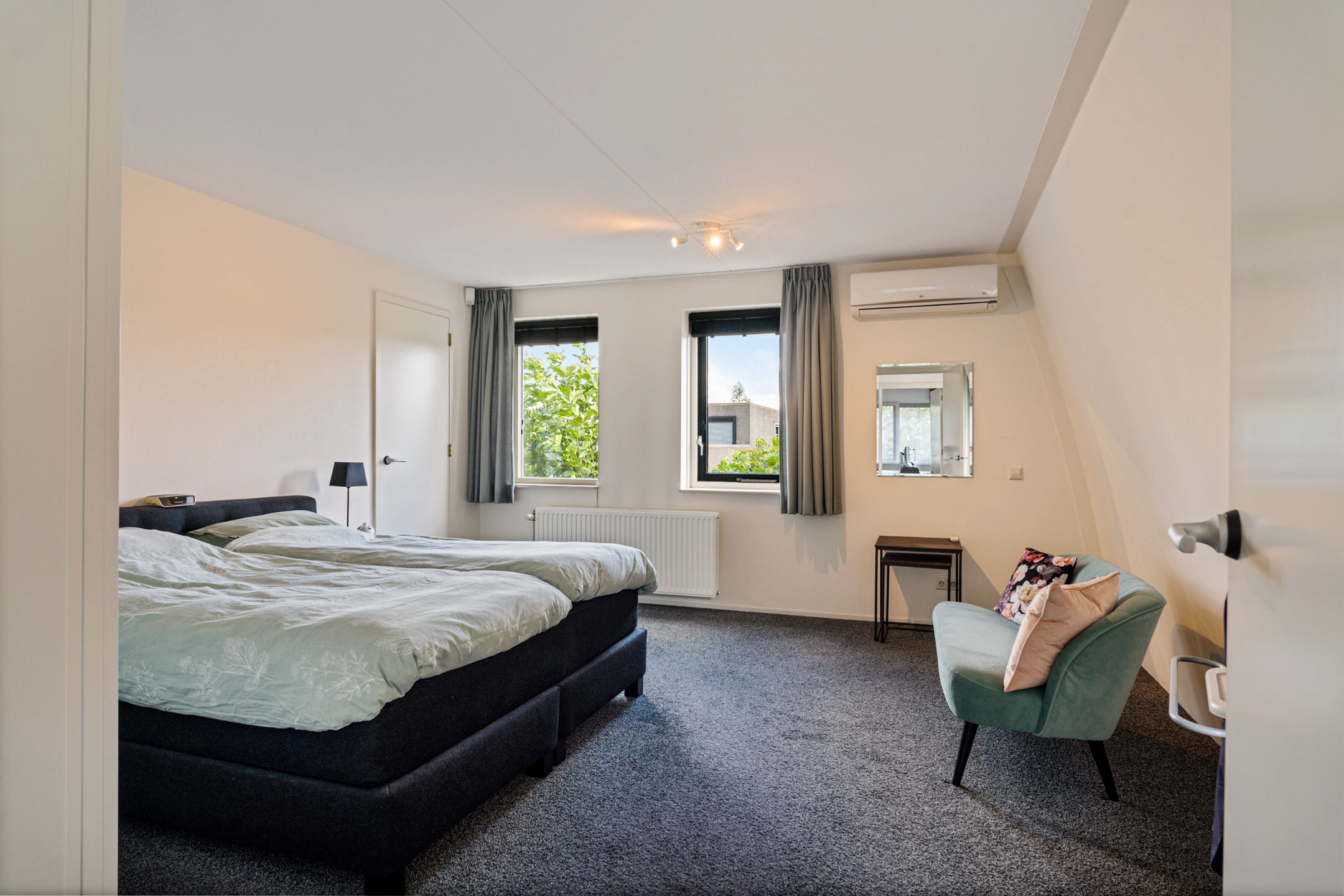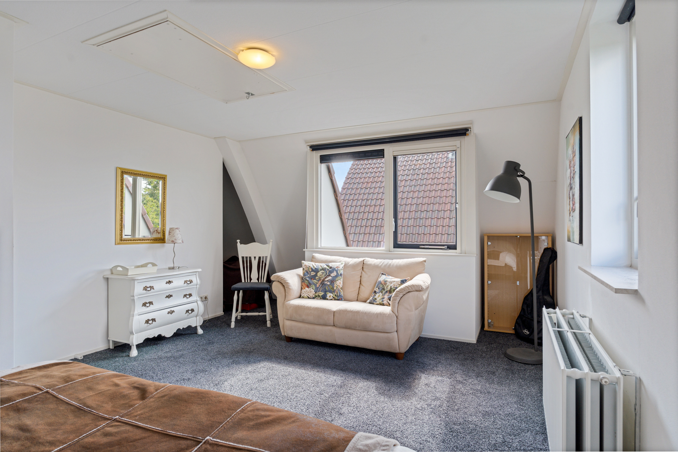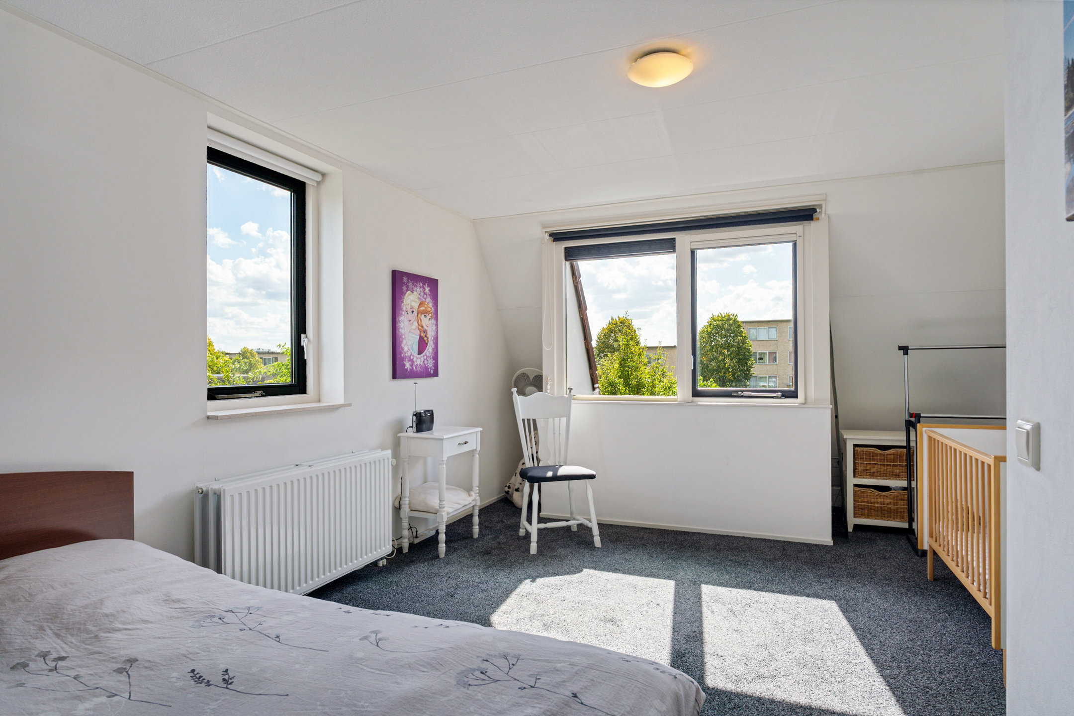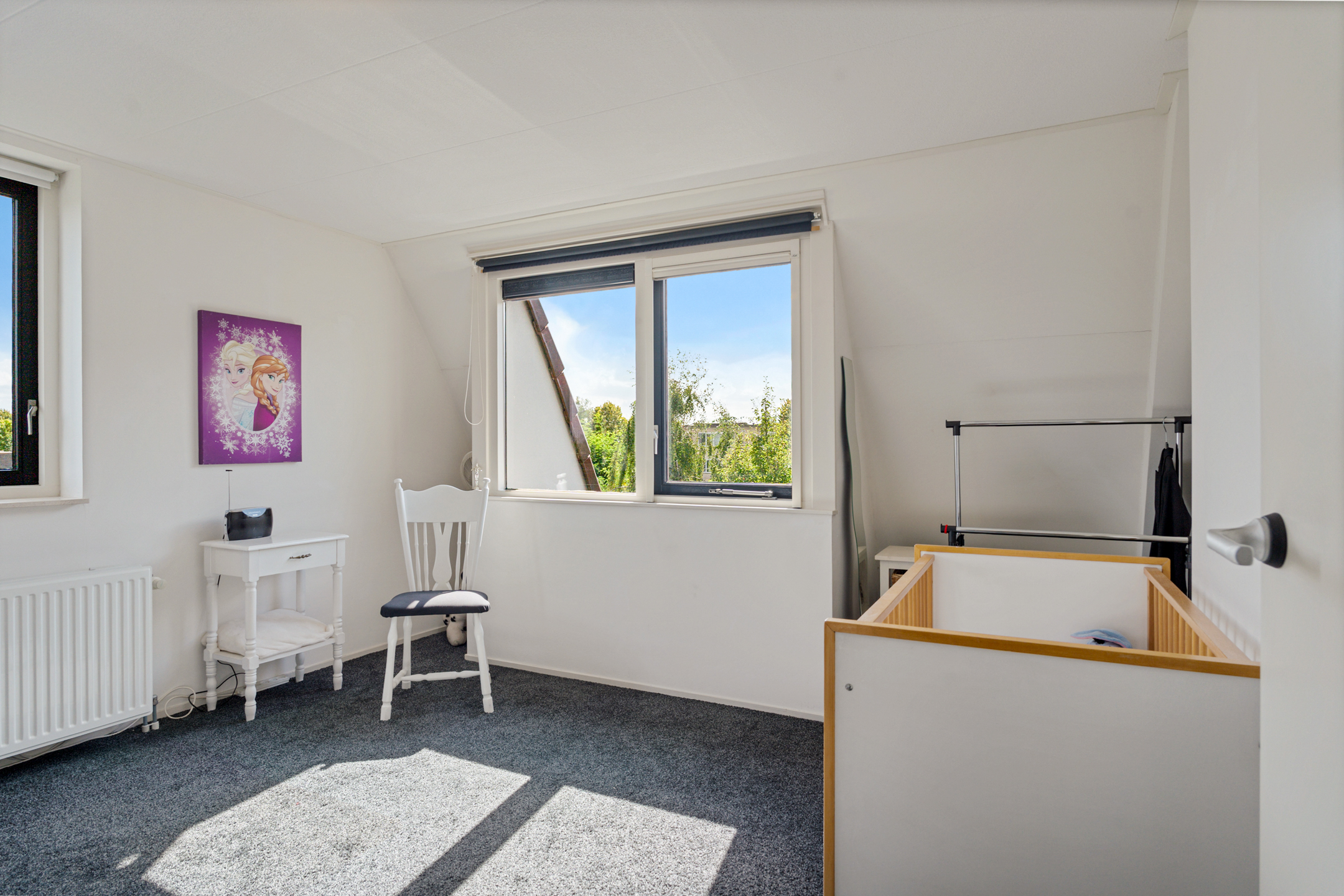 Aan de rechterzijde ligt nog een slaapkamer van goed formaat. Ideaal als kinder- of logeerkamer, of als rustige thuiswerkplek.